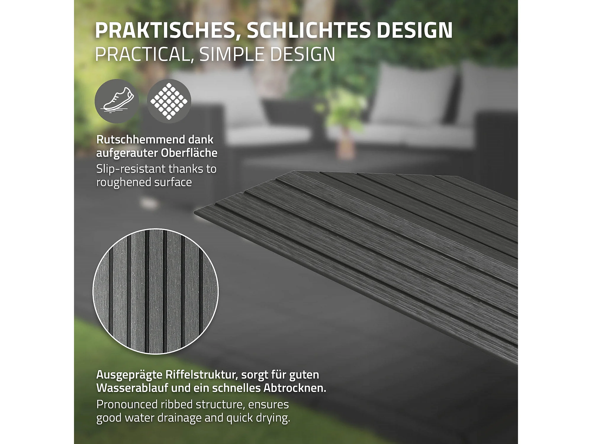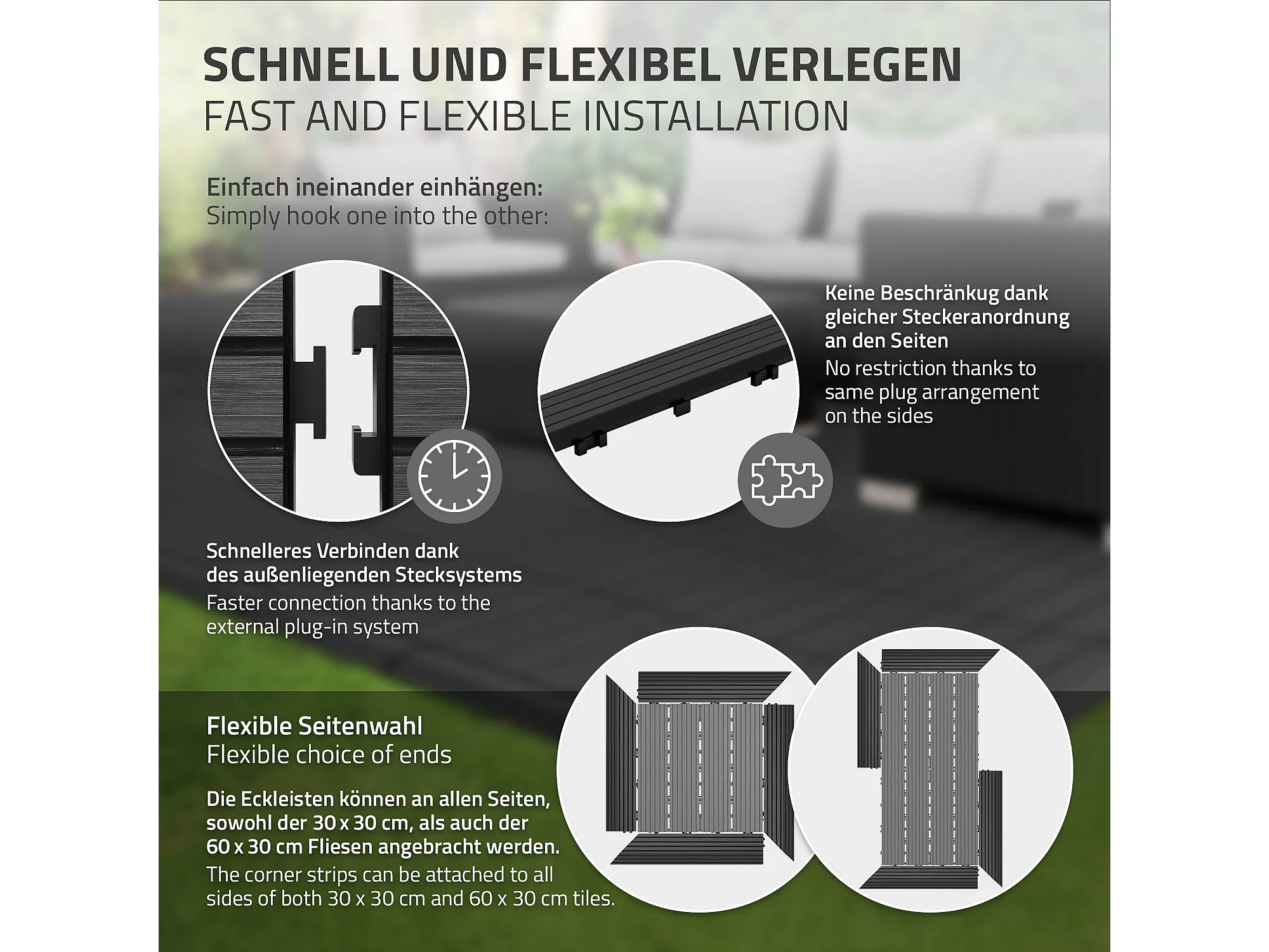 Bordure de finition angle droit 38x2x7,5cm anthracite Plinthe d'angle striée aspect de bois drainage et structure de support système d'encliquetage