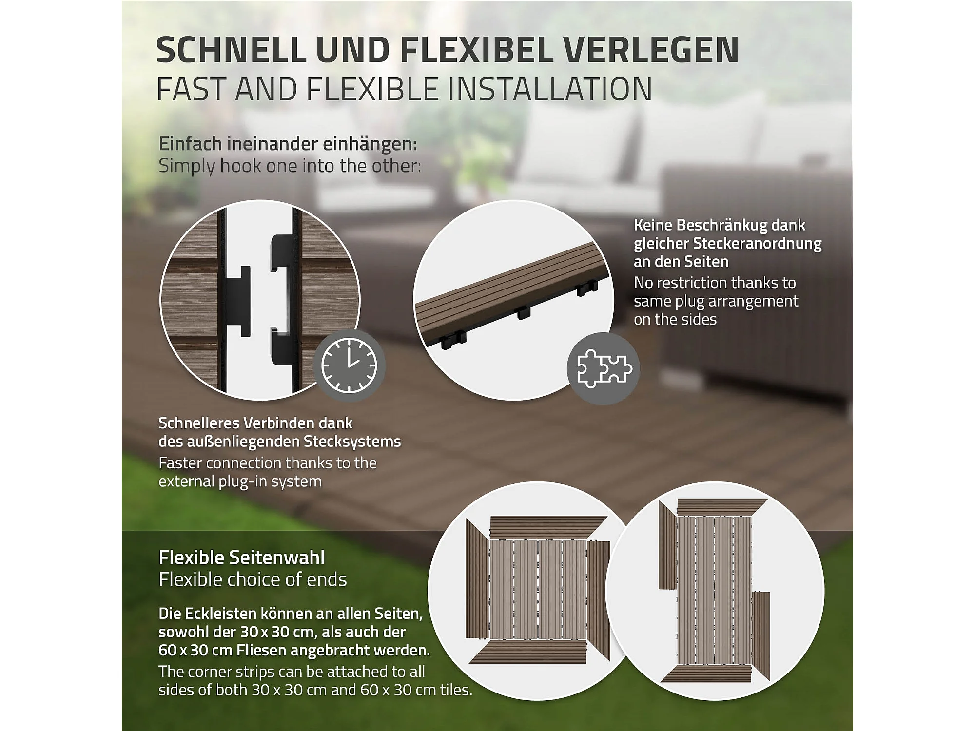 WPC carreaux de sol 30x30 cm 5m² mosaïque pour jardin piscine patio marron clair