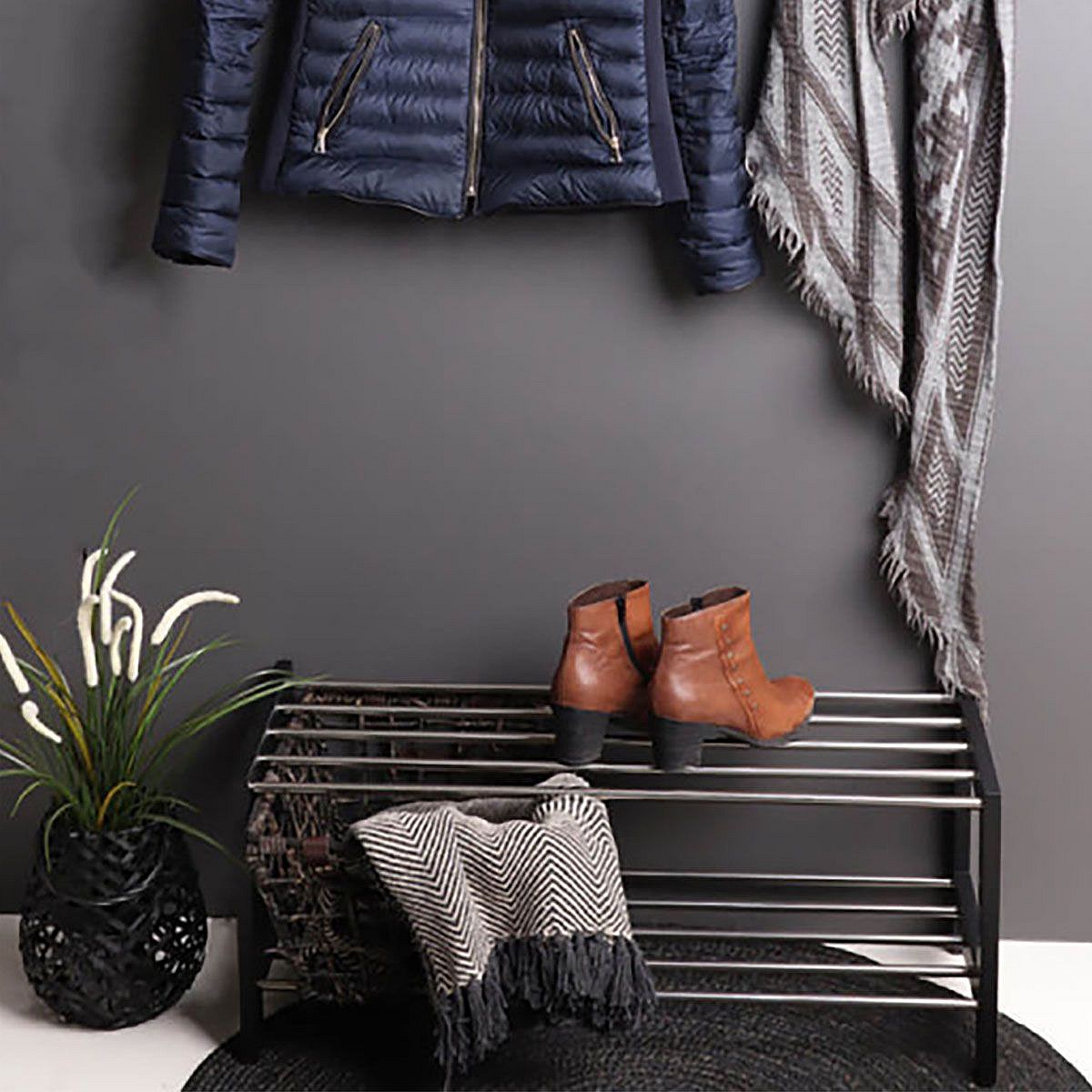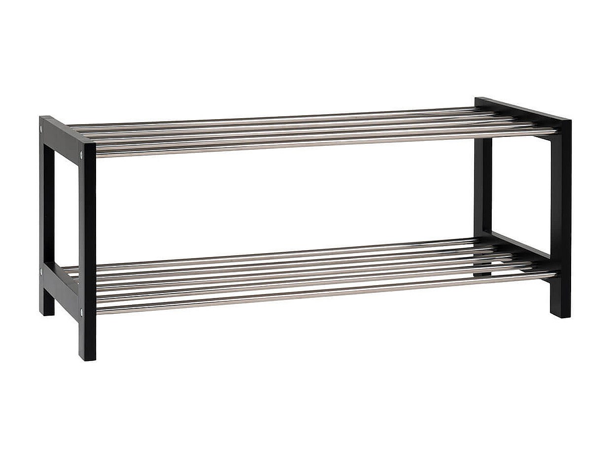 BOSCO - Etagère à Chaussures Peuplier Noir et Acier Chromé