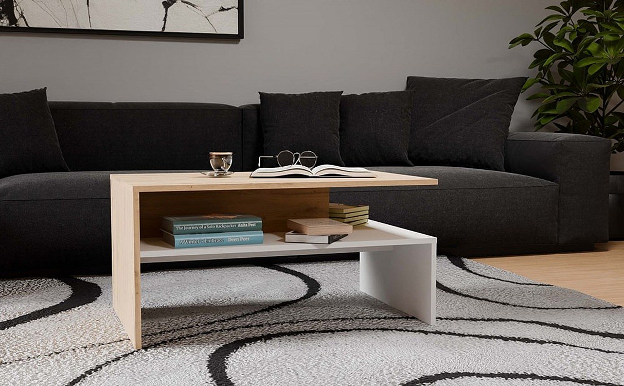 BOSTON - Table basse contemporaine 90x60x45 salon/bureau/séjour - Table style moderne + Niche rangement magazines/télécommandes