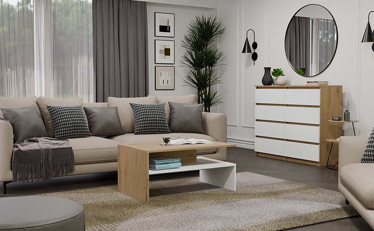 Table basse Blanc et chêne sonoma 90x60x35 2