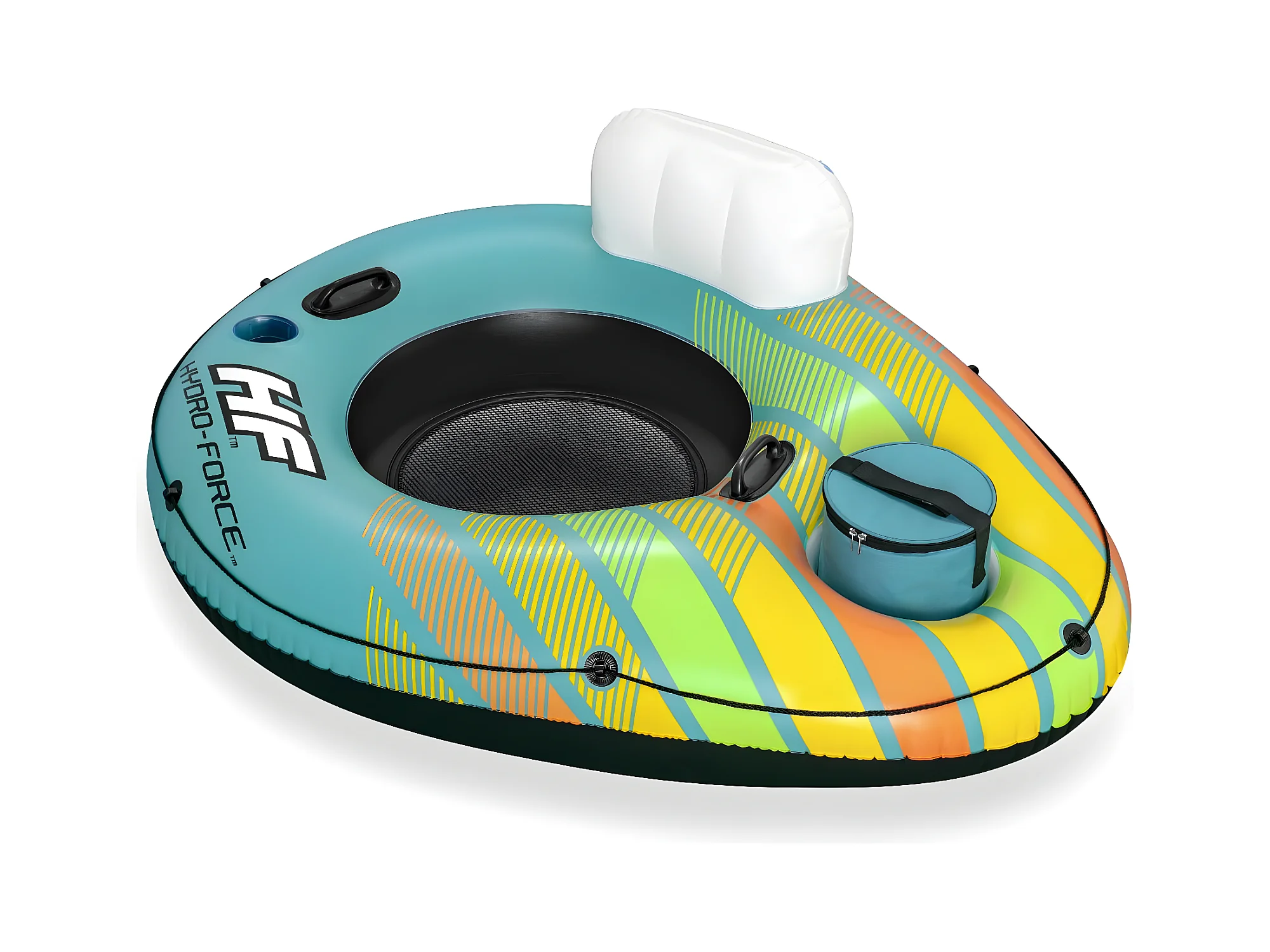 Bouée de Rivière Bestway Hydro-Force 159x126x53 cm Dossier, Porte-Verre, Poignées et Glacière Isotherme, Extractible Multicolore