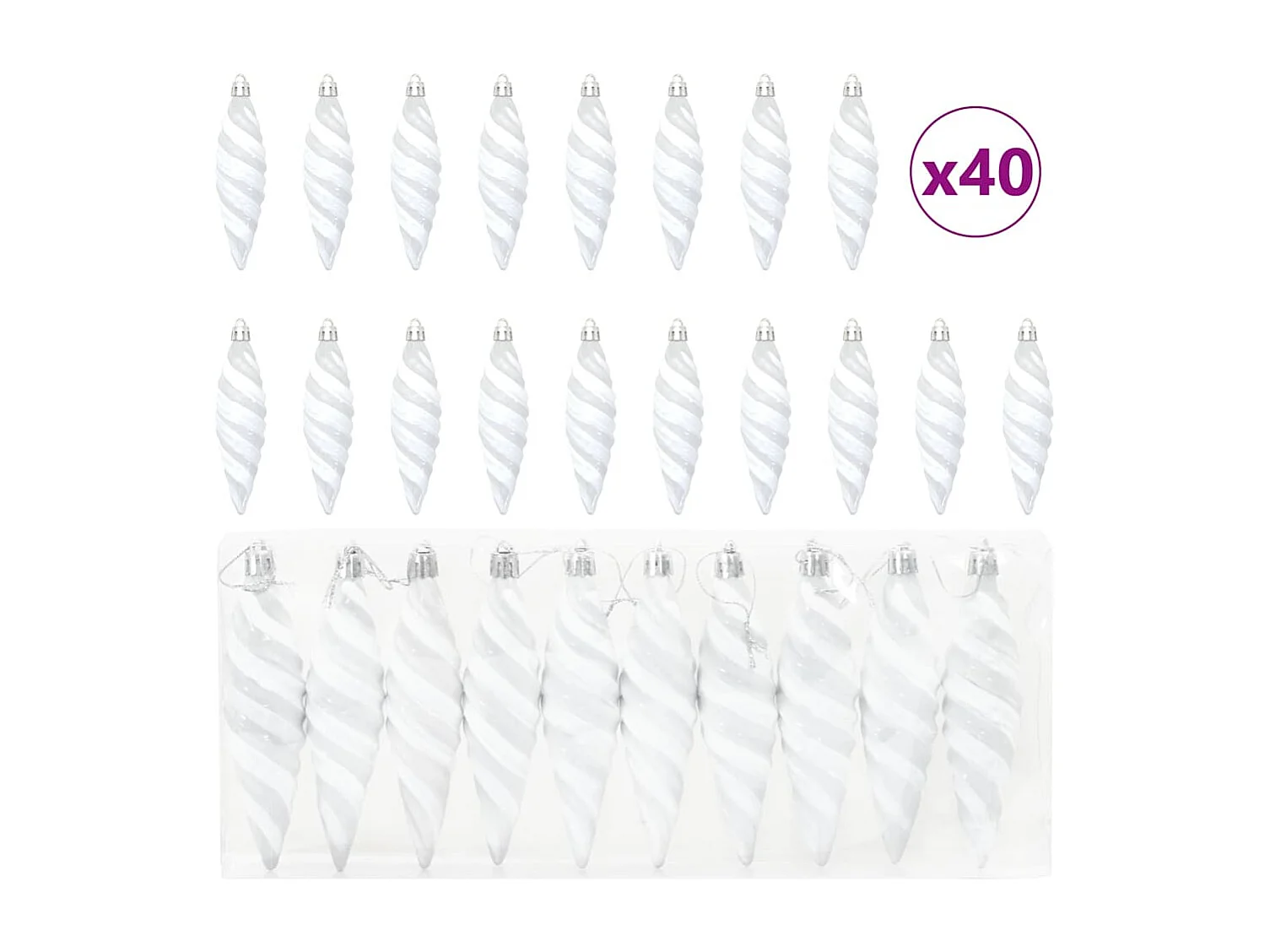 Boule en forme de spirale de Noël 40 pcs Blanc