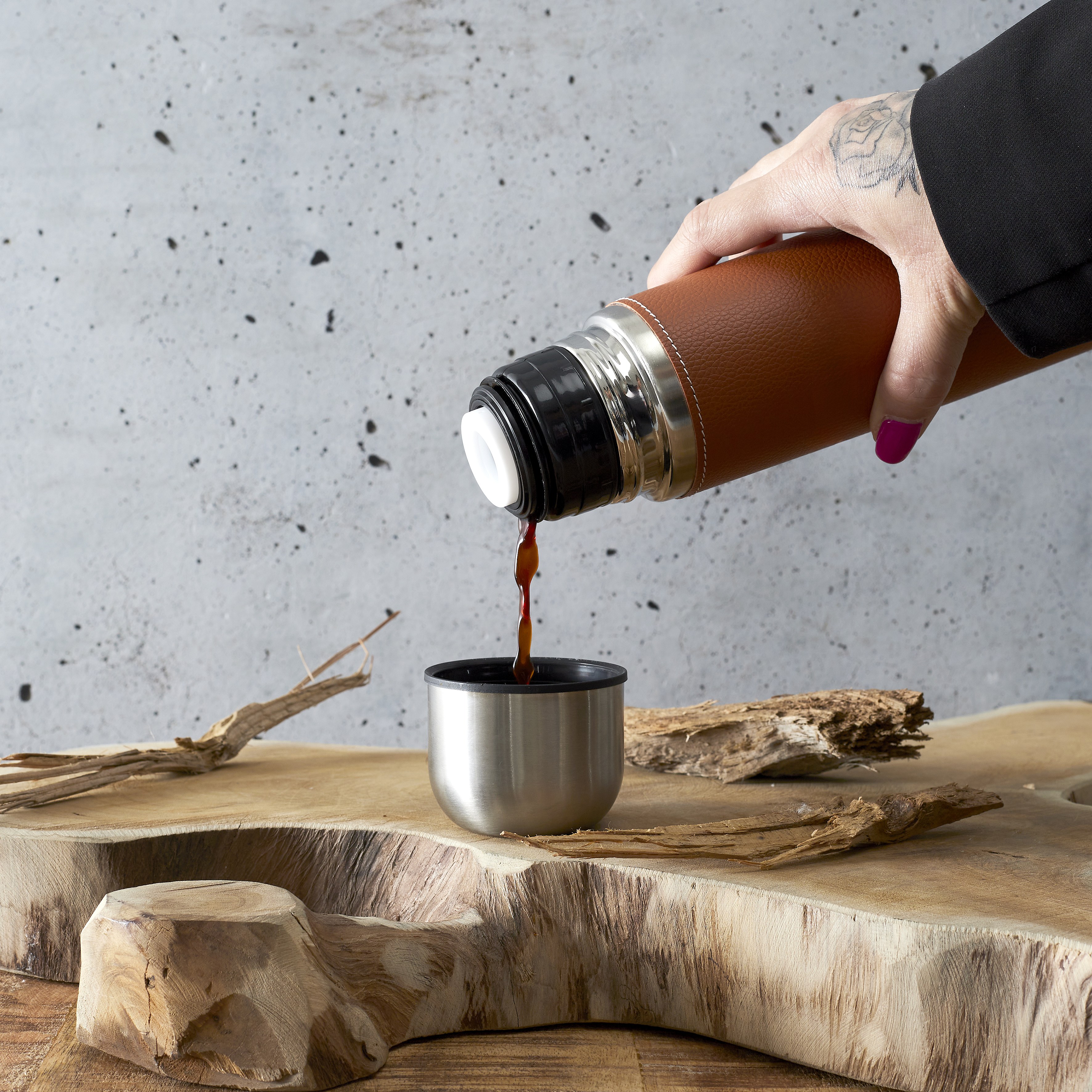 Coffret Bouteille Isotherme Effet Bois 50cl Marron
