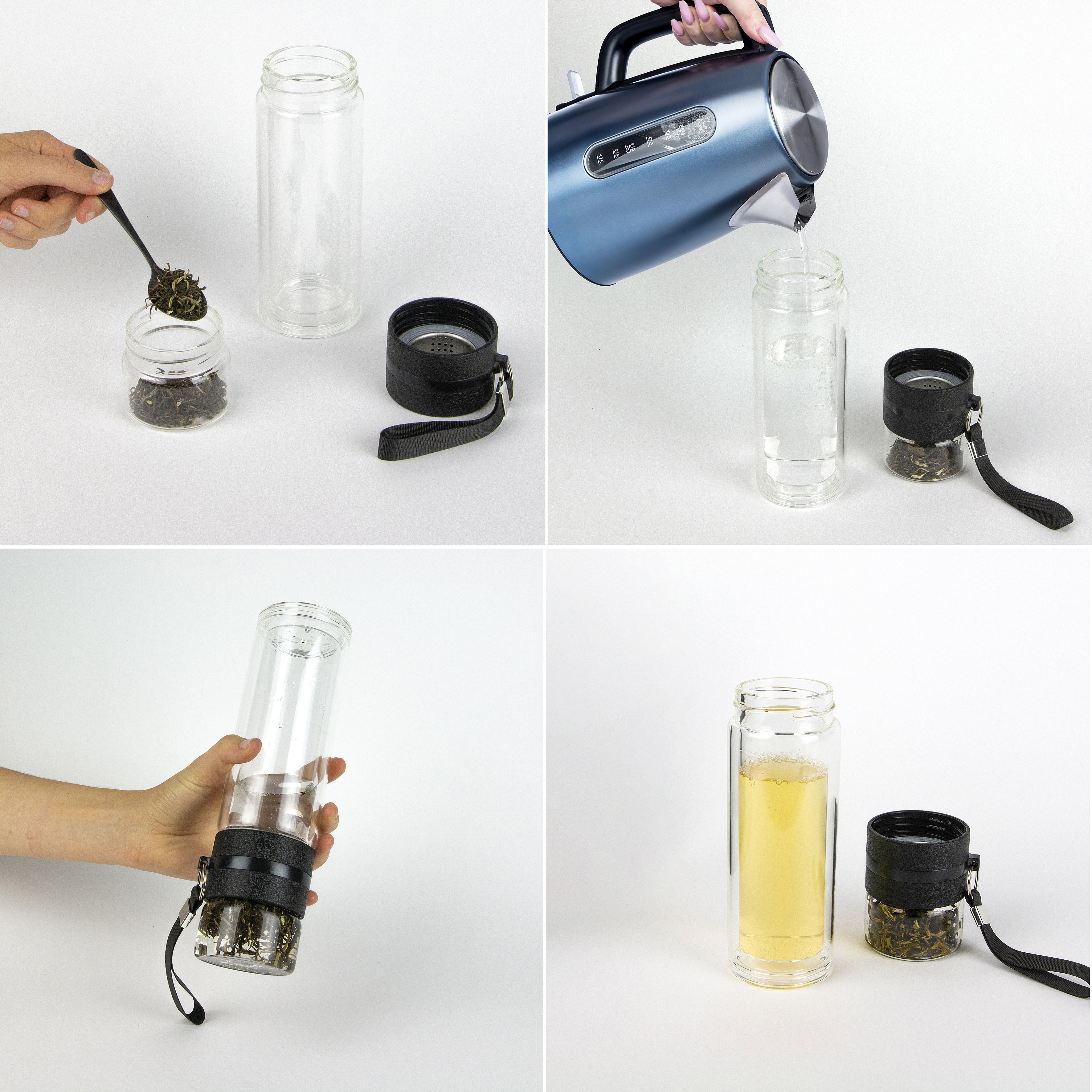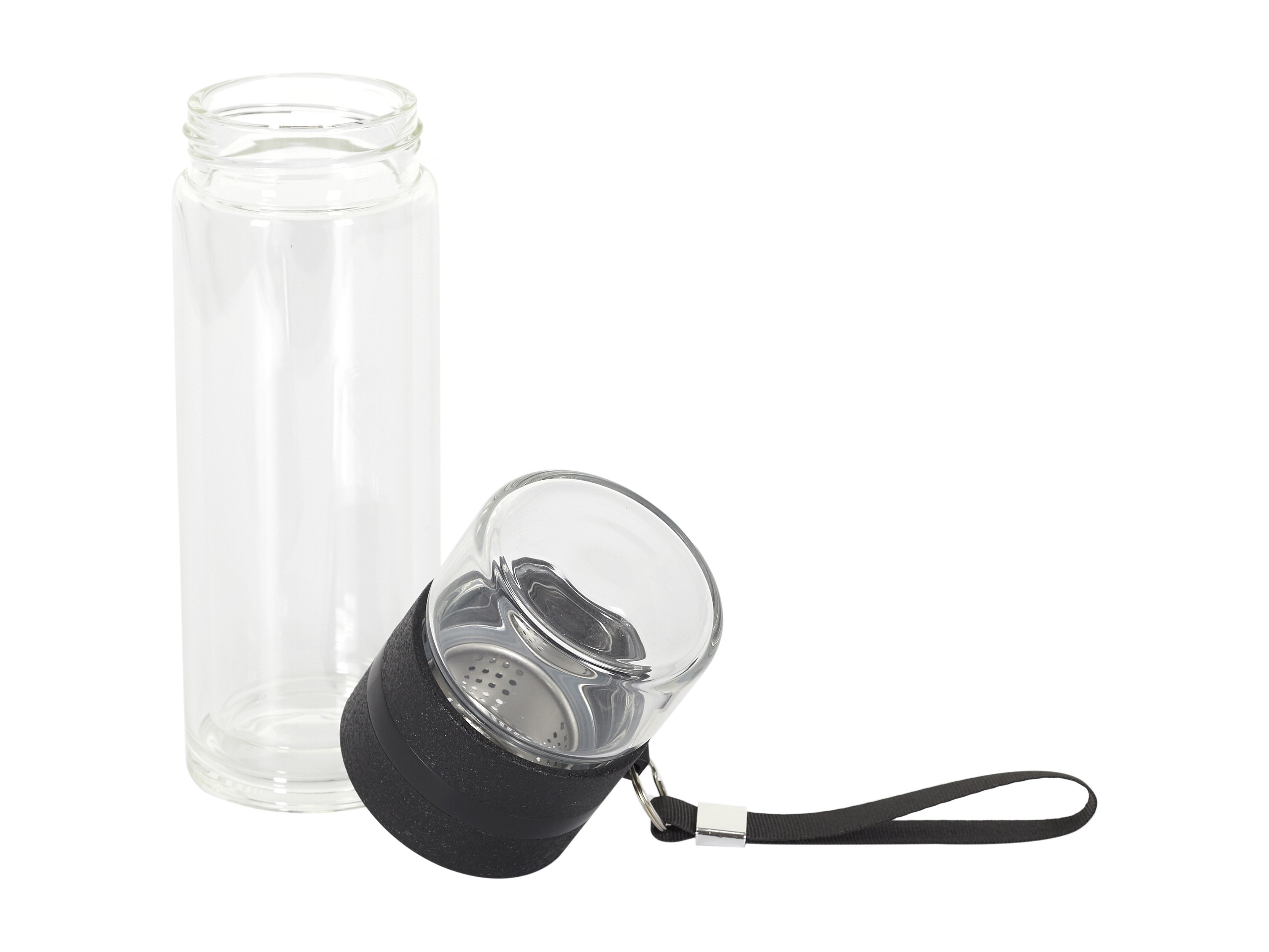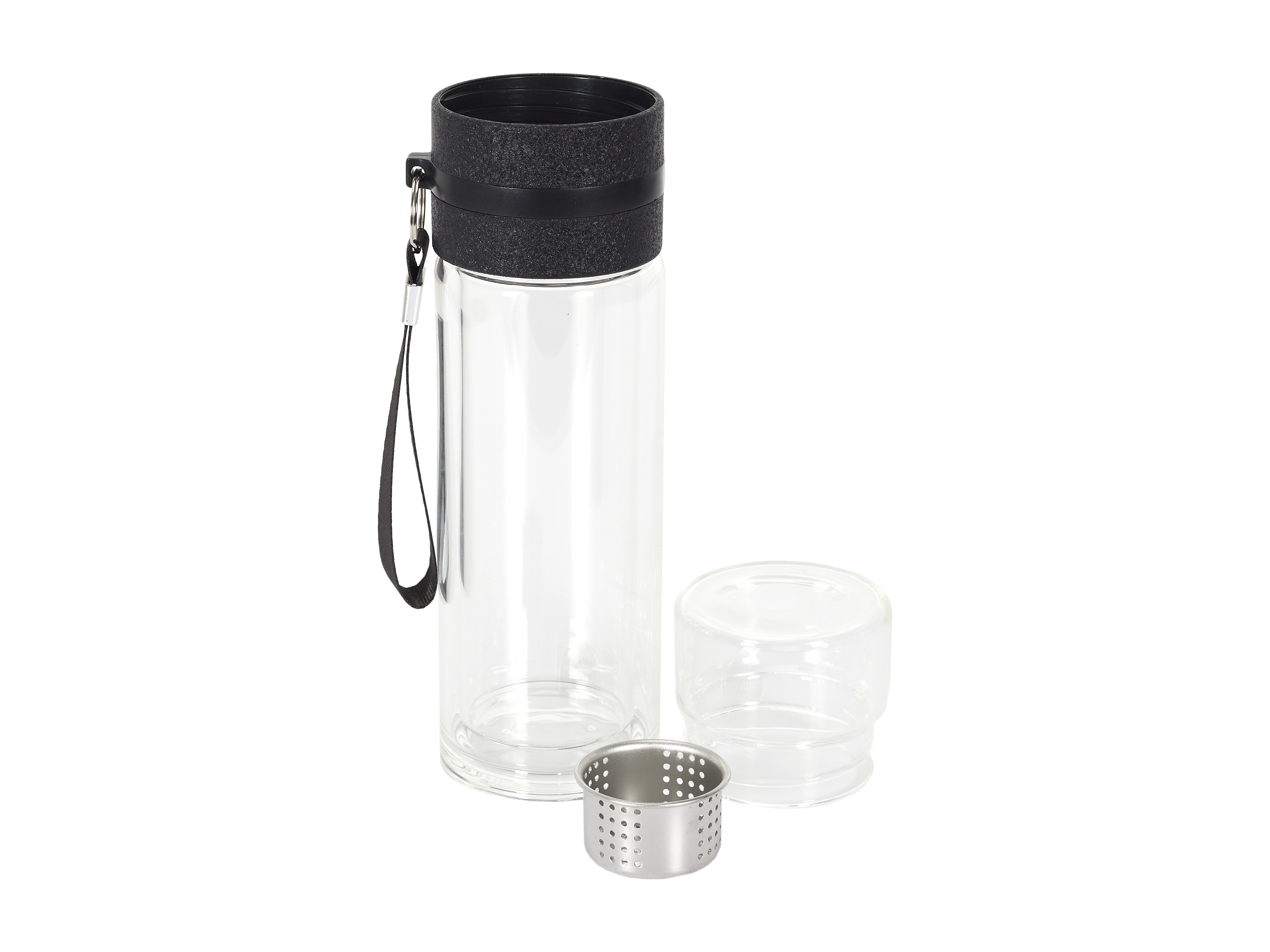 Bouteille Double Paroi Compartiment Infusion Noir, Transparent