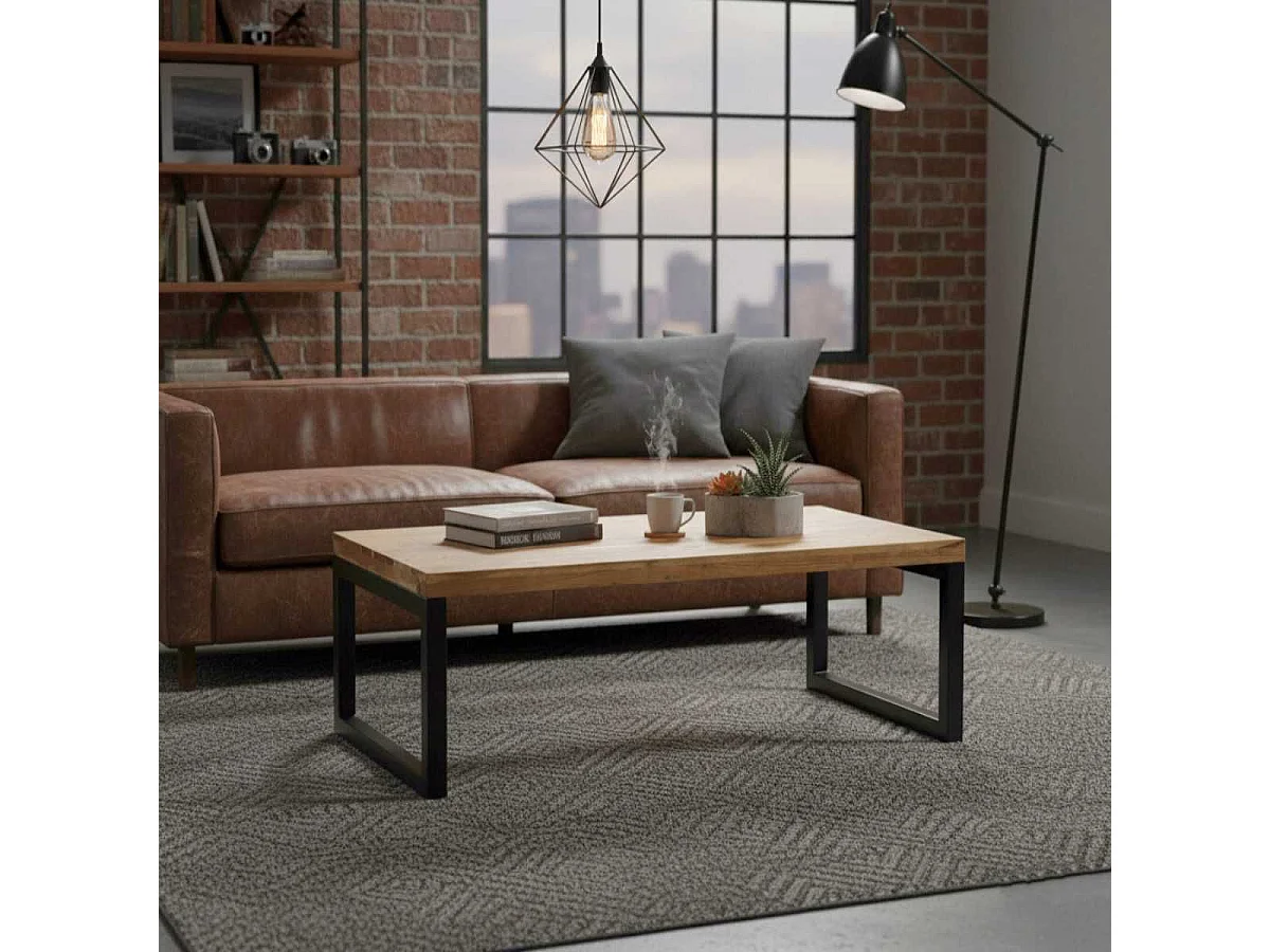 BOWNA - Table Basse en Acacia Massif et Métal Noir