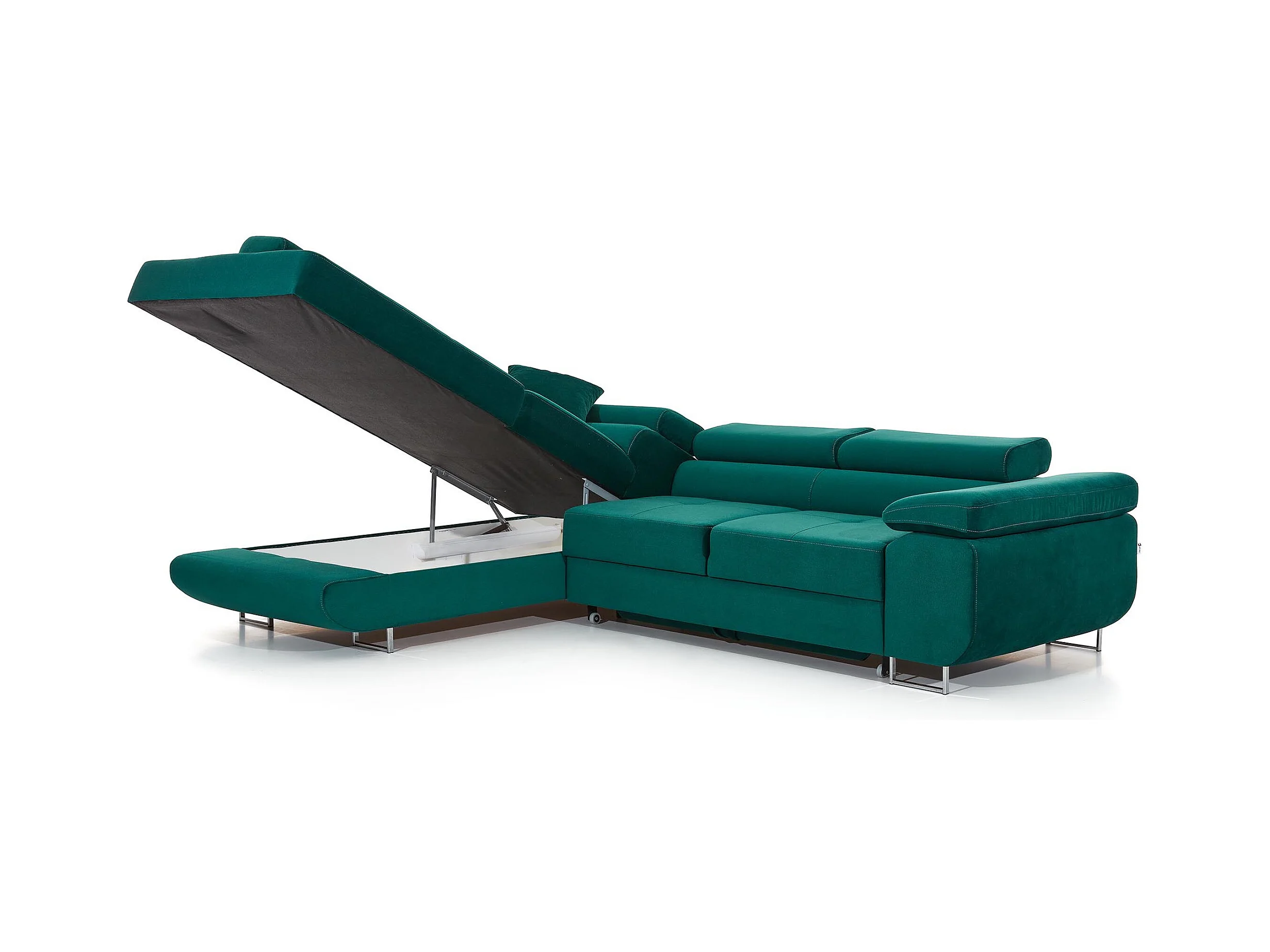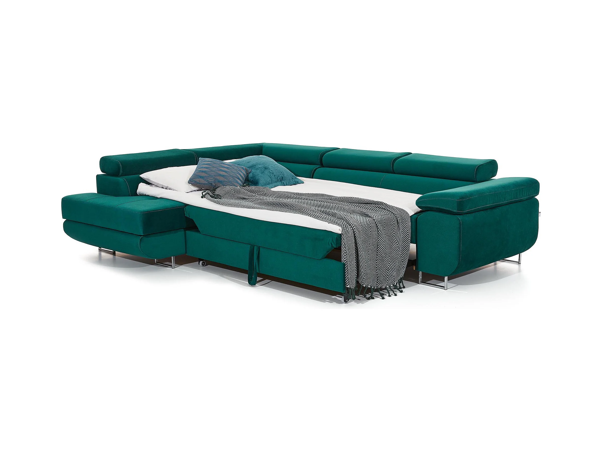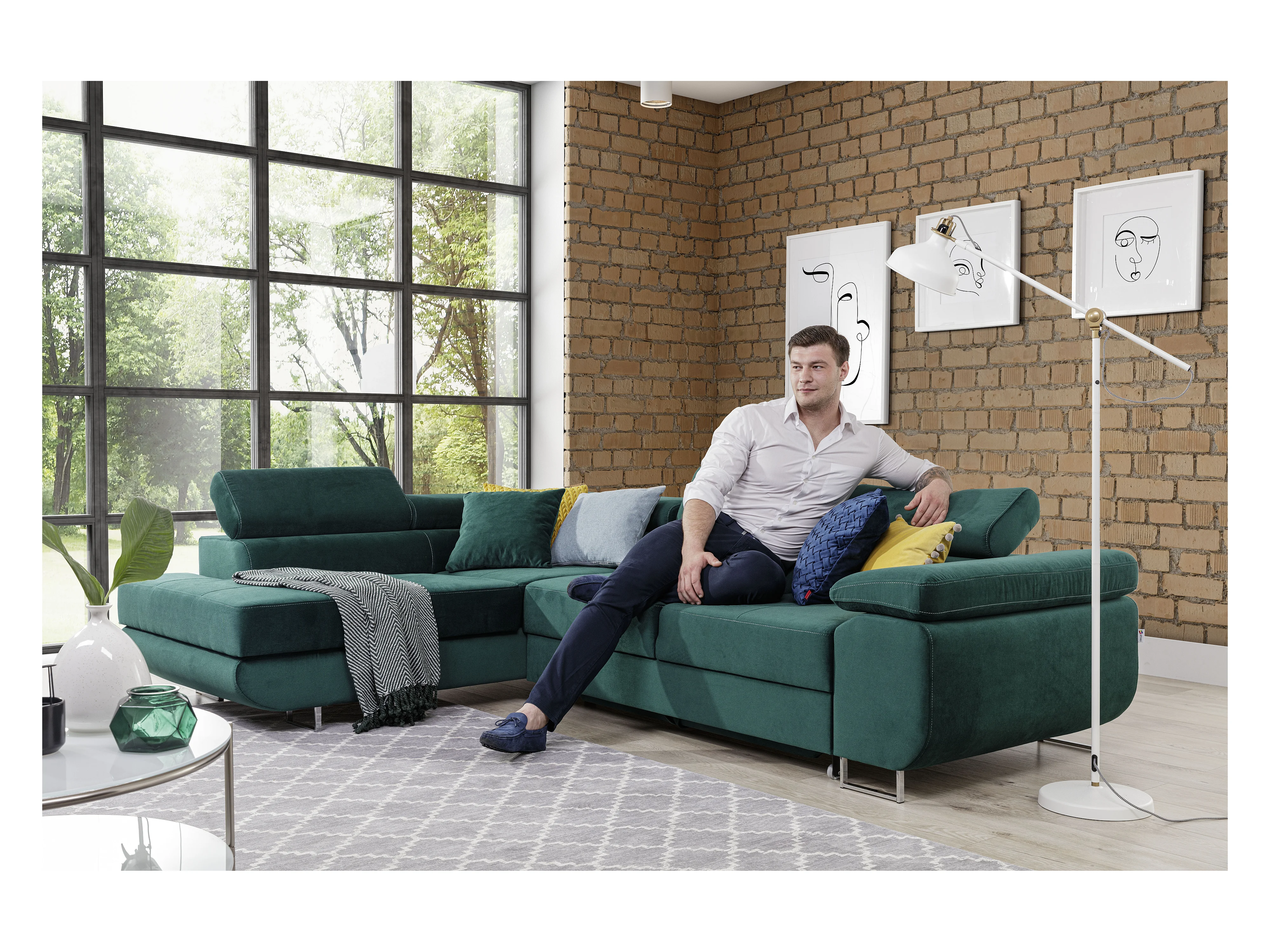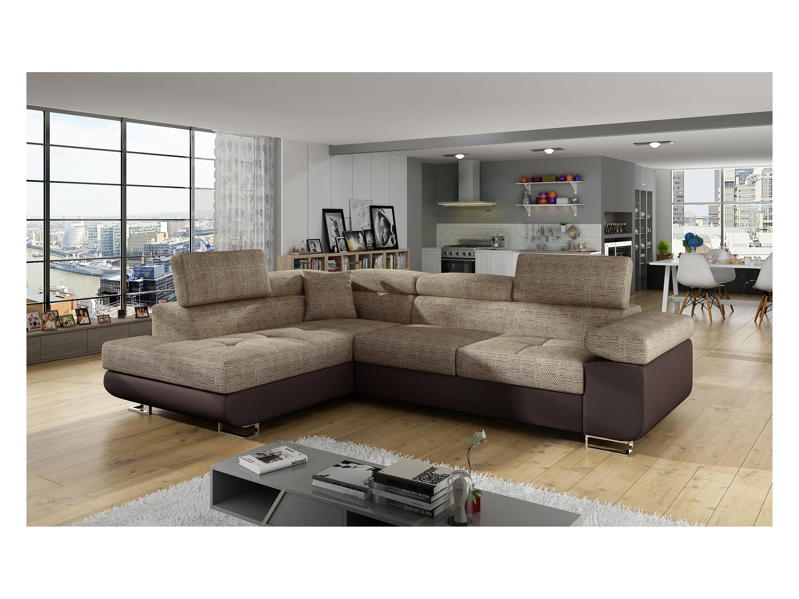 Canapé d'angle gauche convertible tissu beige clair chiné et simili marron Marka 275cm