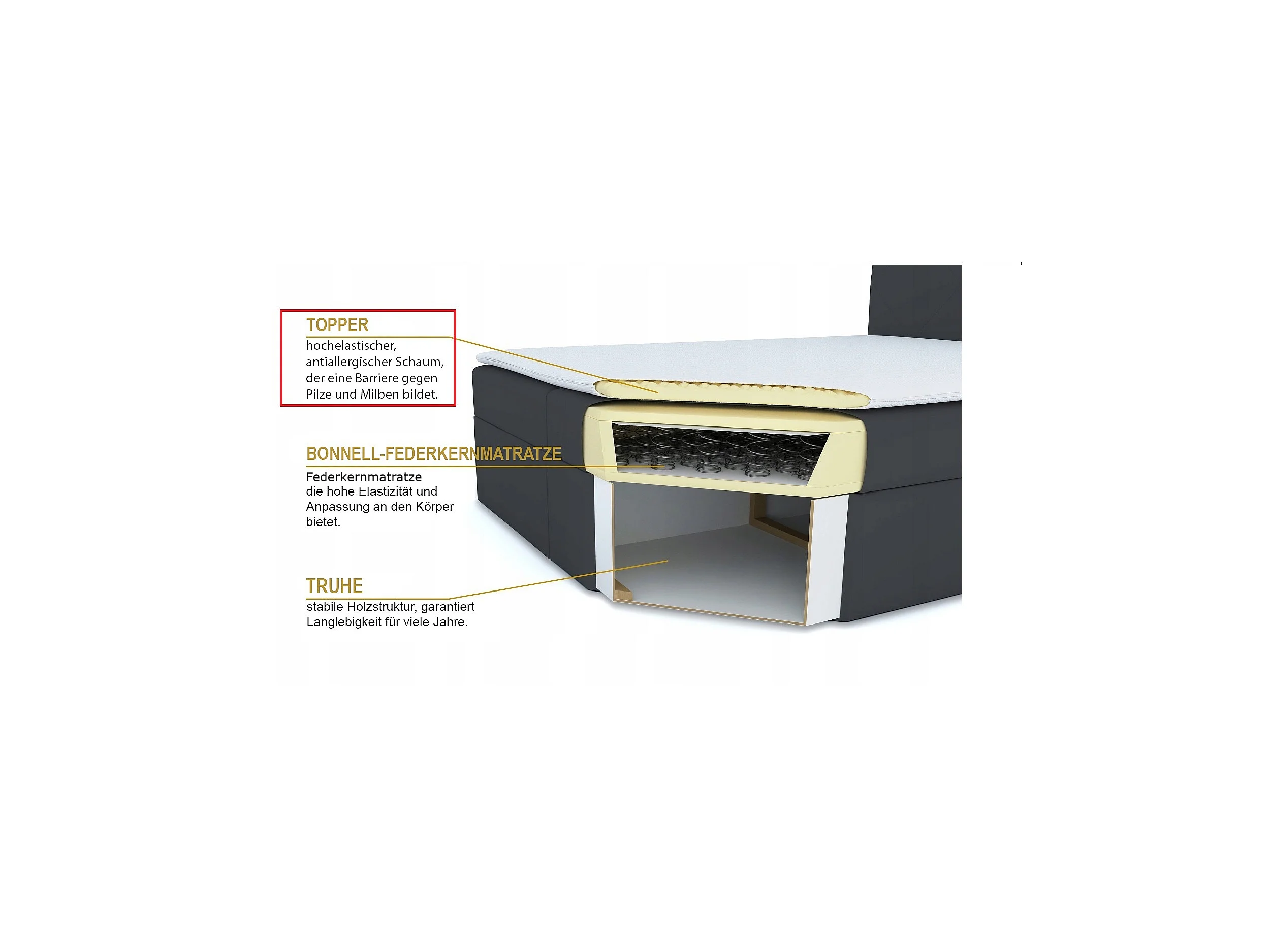 BOXBETT CHESTER 120x200 Monolith 59 avec matelas H3 et surmatelas lit avec coffre, lit simple, lit d'hôtel, chambre, avec rangement