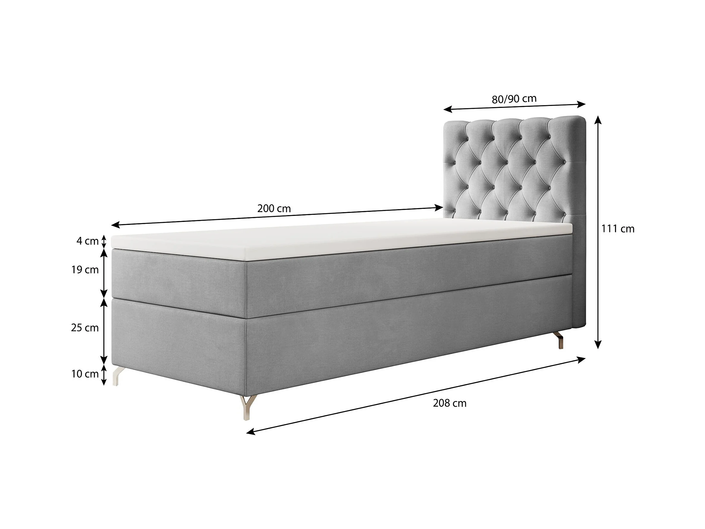 BOXBETT CHESTER 80x200 Monolith 97 avec matelas H3 et surmatelas lit avec coffre, lit simple, lit d'hôtel, chambre, avec rangement