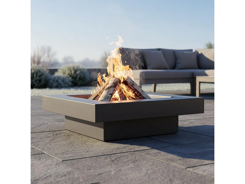Brasero de jardin carré CUBA en acier-Acier naturel-70 --70x70 cm--Acier naturel