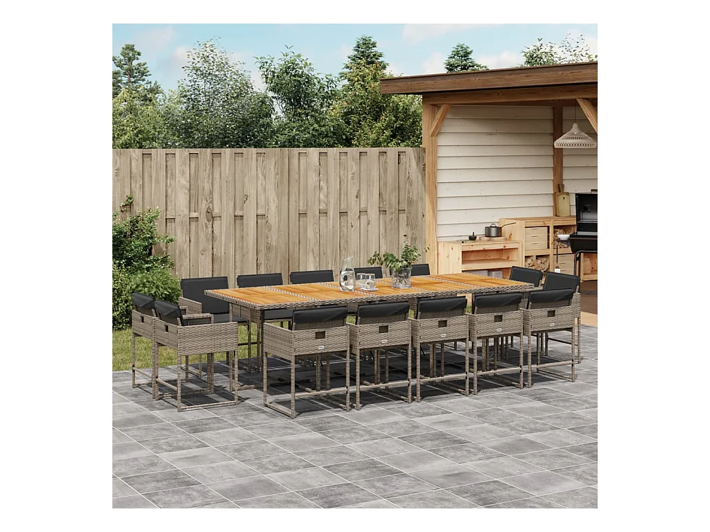 Brienne Ensemble à manger de jardin 15 pcs coussins gris résine tressée