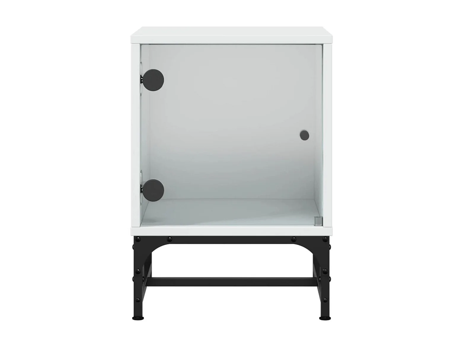 Butte Table de chevet avec porte en verre blanc 35x37x42 cm