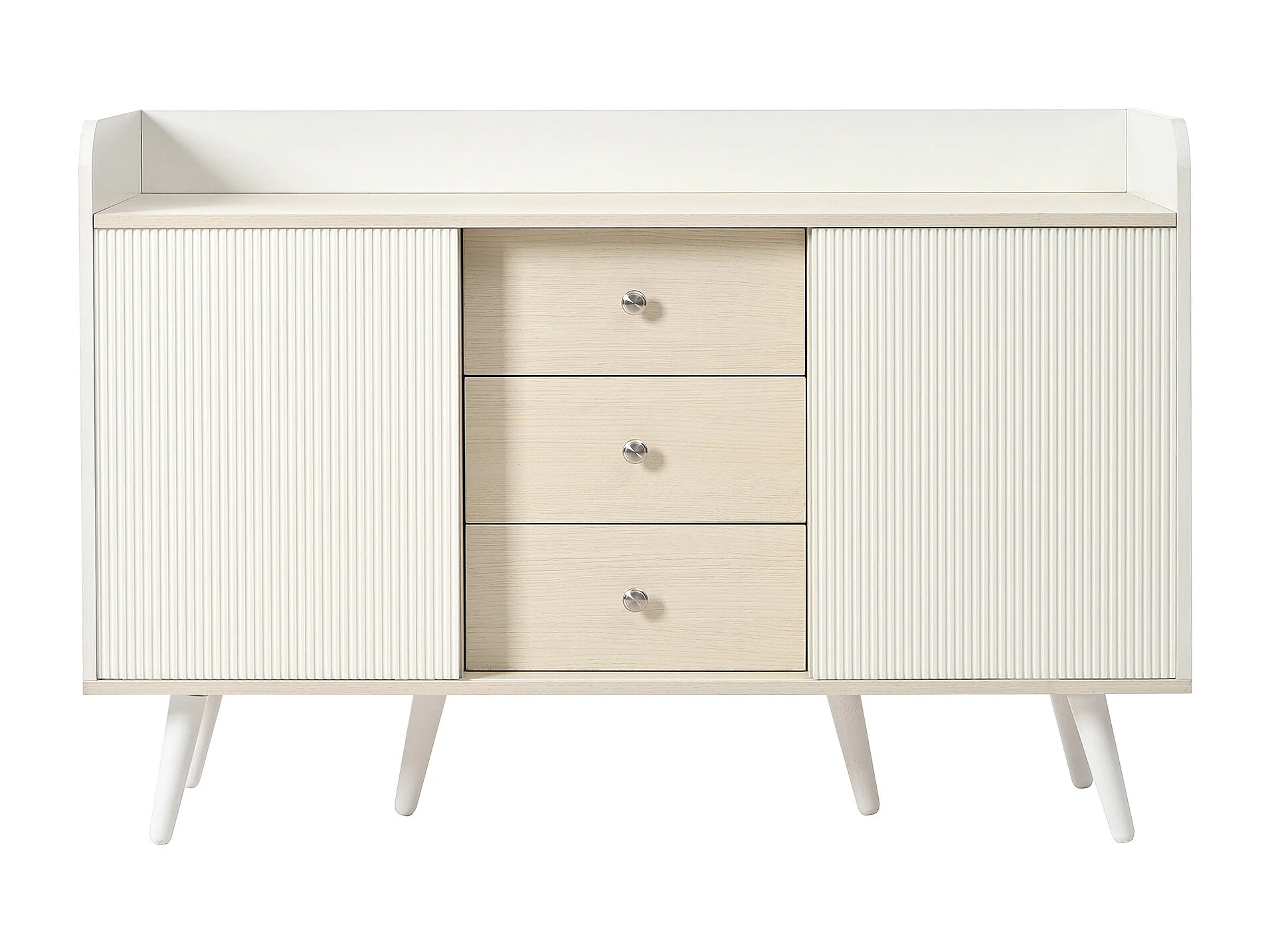 Buffet 117 x 39 x 79 cm - avec 2 portes et 3 tiroirs - blanc et couleur bois - pour chambre et salon
