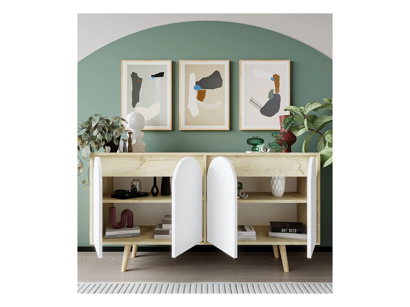 Buffet – 150 cm – Chêne Saphir et Blanc – Aggloméré mélaminé