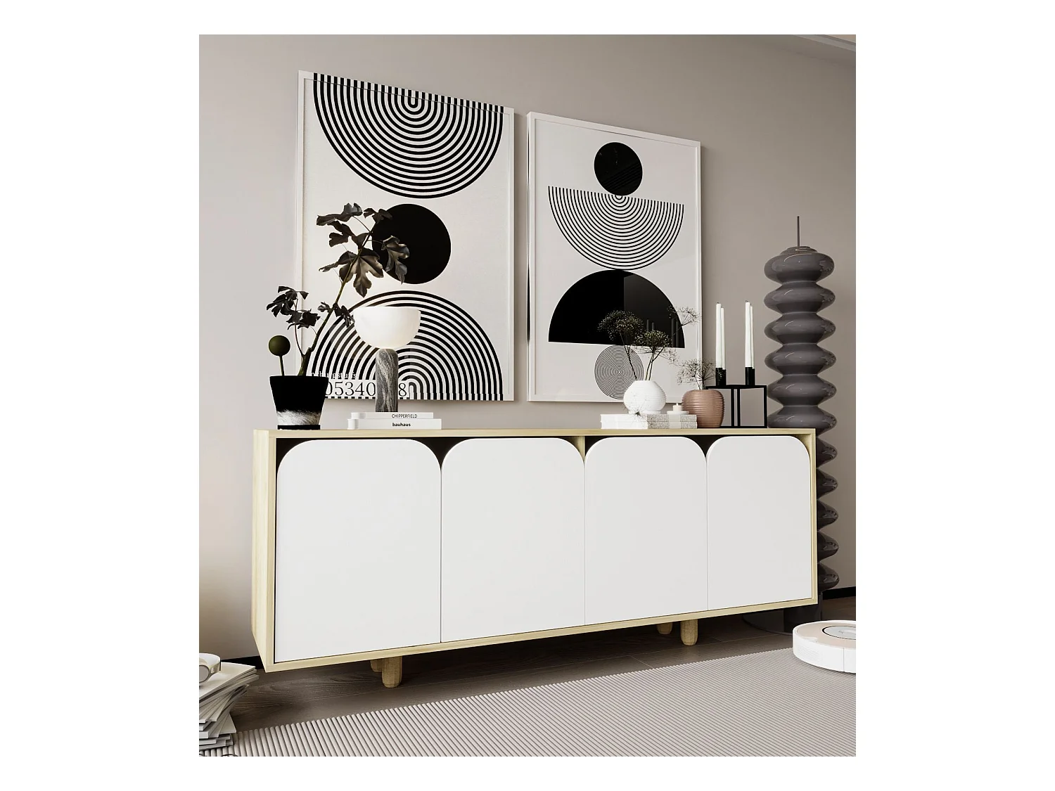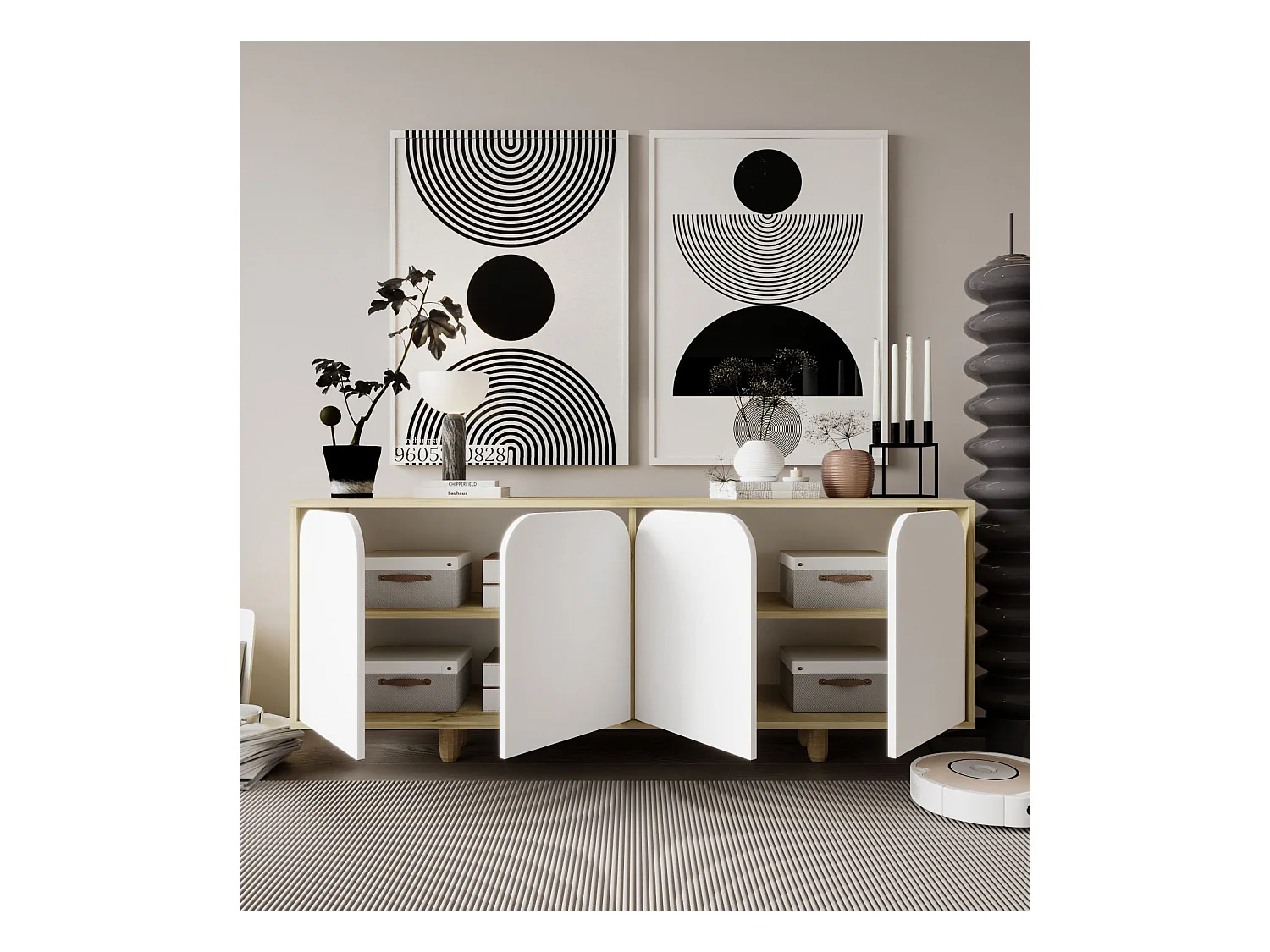 Buffet – 180 cm – Saphir et Chêne Blanc – Aggloméré et Bois