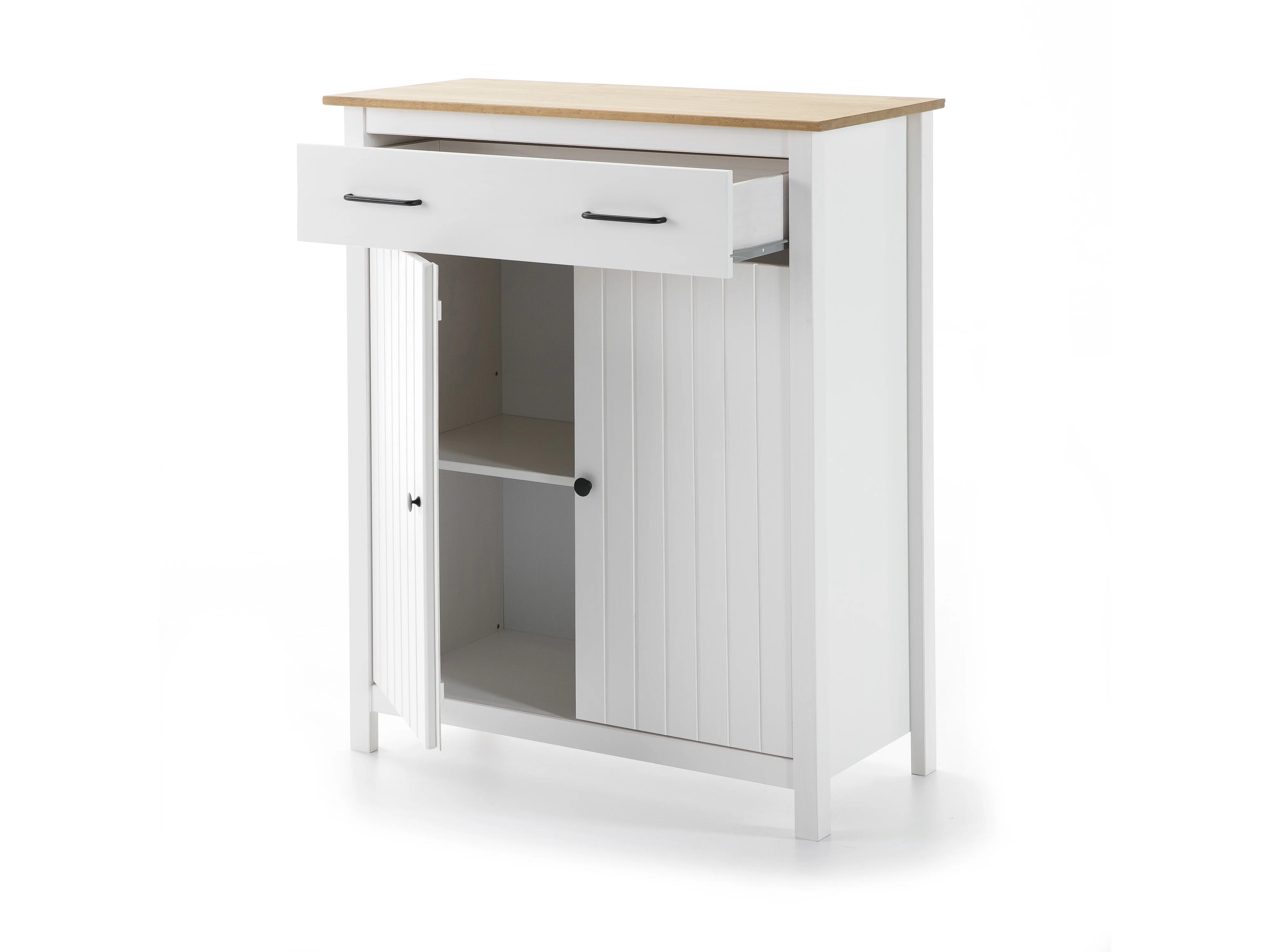 Buffet 2 portes 1 tiroir en bois massif blanc 90 cm - Ida