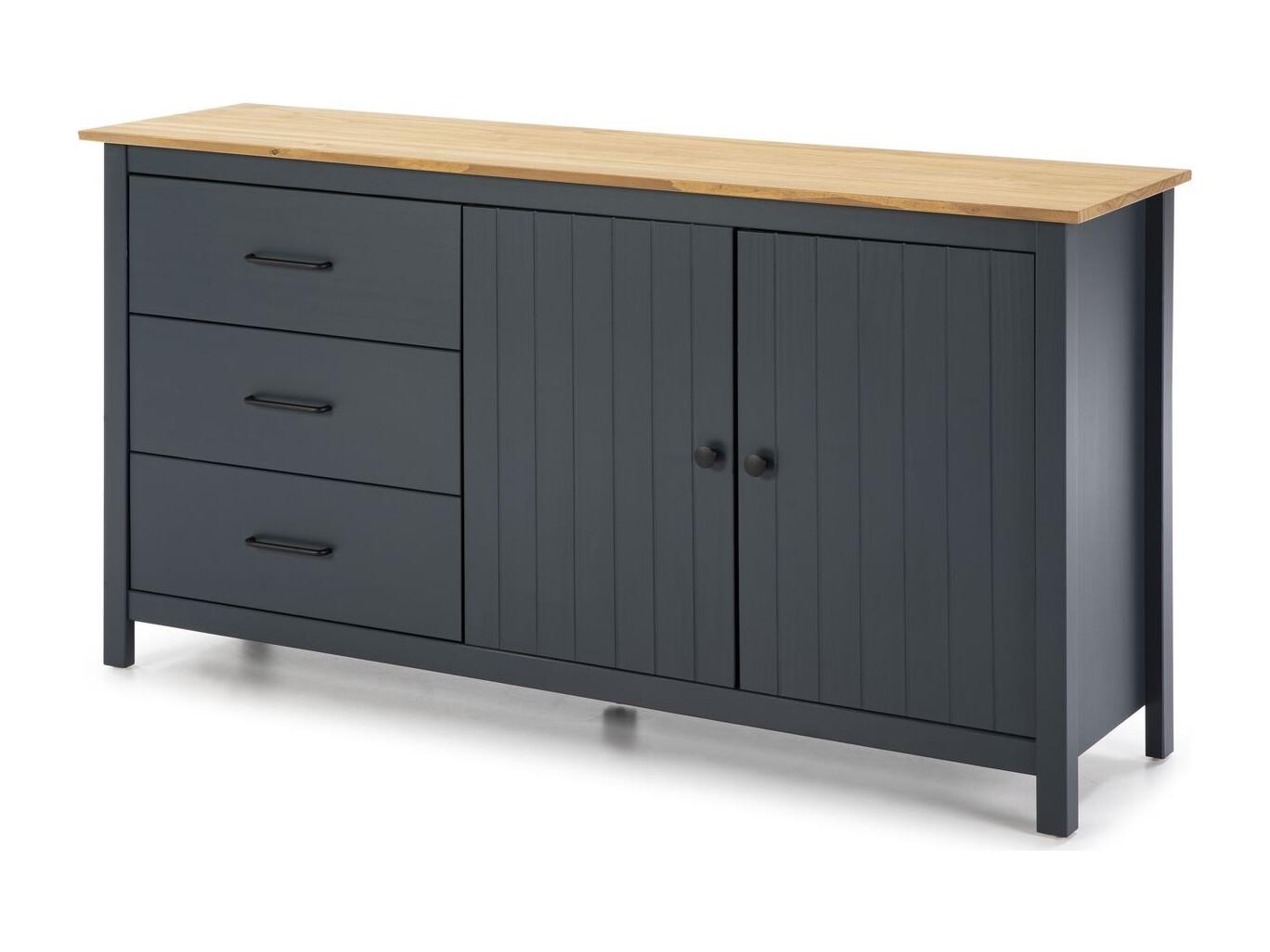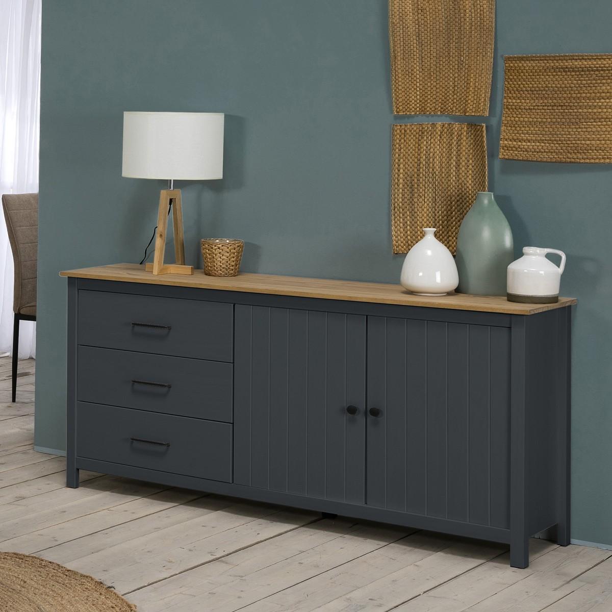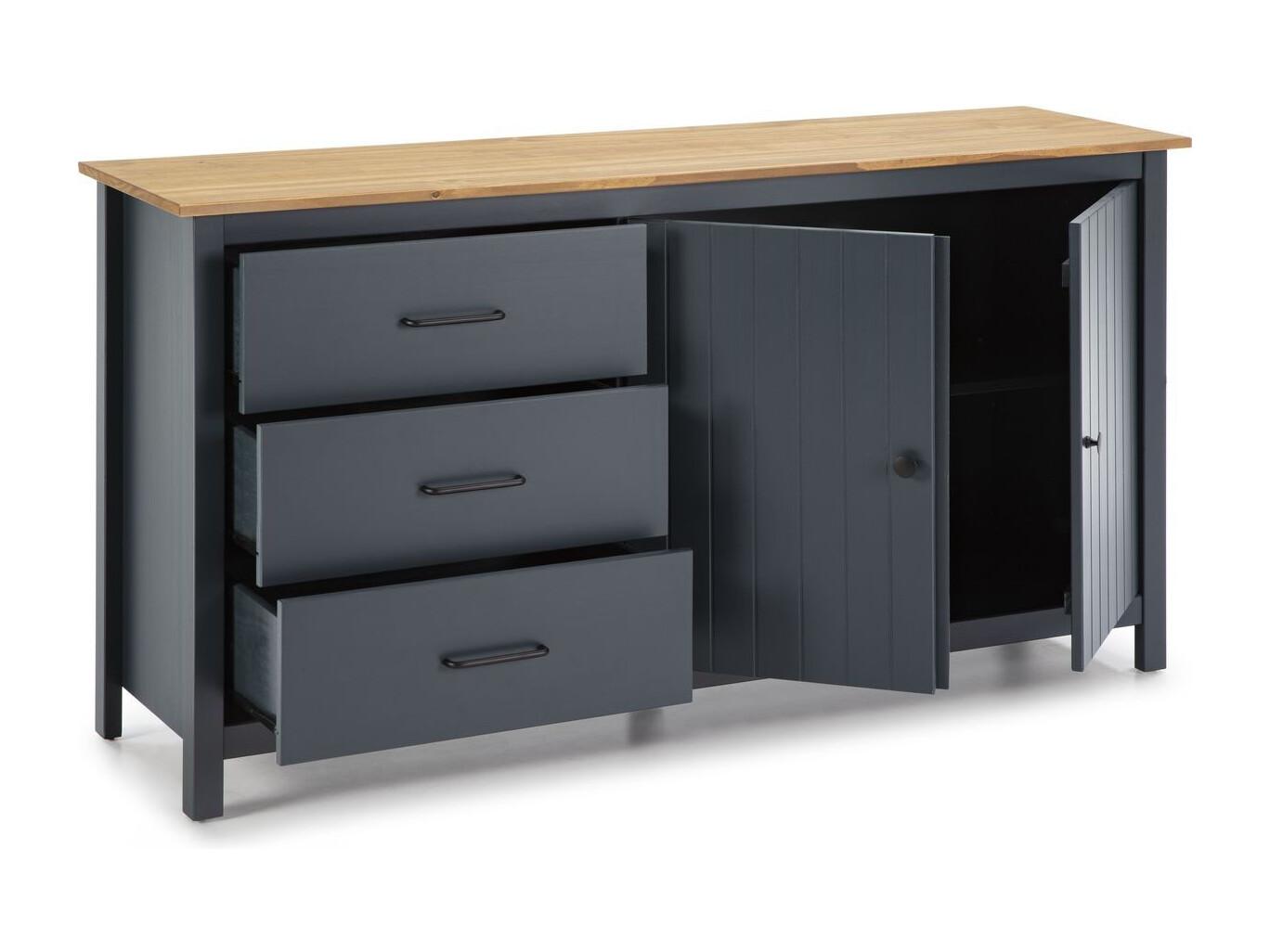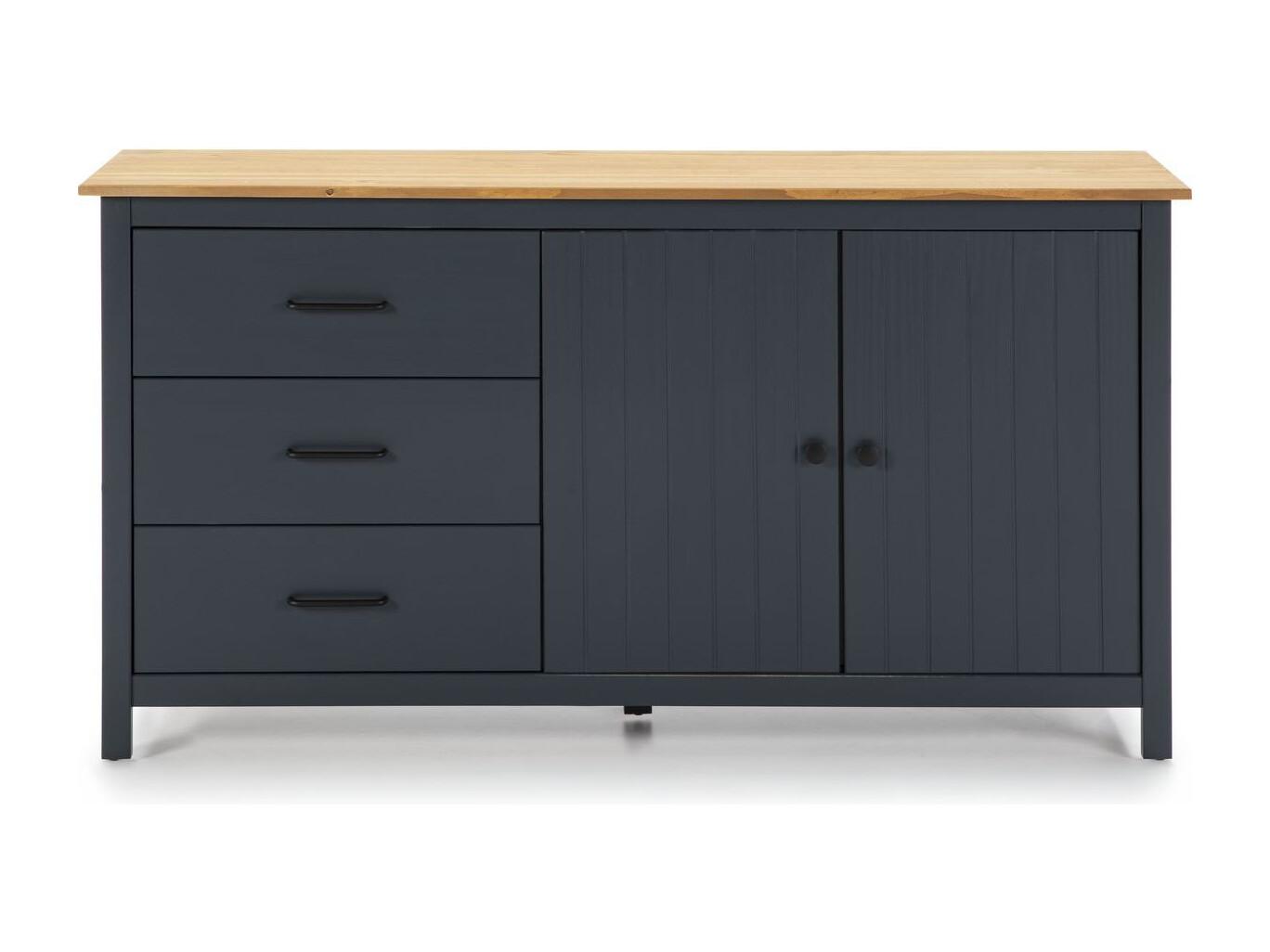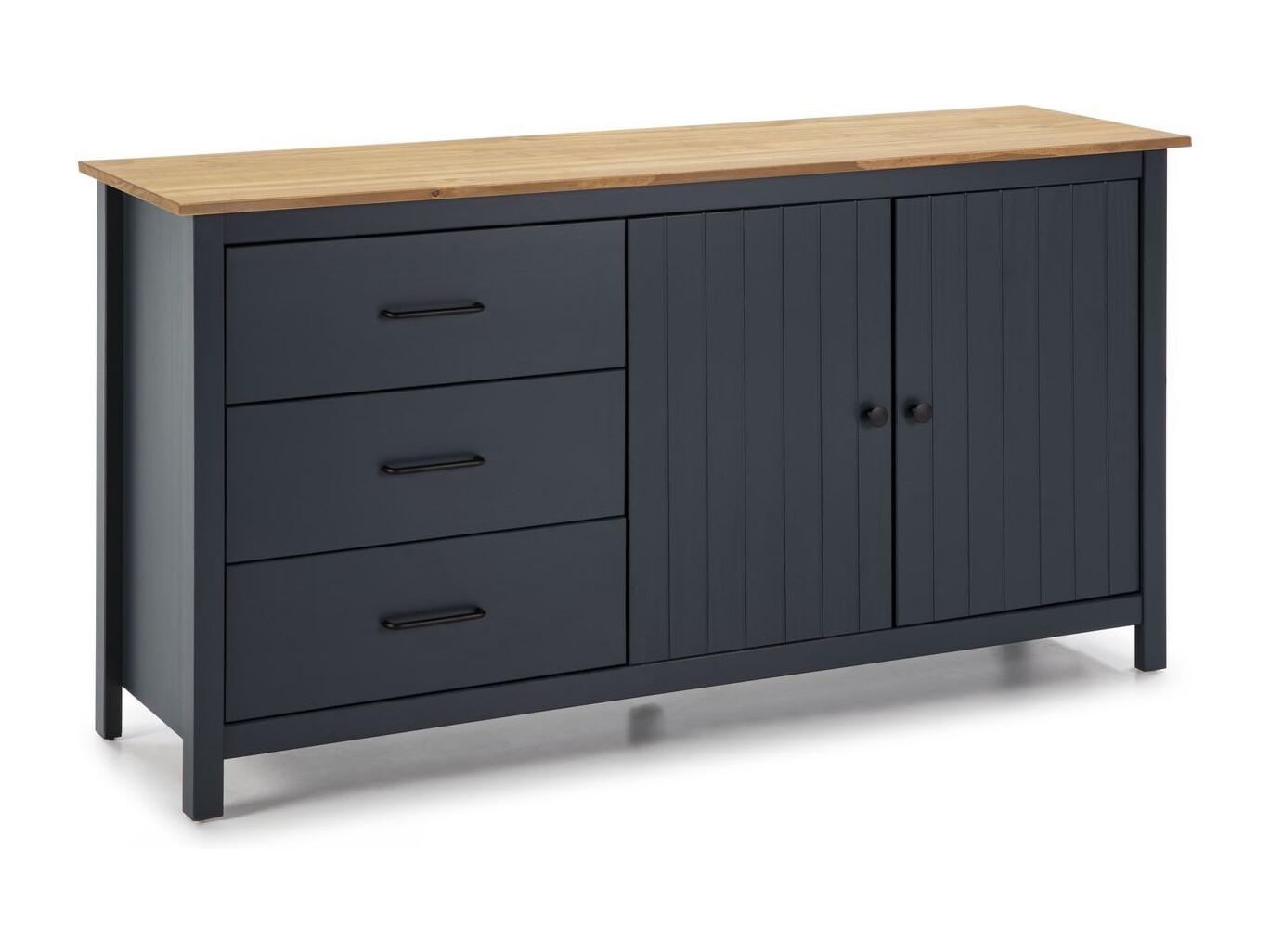 Buffet 2 portes 3 tiroirs en bois massif bleu 150 cm - Ida