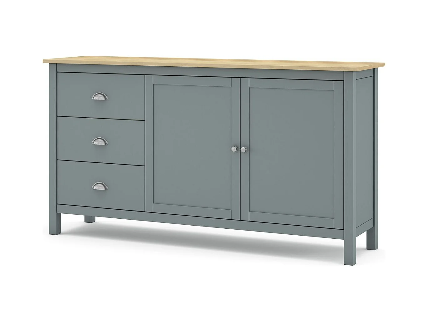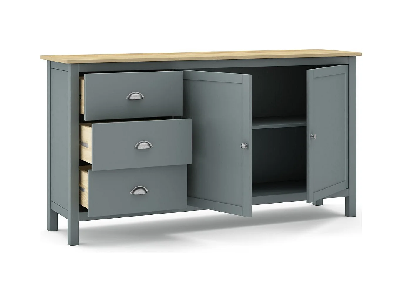 Buffet 2 portes 3 tiroirs en bois massif vert kaki 150 cm- Macha