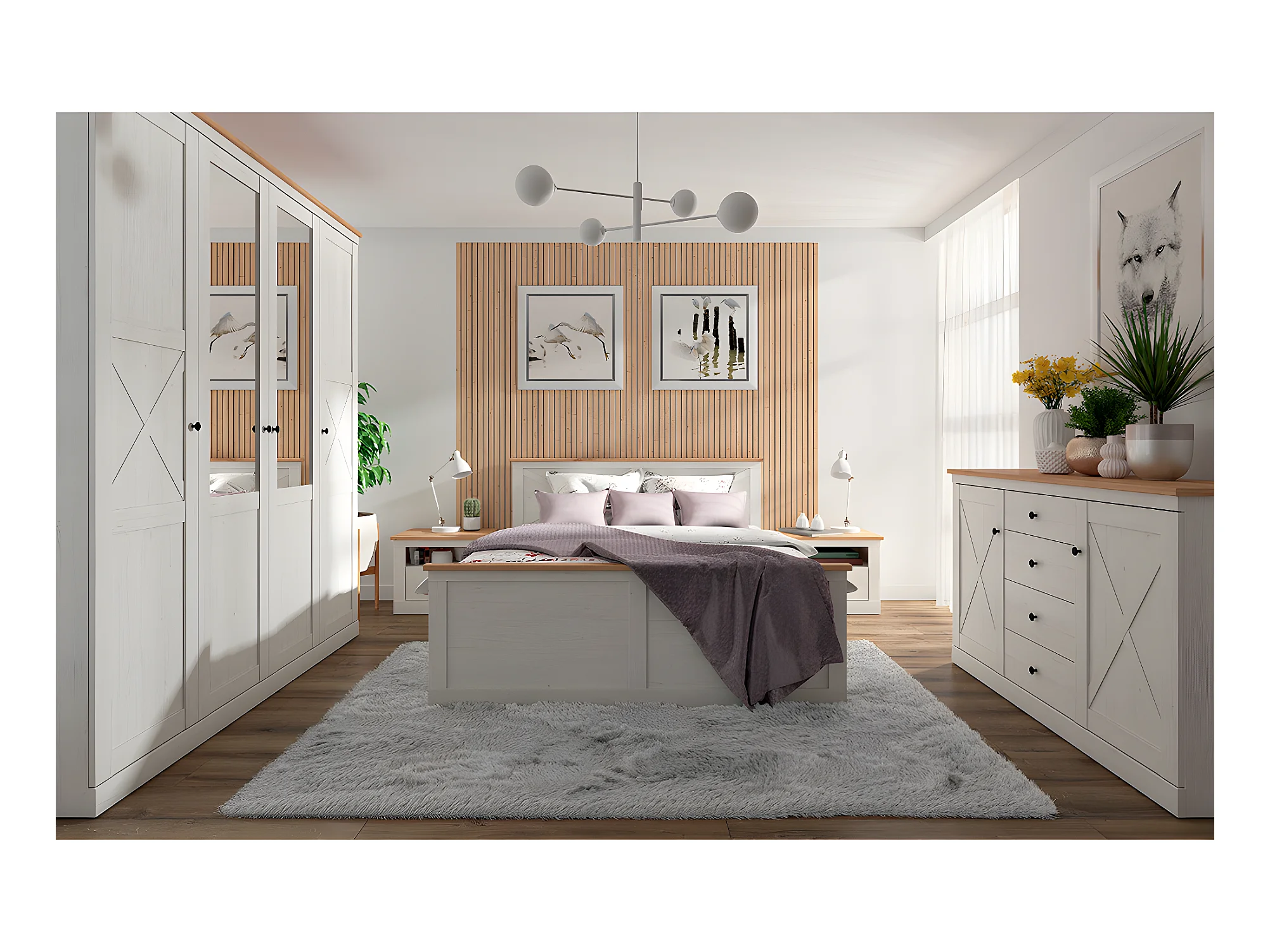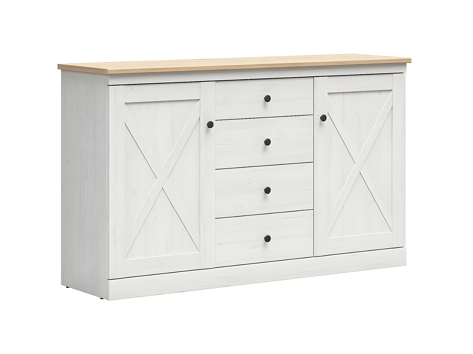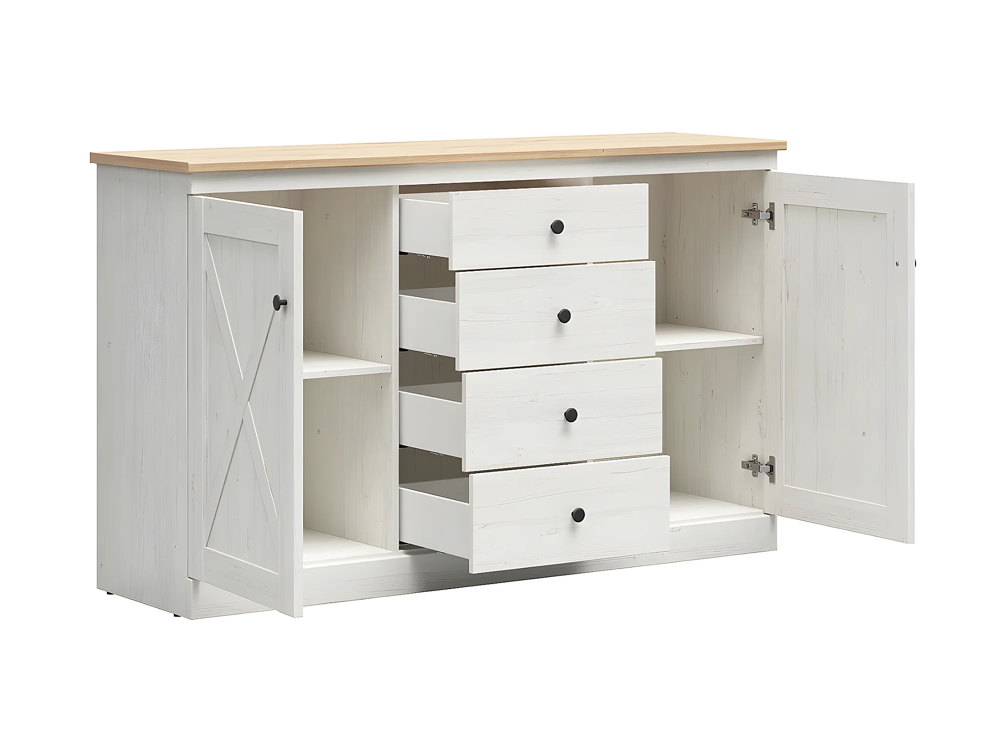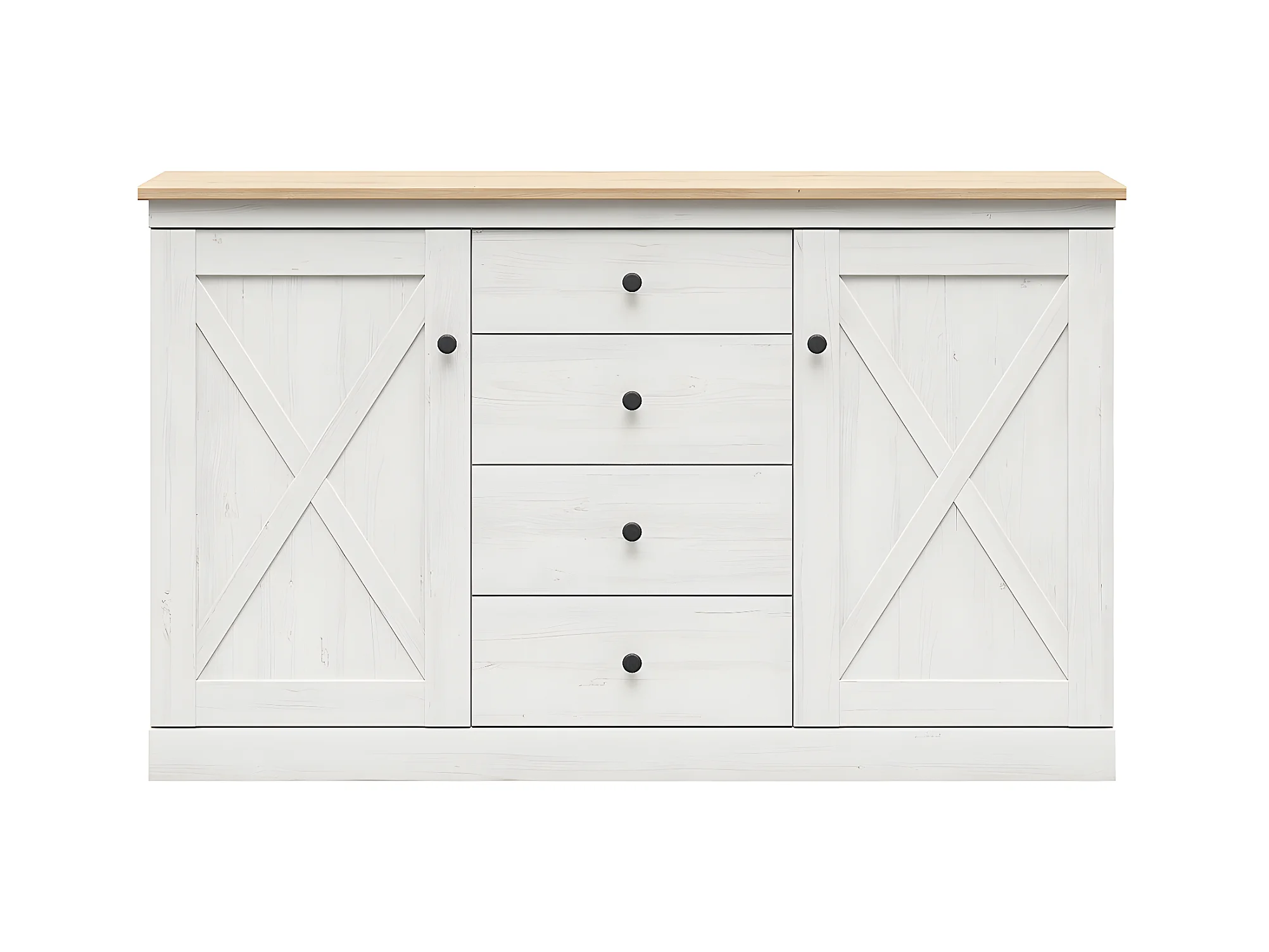 Buffet 2 portes 4 tiroirs Victoria Blanc et Bois