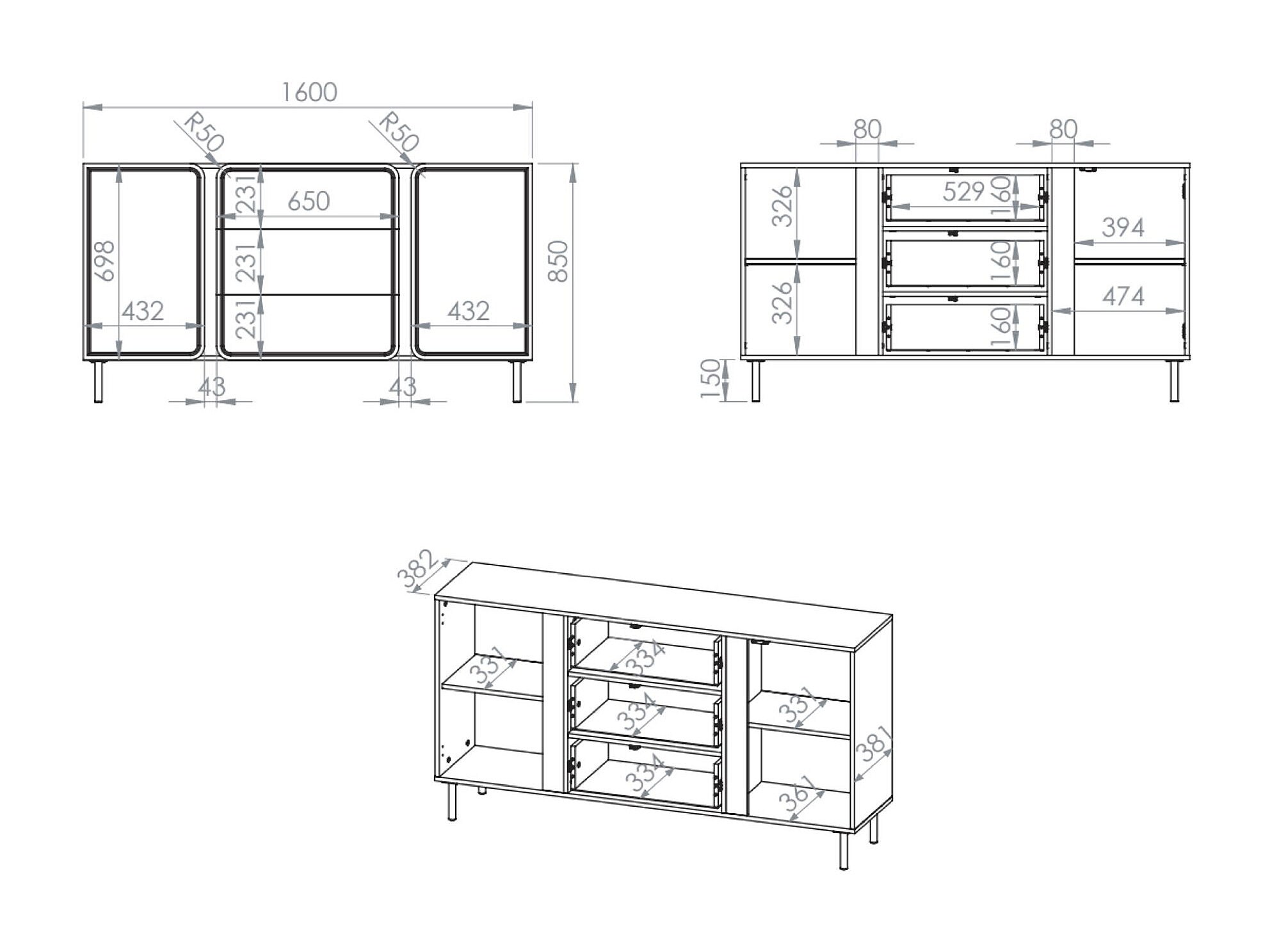 Buffet 2 portes avec 3 tiroirs - beige cachemire 160 cm - LOPPA