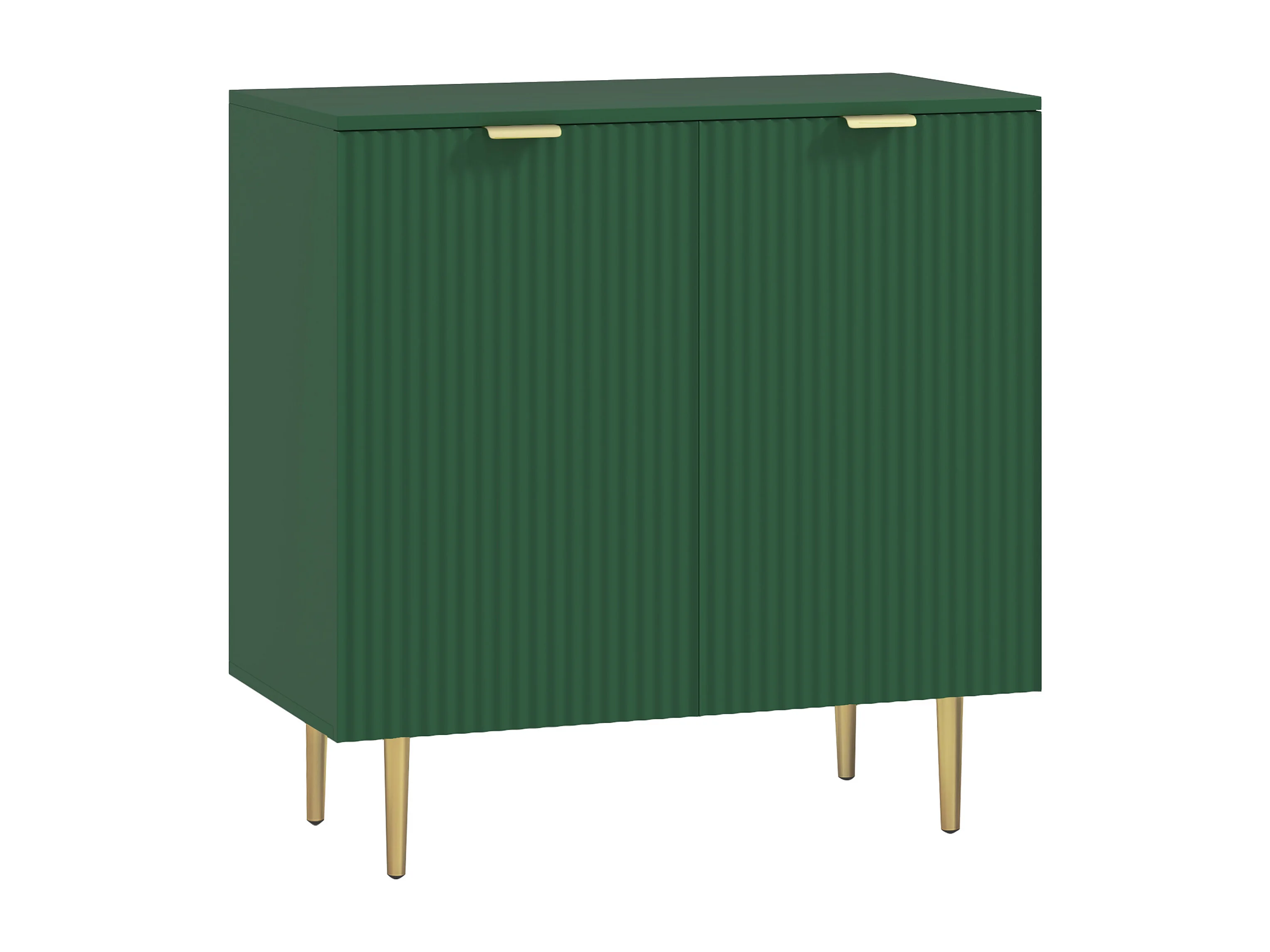 Buffet 2 portes étagère design effet cannelé piètement poignées métal doré vert