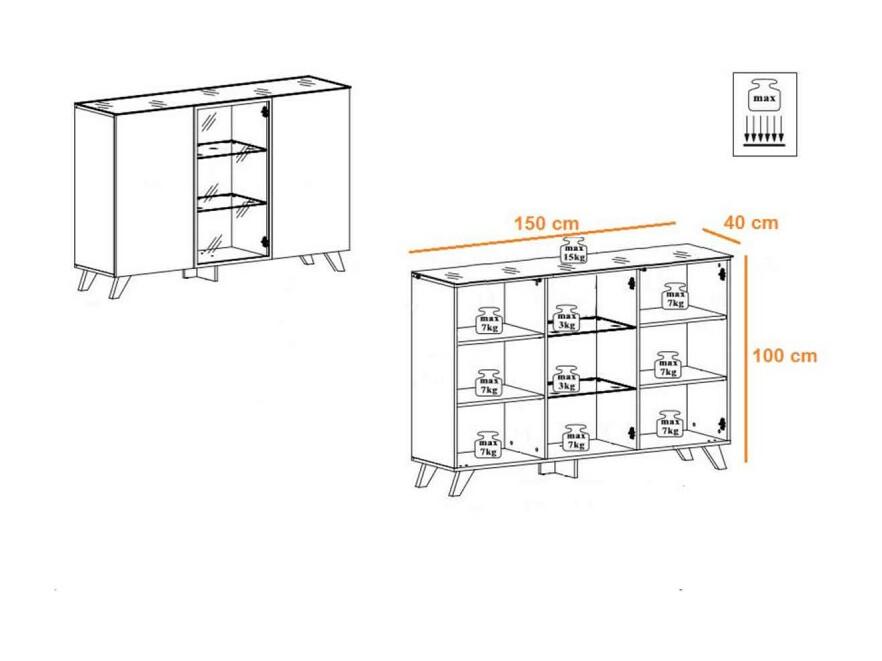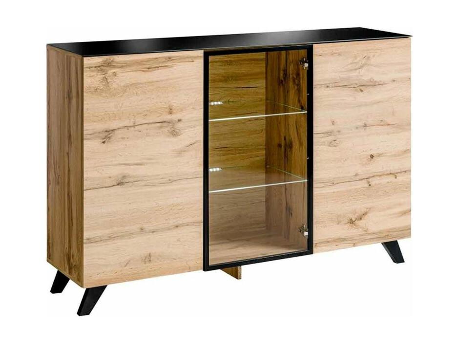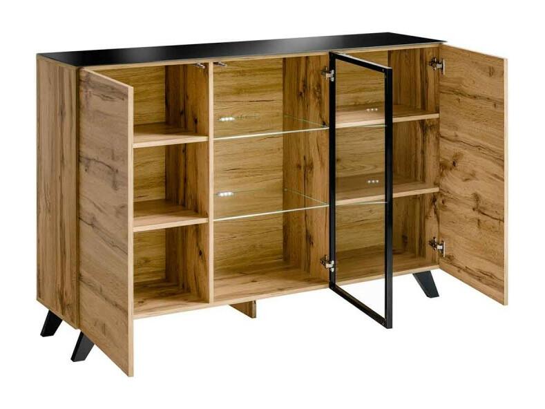 Buffet 3 Portes LED "Thin" 150cm Noir & Naturel