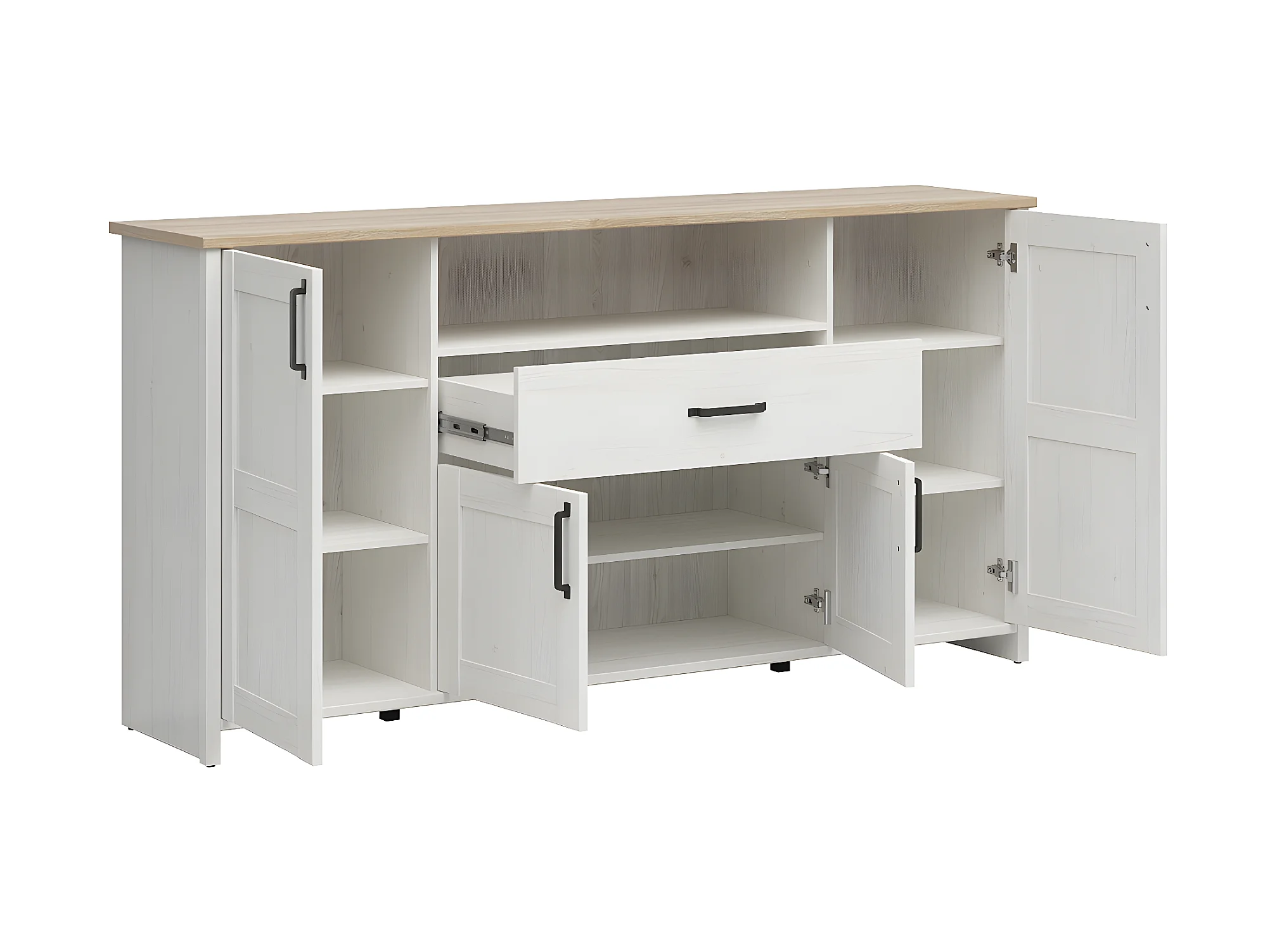 Buffet 4 portes 1 tiroir Aksel Blanc et Bois