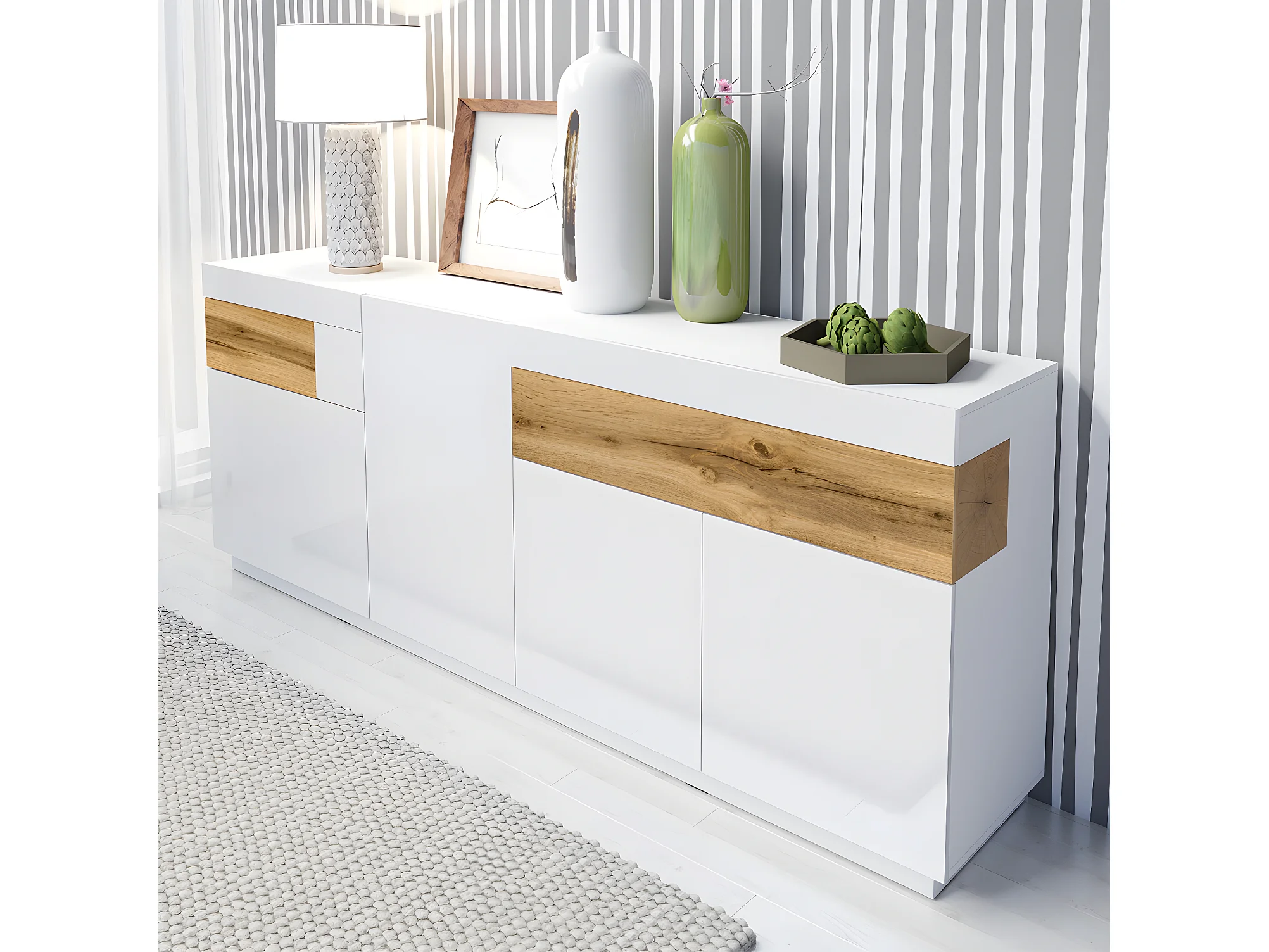 Buffet 4 portes 2 tiroirs Andrea Blanc et Bois