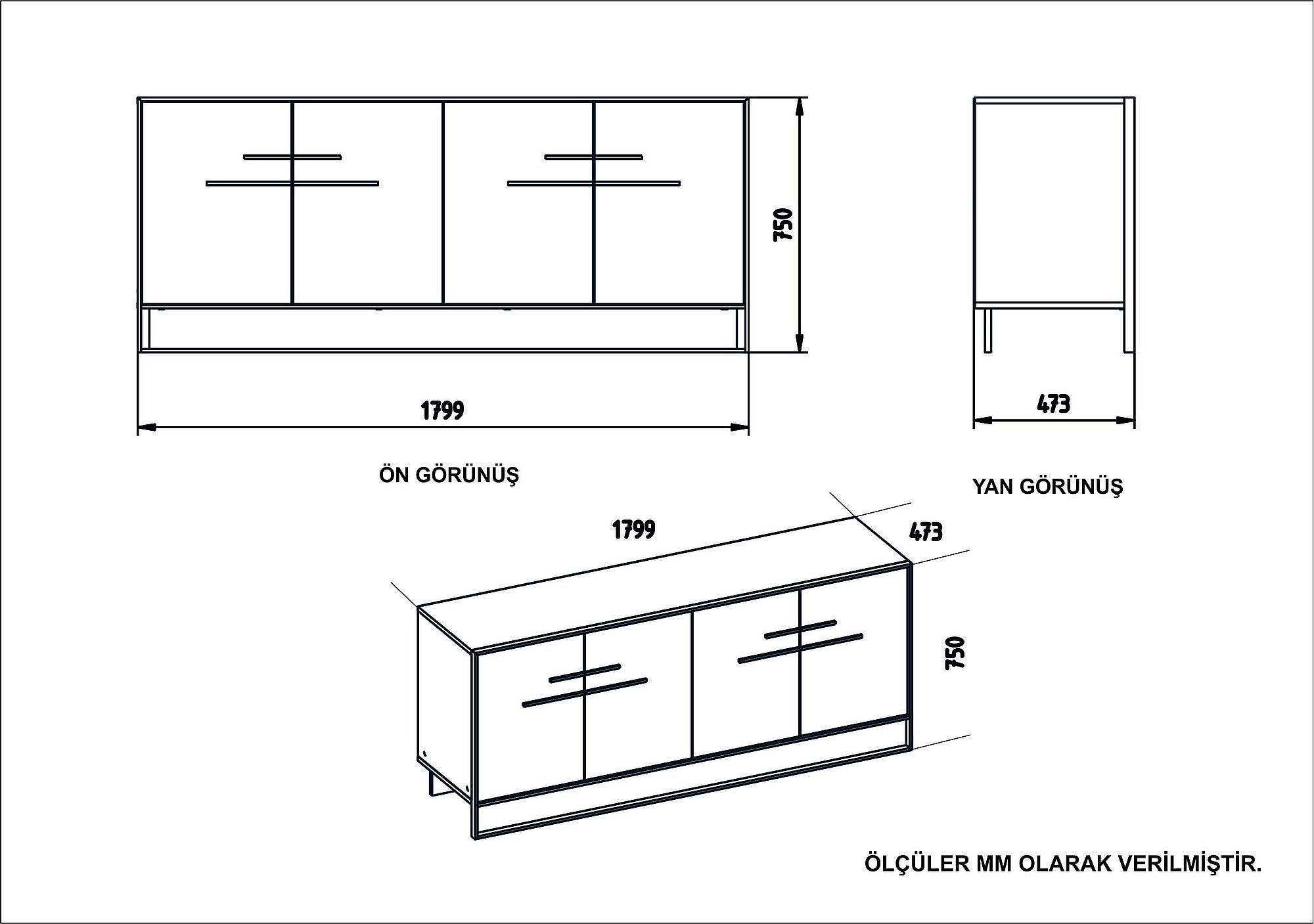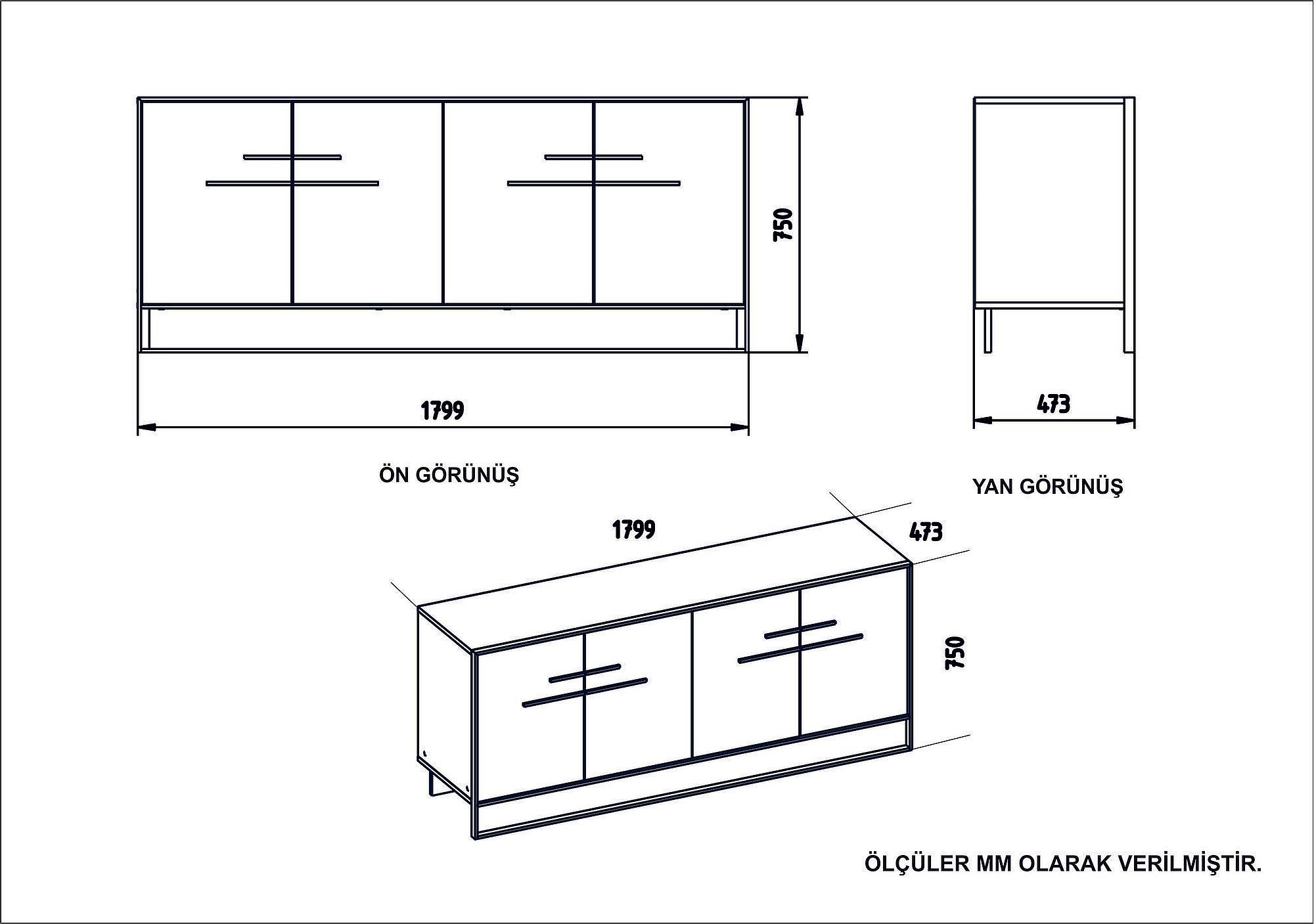 Buffet 4 portes Anita 179,9x75cm Métal Or et Bois Blanc effet marbre