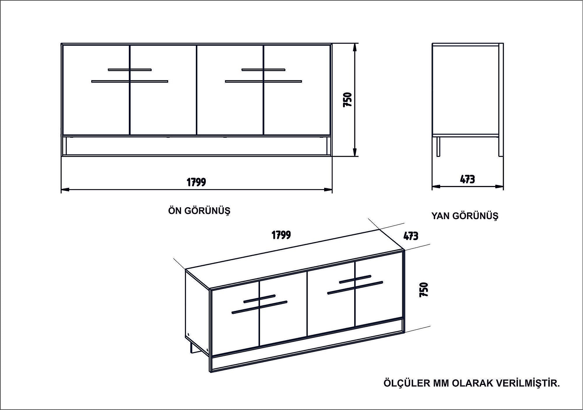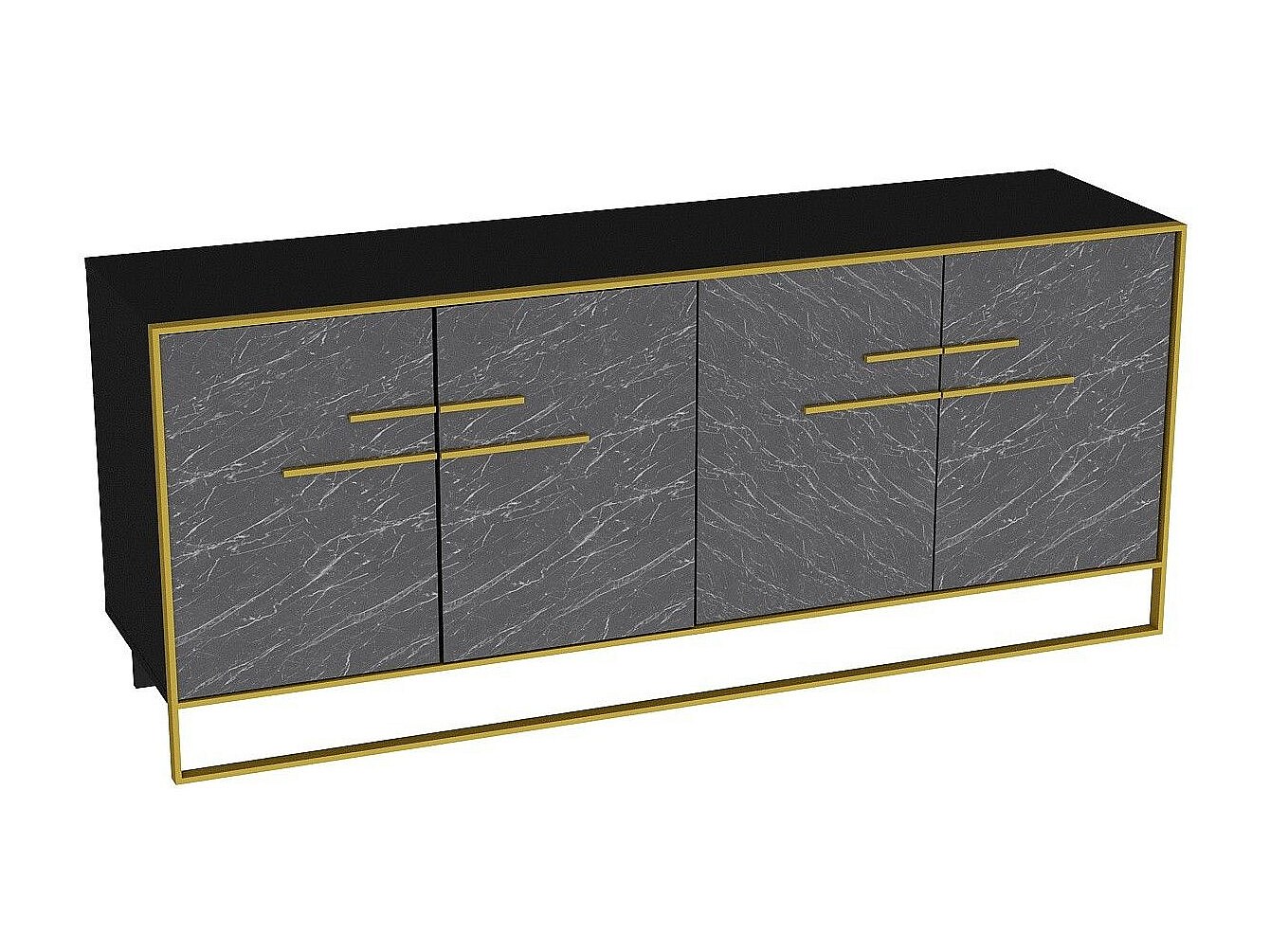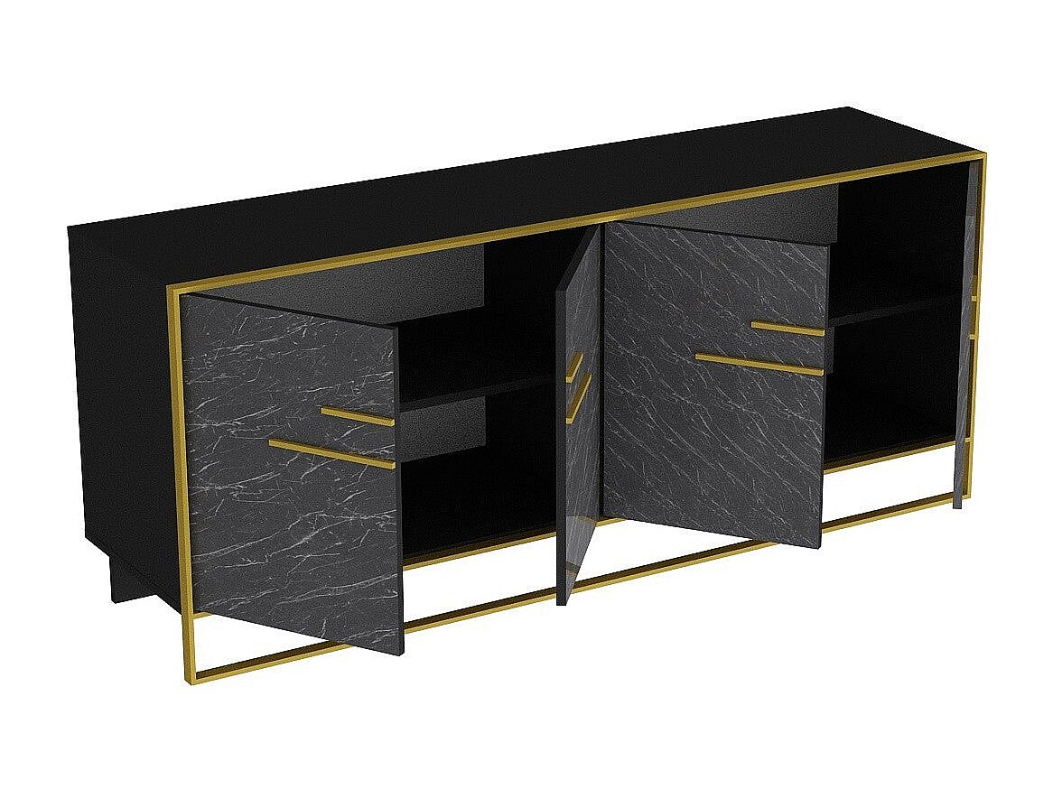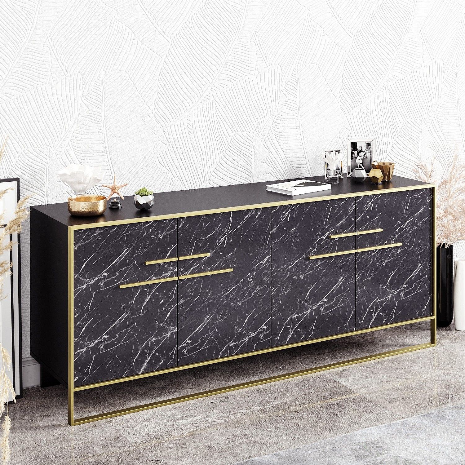 Buffet 4 portes Anita 179,9x75cm Métal Or et Bois Noir effet marbre