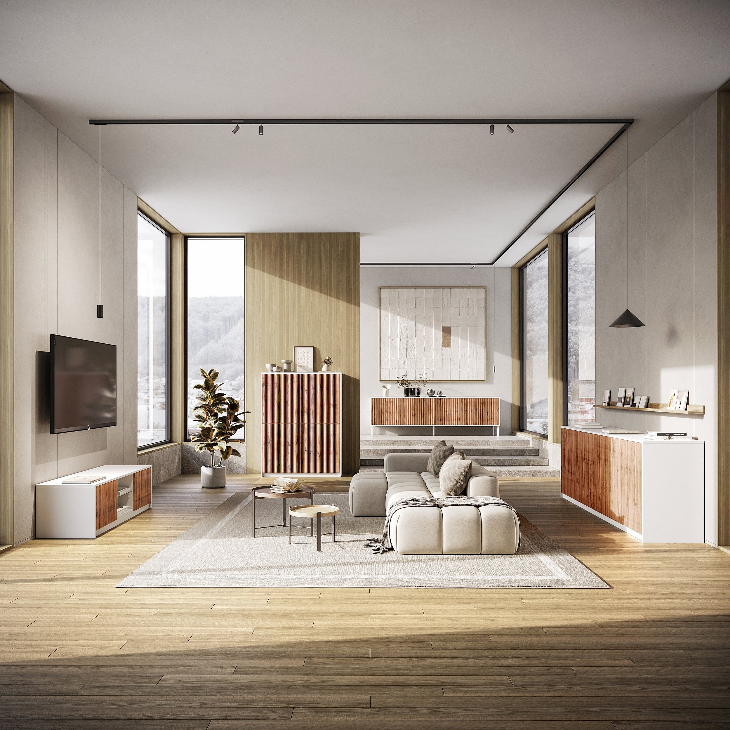 Buffet 4 portes BUDAPEST-S blanc/chêne