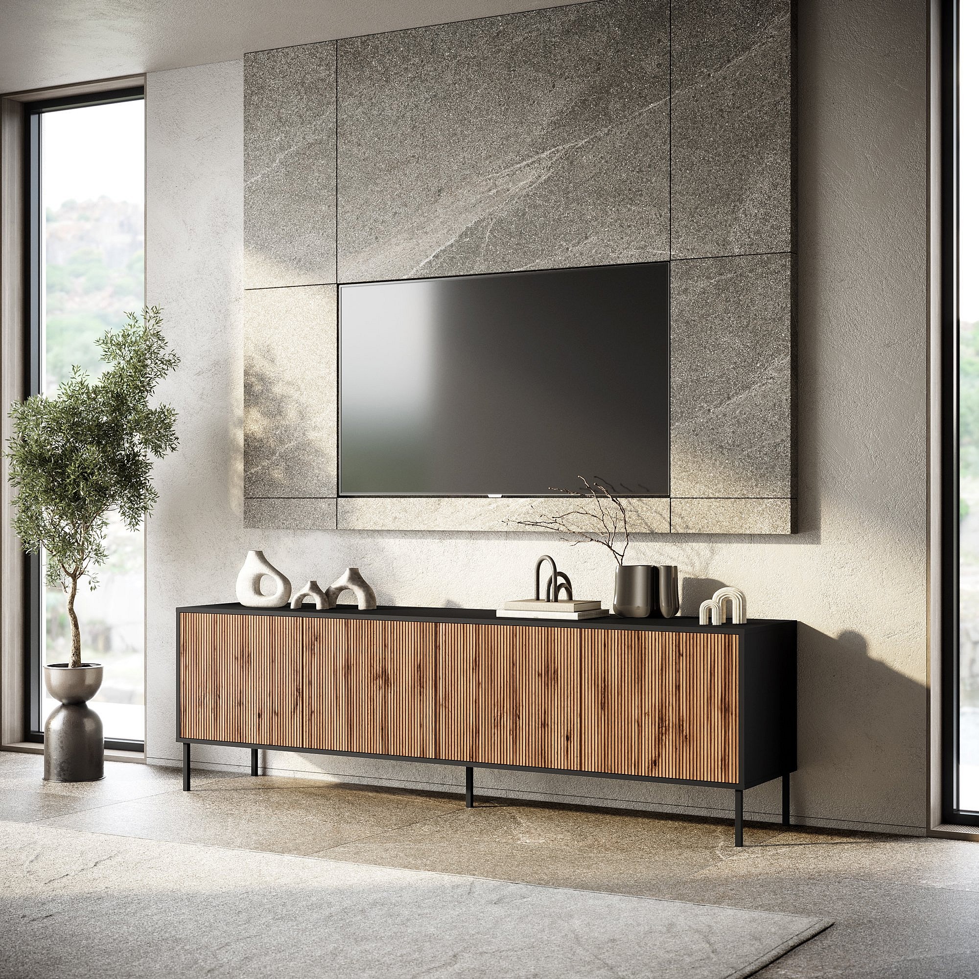 Buffet 4 portes BUDAPEST-S noir/chêne