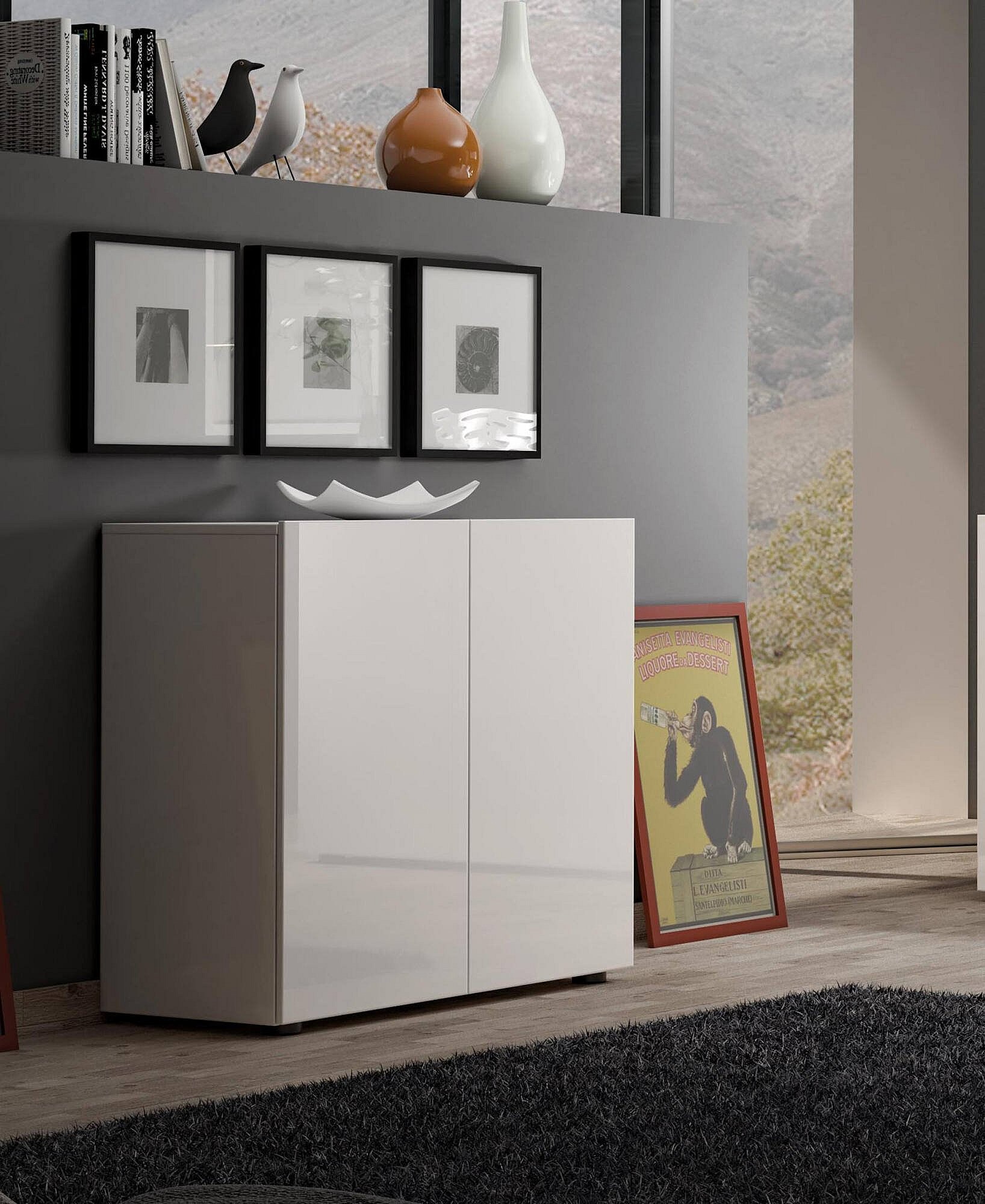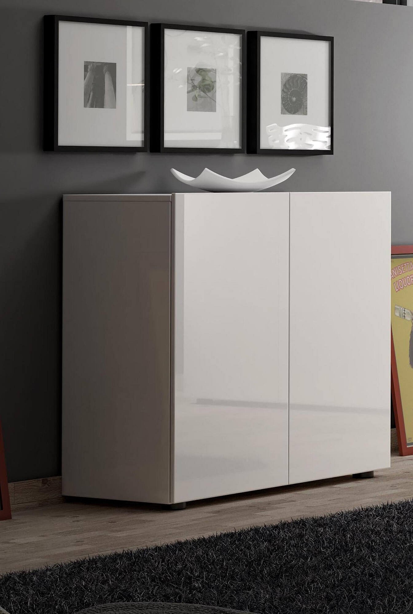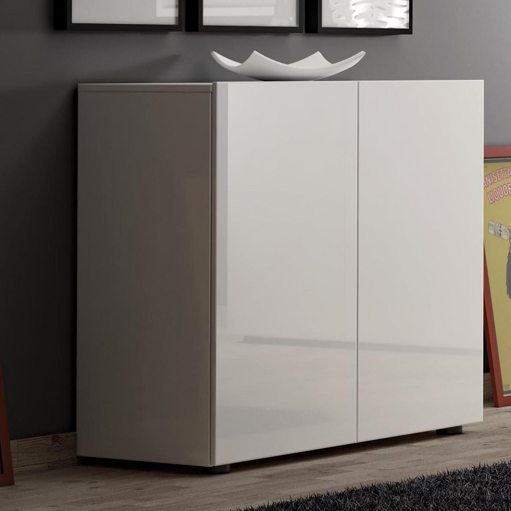 Buffet Abeba, Buffet du salon, Commode de salon, Garde-manger de cuisine, Made in Italy, 90x38h79 cm, Blanc brillant