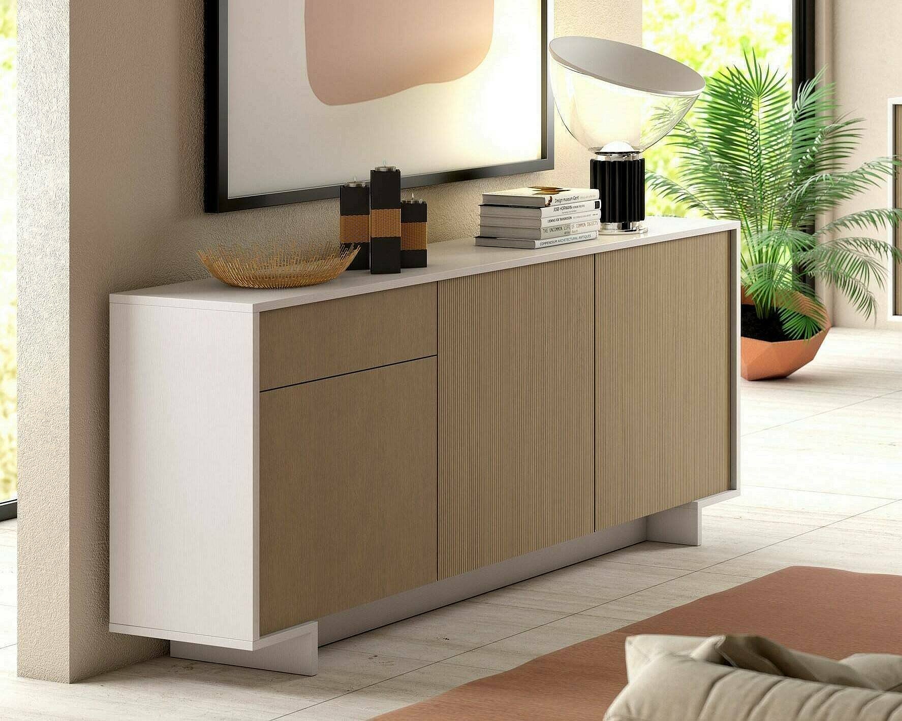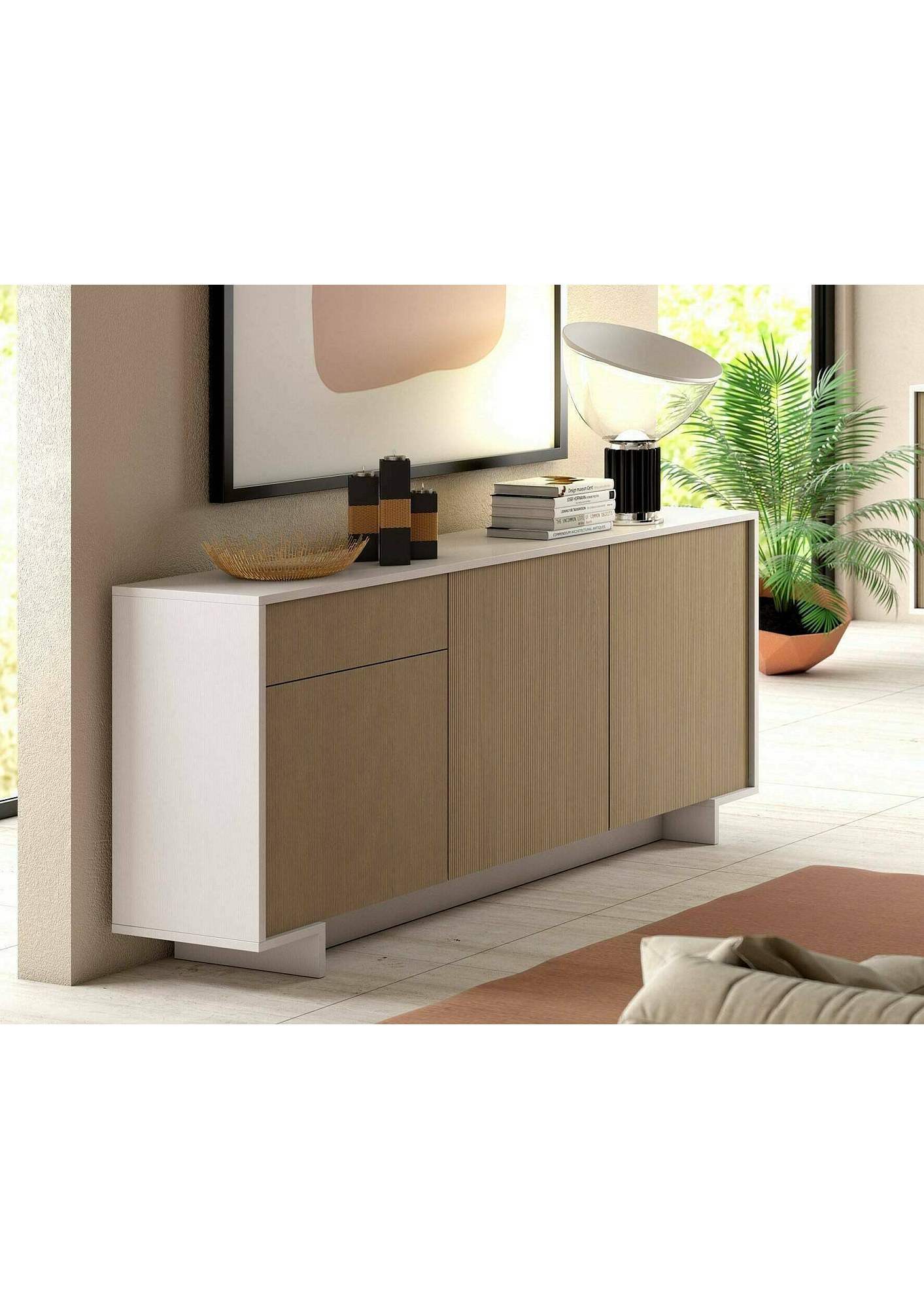 Buffet Agrifoglio, Buffet de salon, Buffet de salon avec 3 portes et 1 tiroir, 100% Made in Italy, 170x42h78 cm, Blanc et Chêne