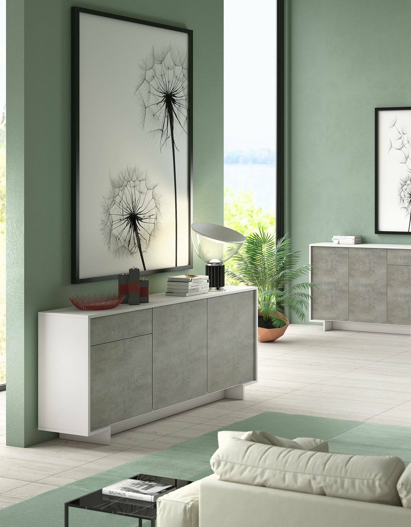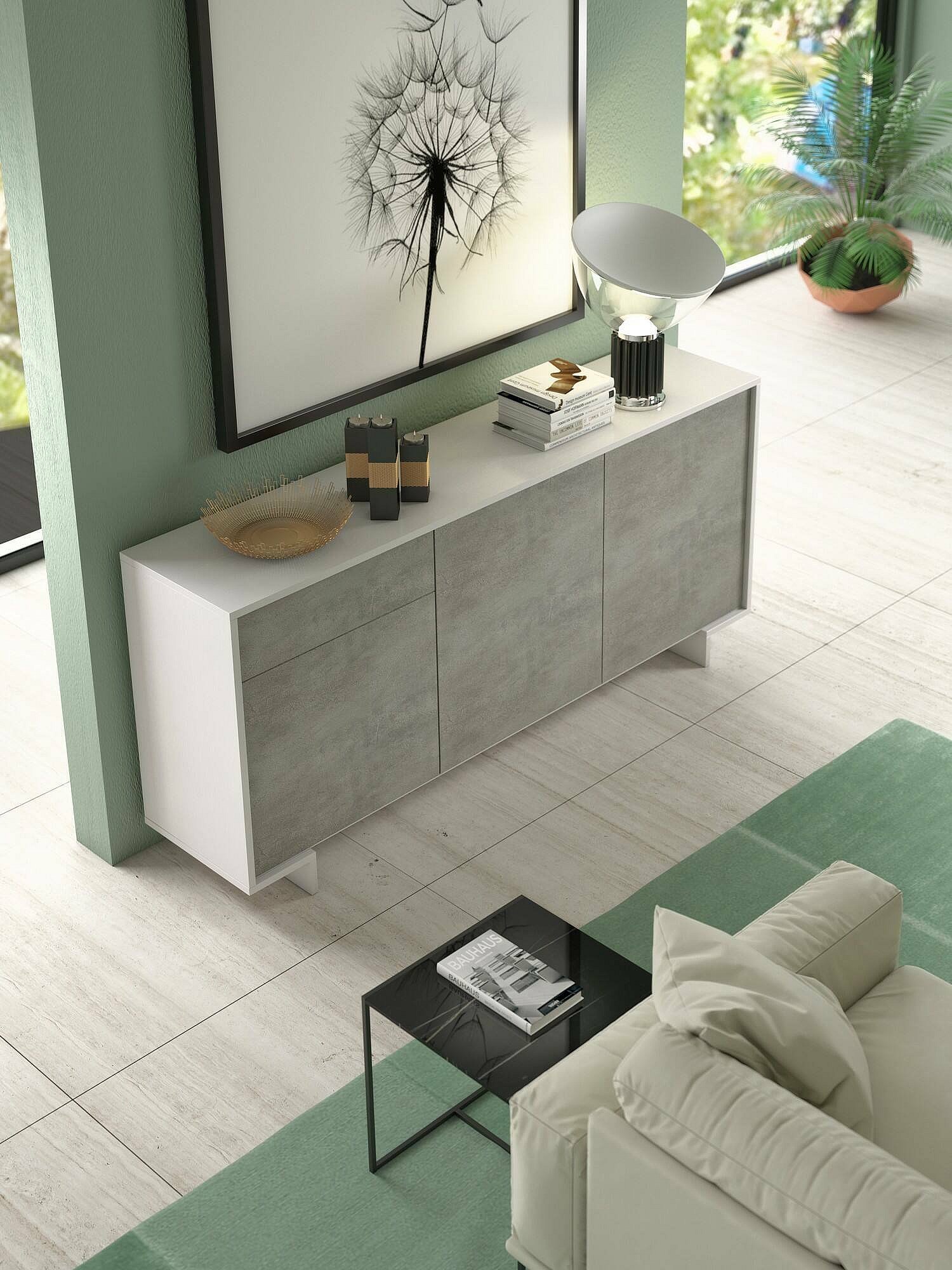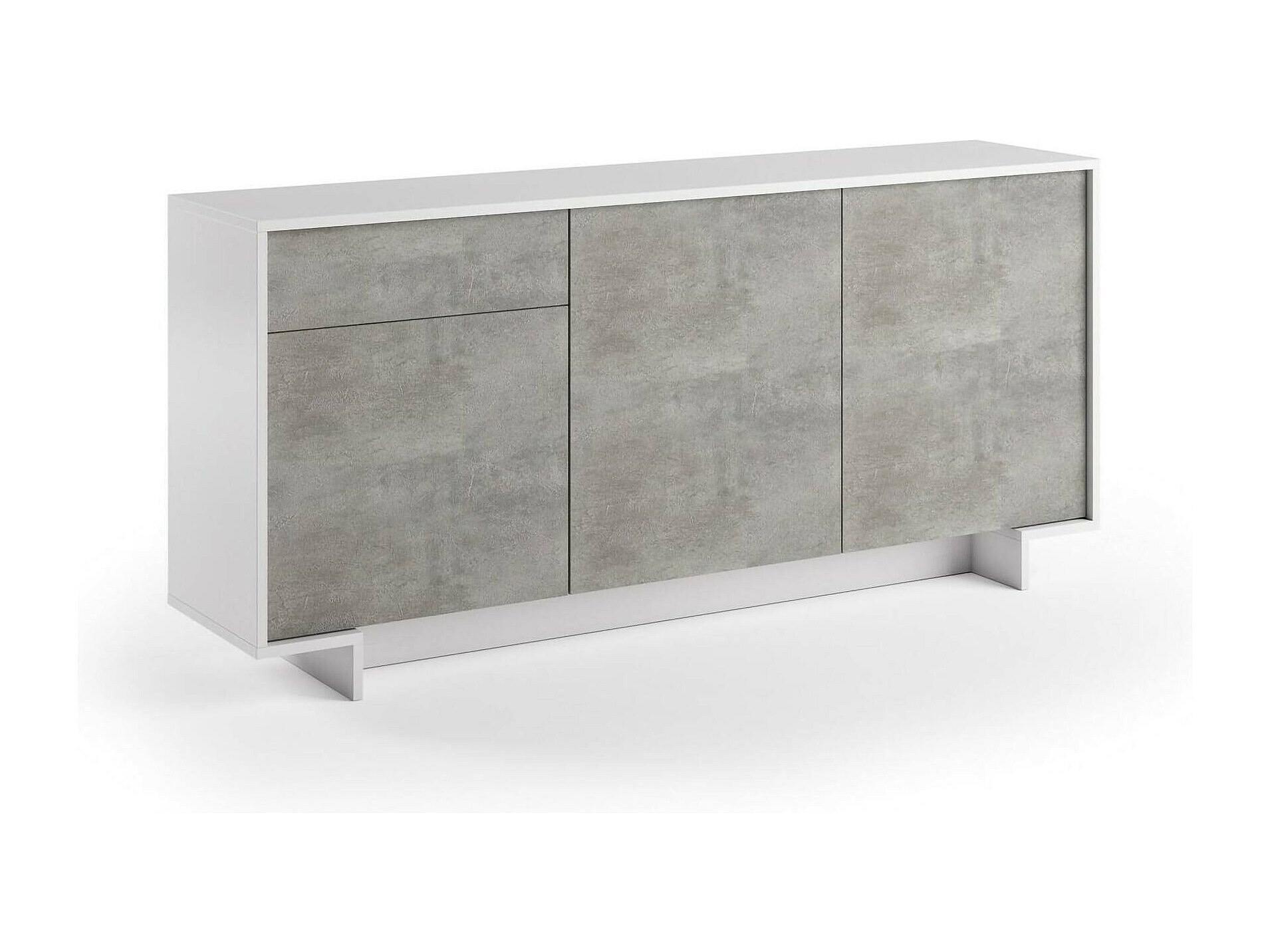 Buffet Agrifoglio, Buffet de salon, Buffet de salon avec 3 portes et 1 tiroir, 100% Made in Italy, 170x42h78 cm, Blanc et Ciment