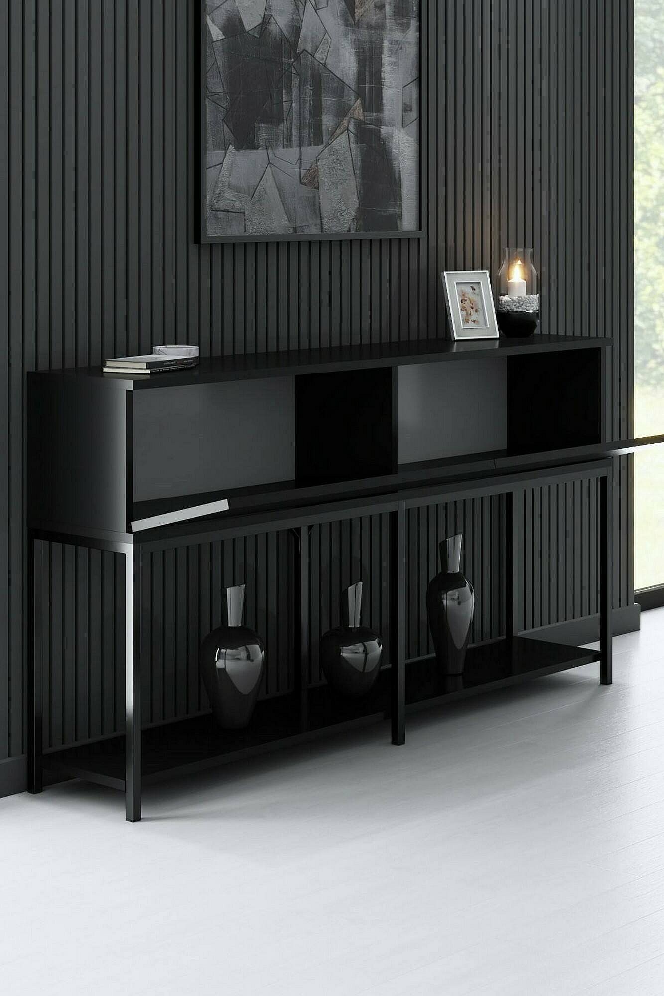 Buffet Altair, Buffet du salon, Commode de salon, Garde-manger de cuisine, 150x30h80 cm, Noir