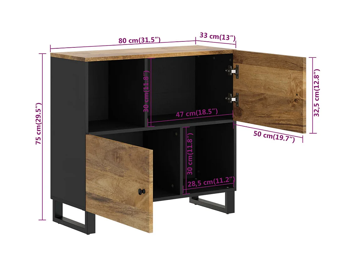 Buffet avec 2 portes 80x33x75 cm bois massif de manguier