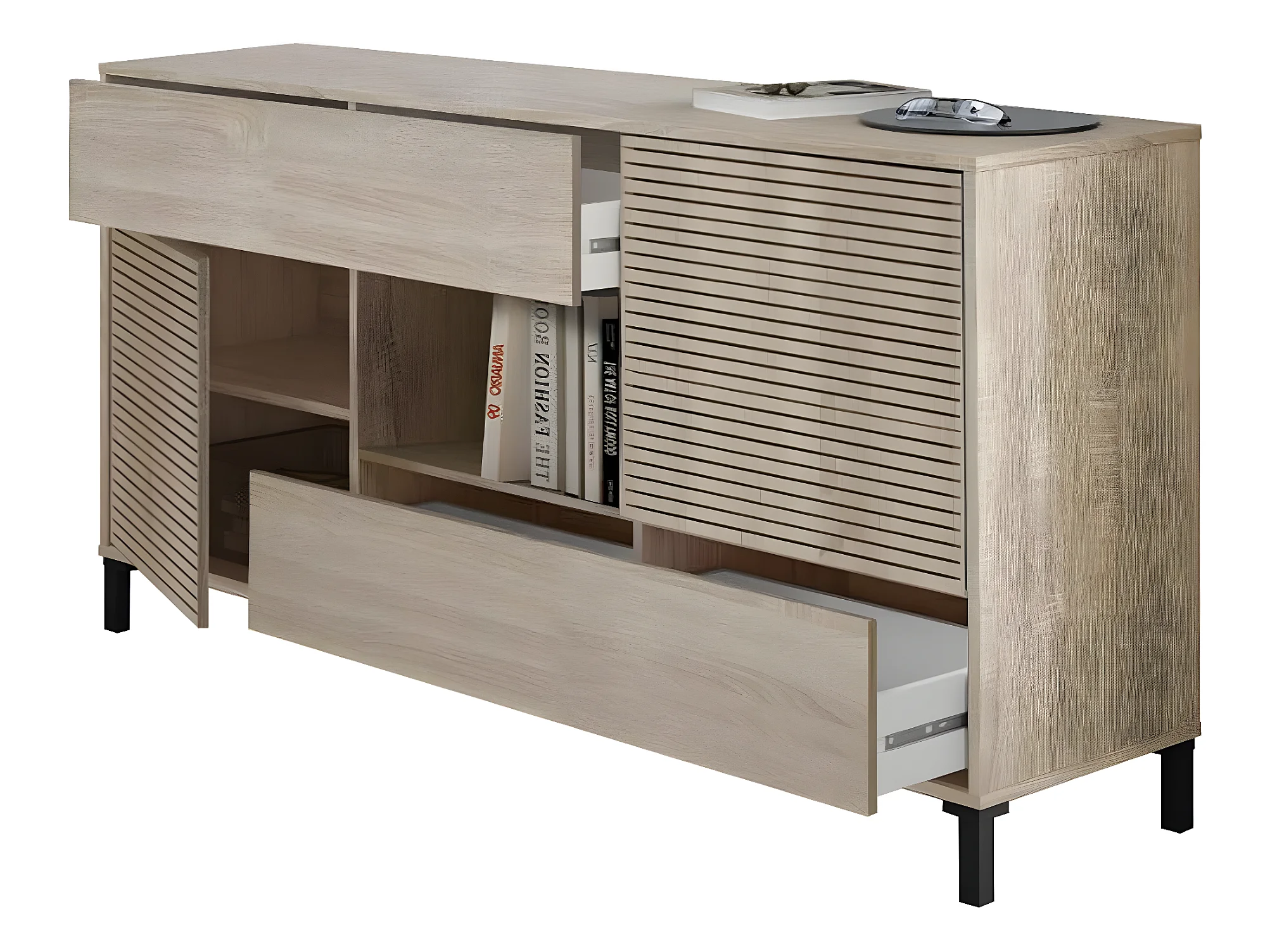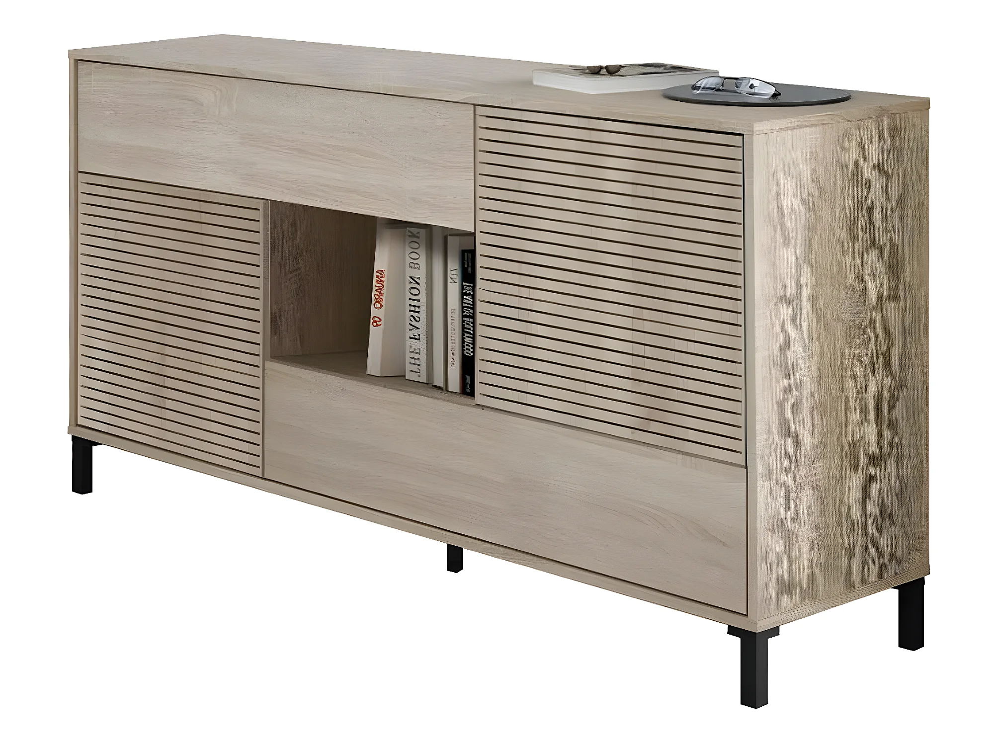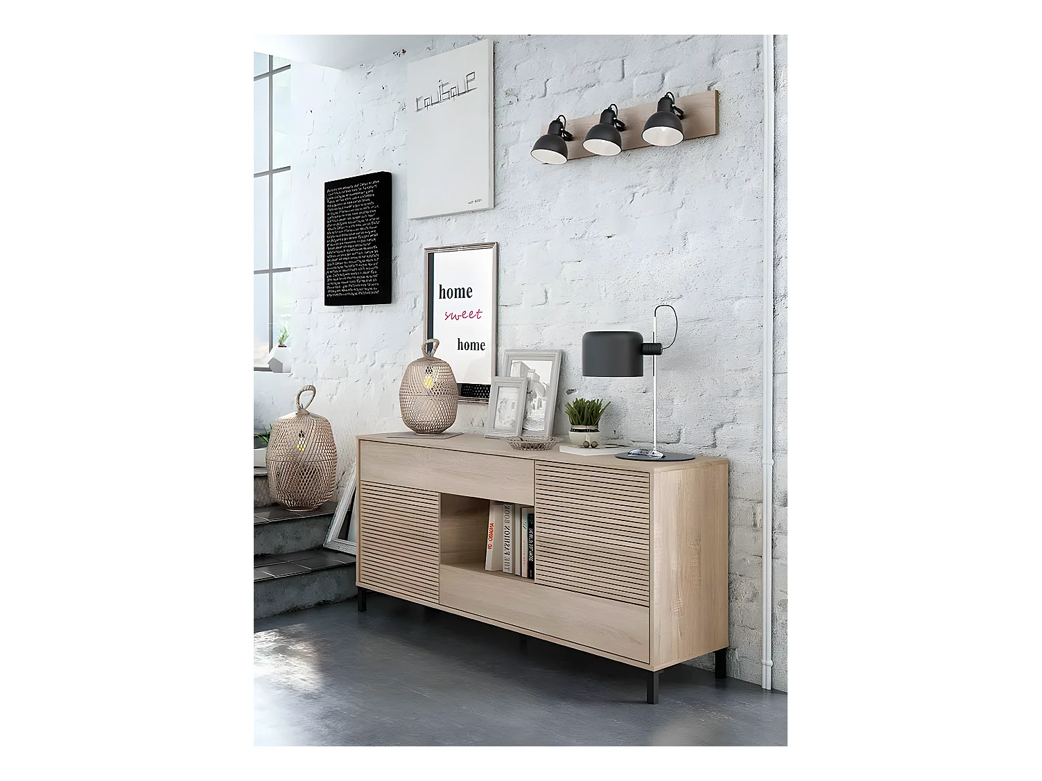 Buffet avec 2 portes et 2 tiroirs coloris chêne canadien / impression digitale - Hauteur 80 x Longueur 151 x Profondeur 41 cm