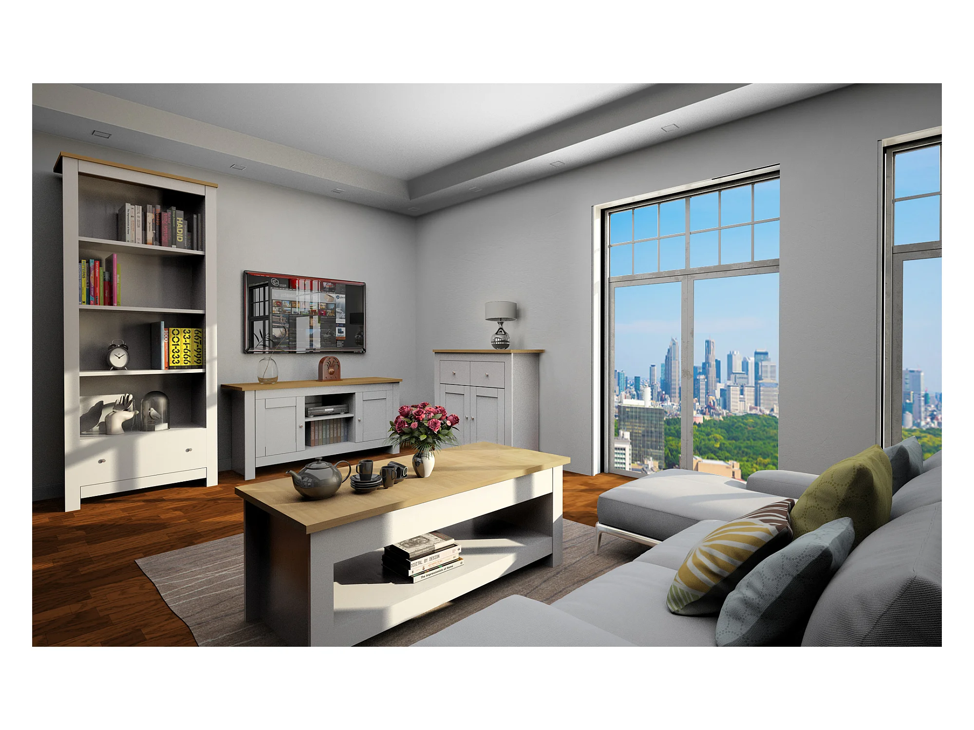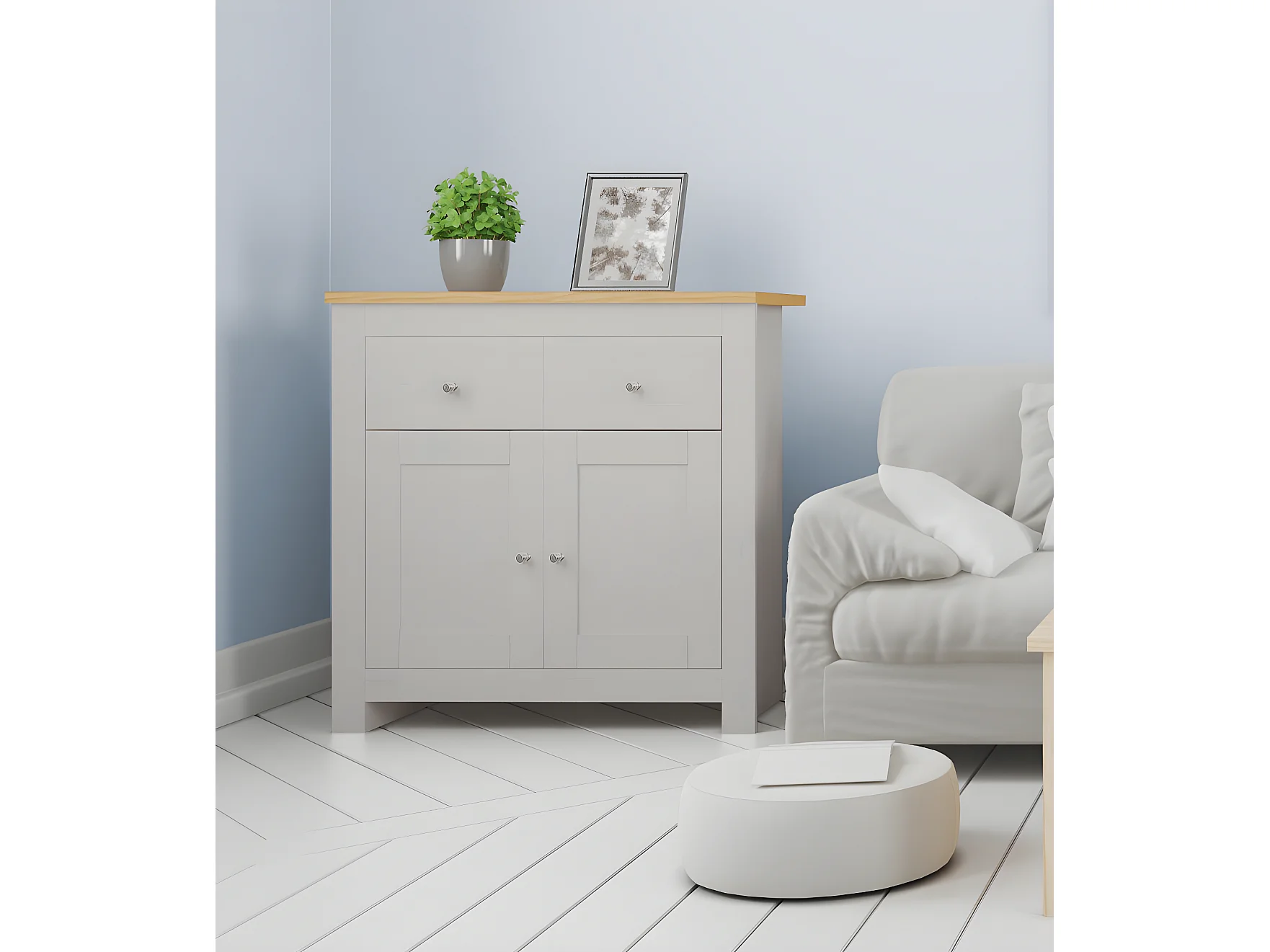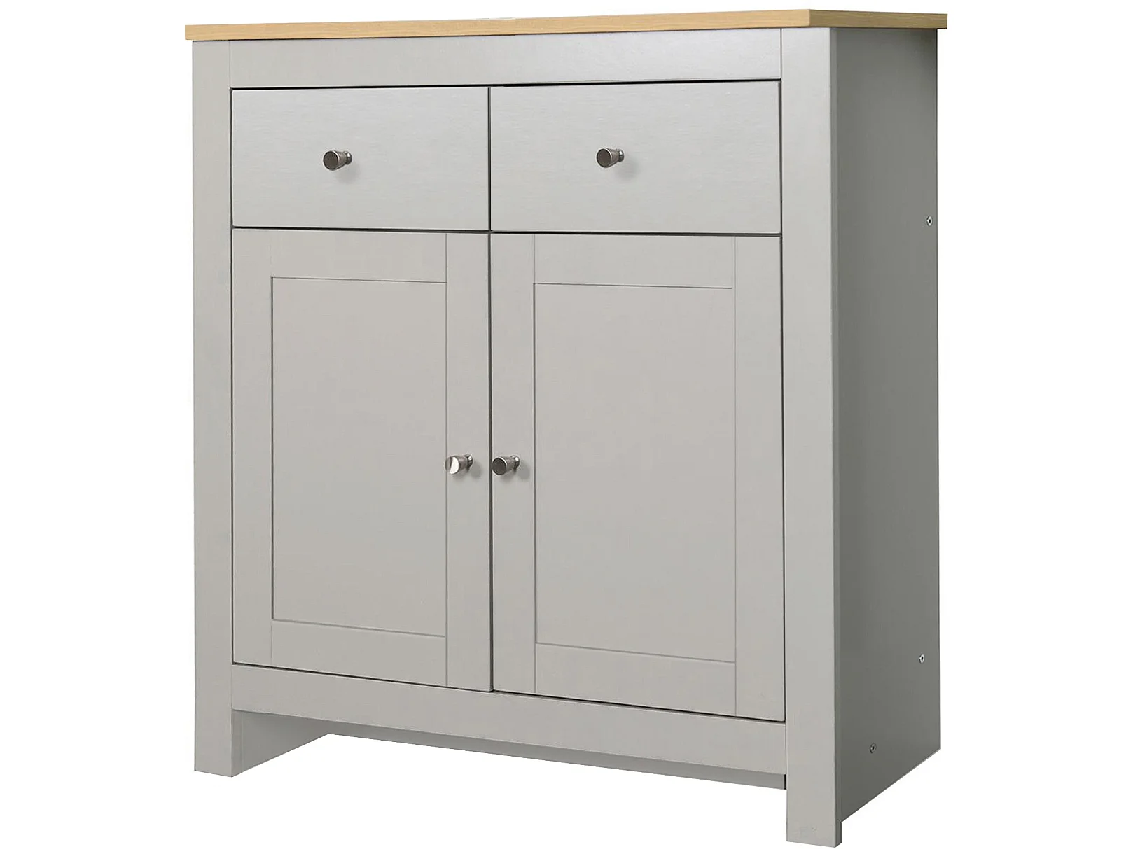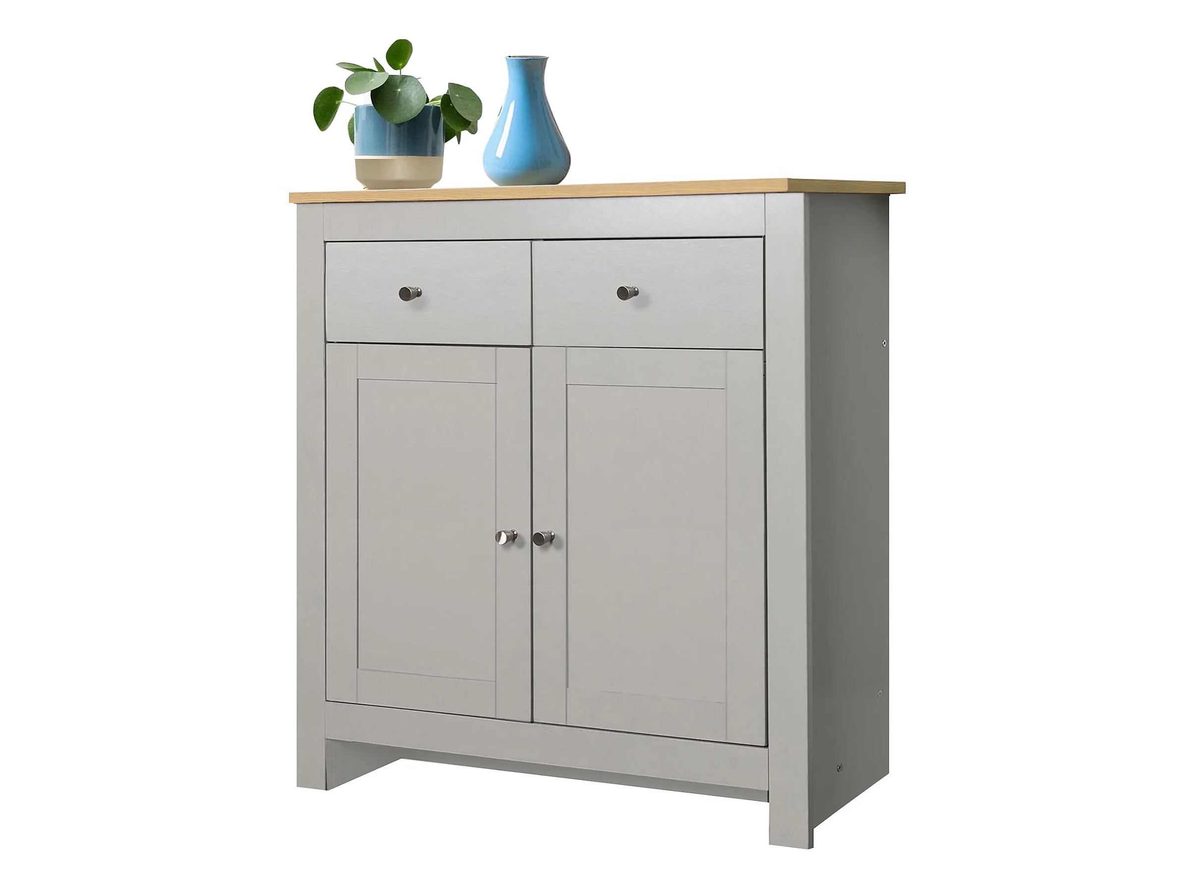 Emerald | Buffet avec 2 portes et 2 tiroirs en MDF chêne et gris