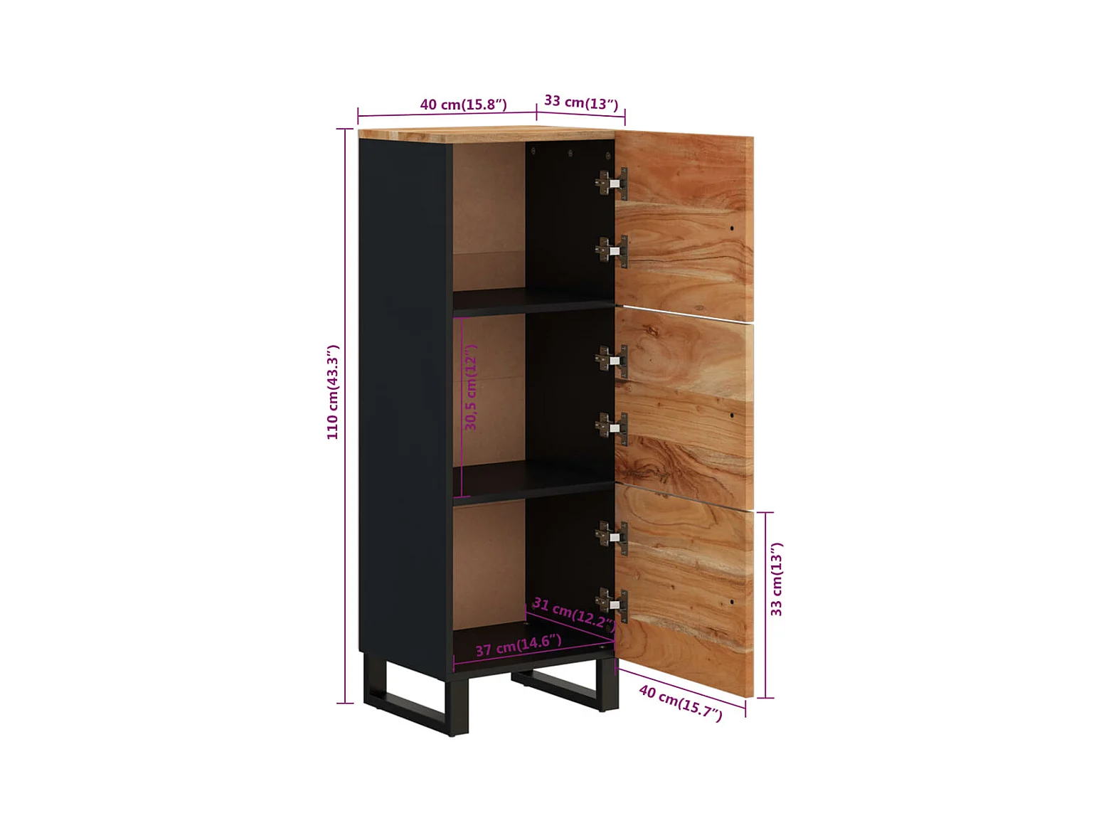 Buffet avec 3 portes 40x33x110 cm bois massif d'acacia et fer