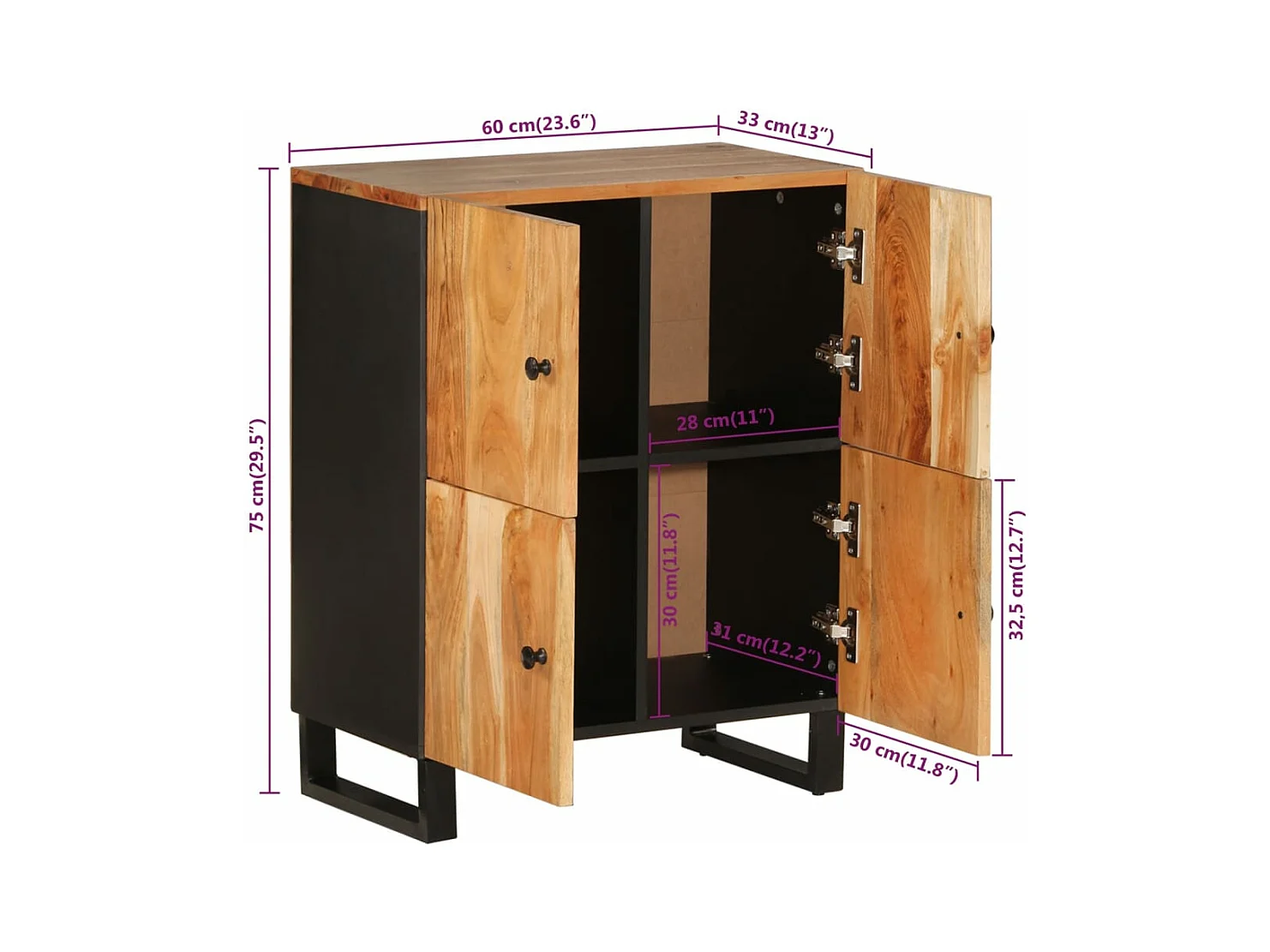 Buffet avec 4 portes 60x33x75 cm bois massif d'acacia