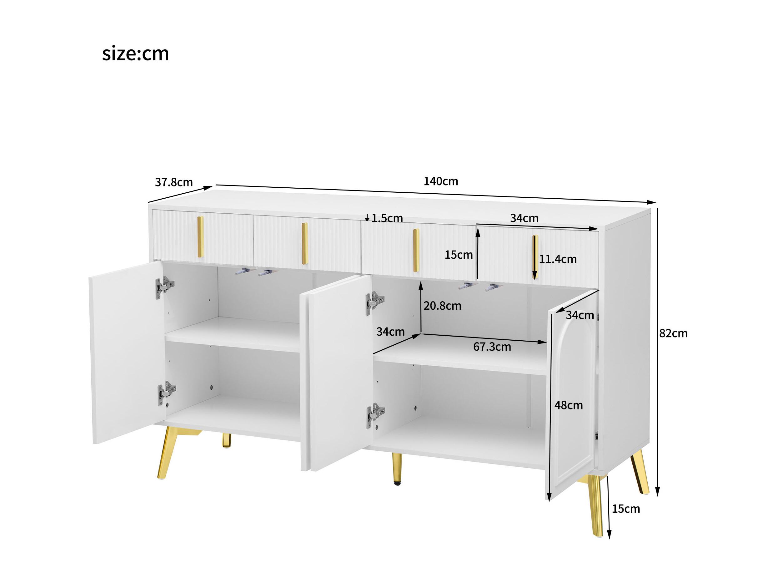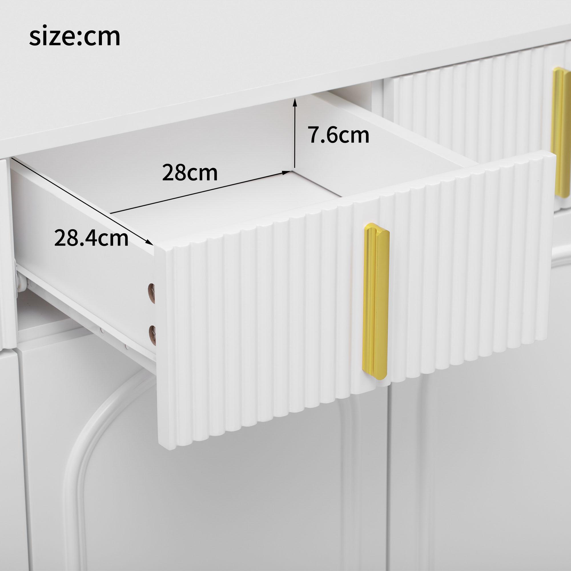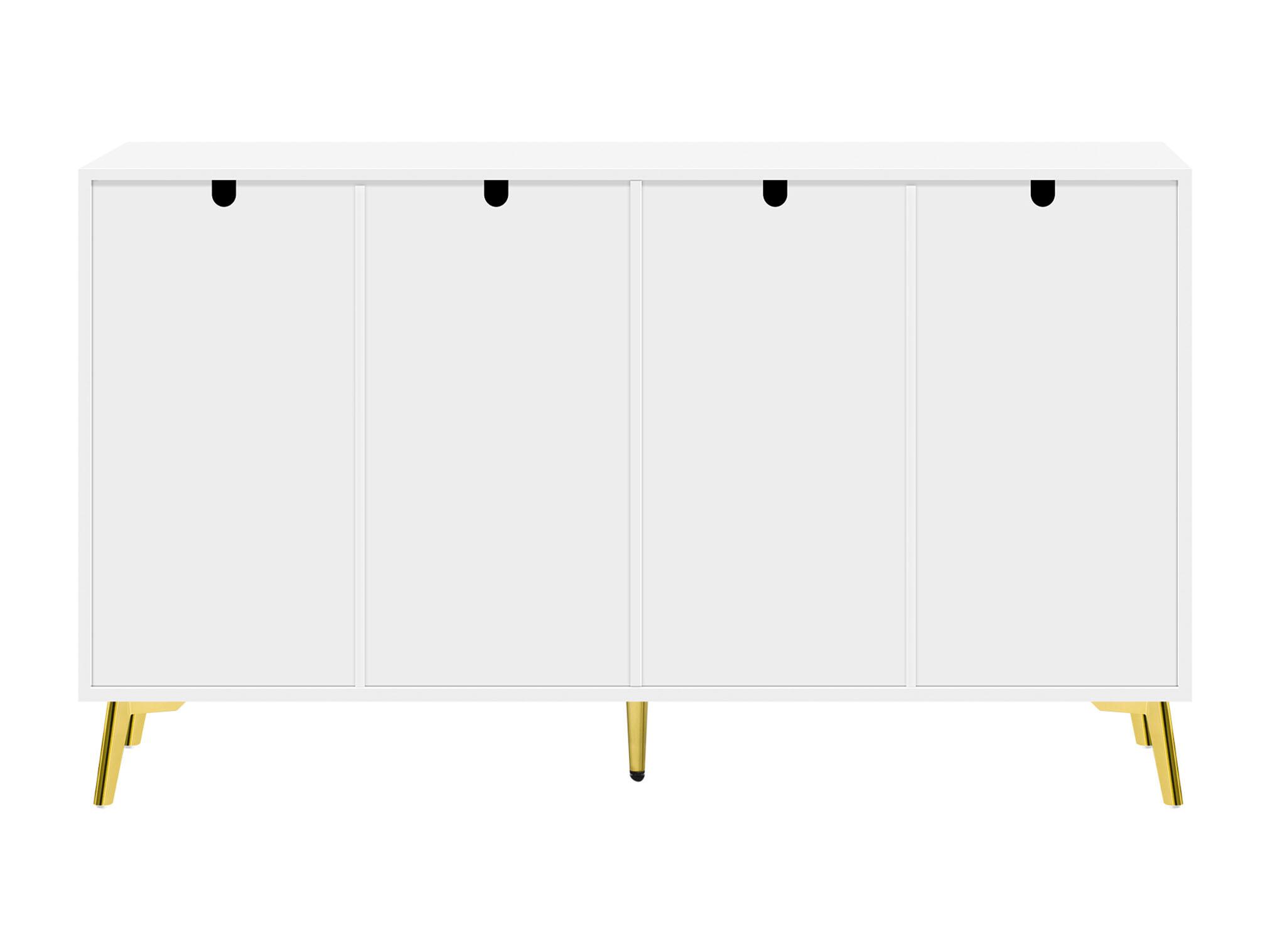 Buffet avec 4 tiroirs et 4 portes, armoire de buffet, avec poignées et pieds dorés, Blanc