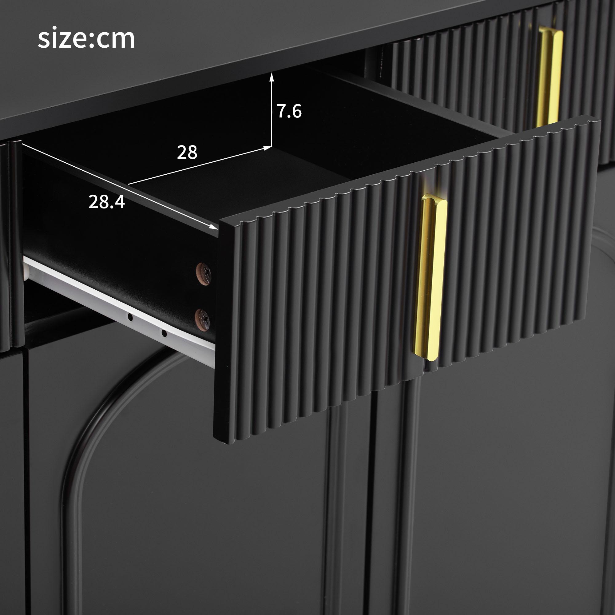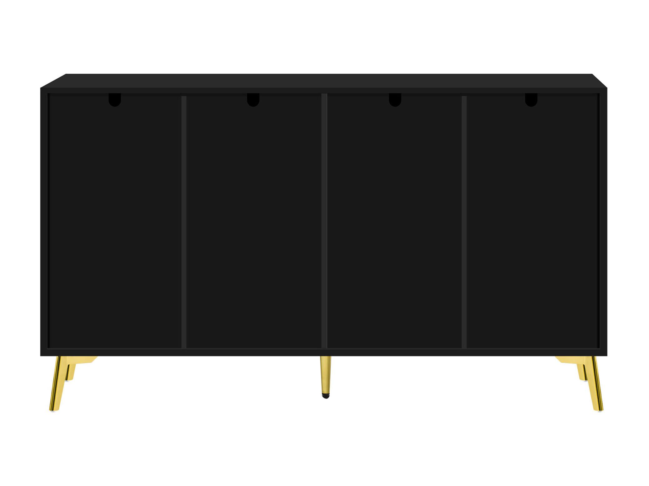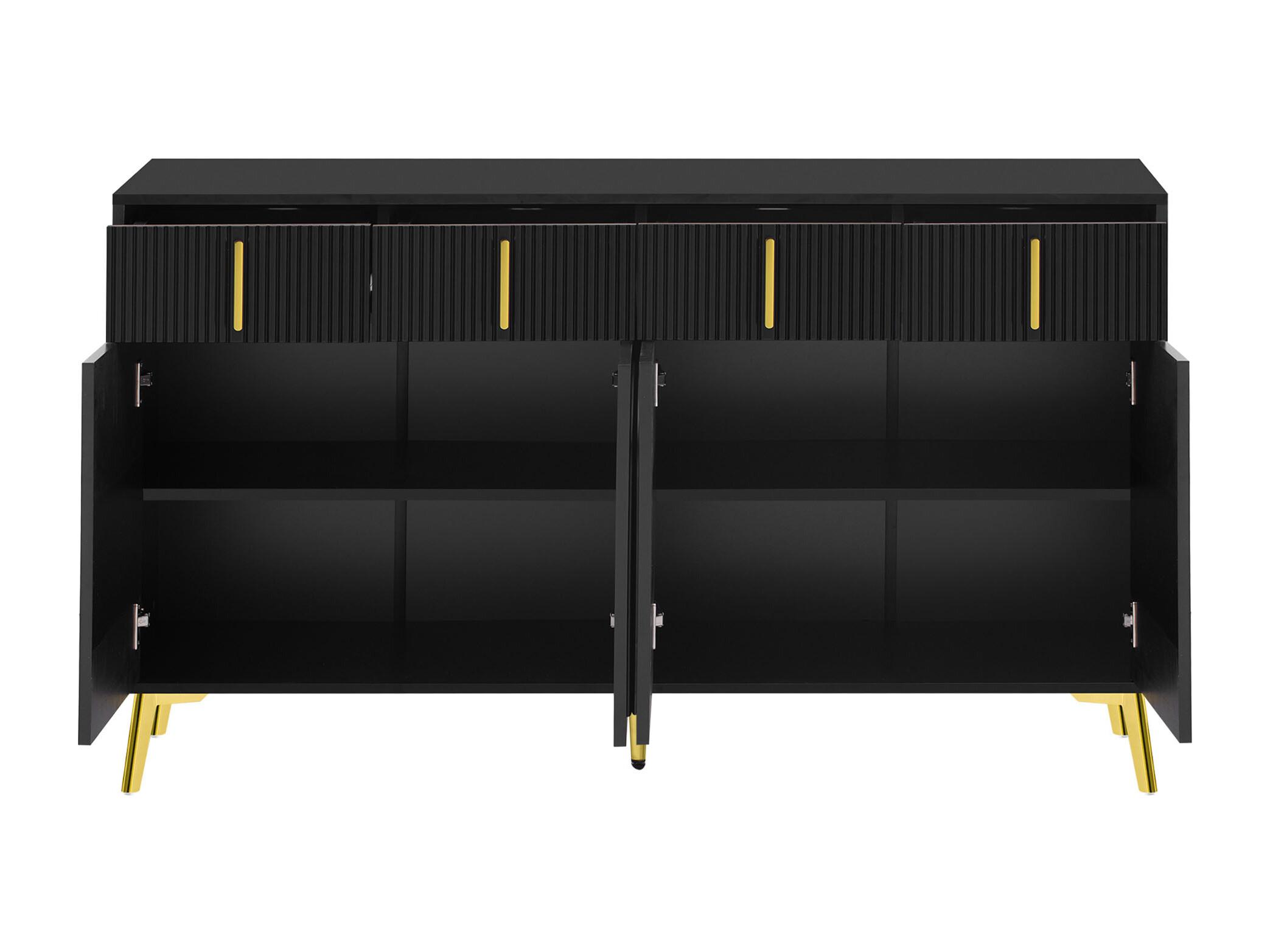 Buffet avec 4 tiroirs et 4 portes, armoire de buffet, avec poignées et pieds dorés, noir
