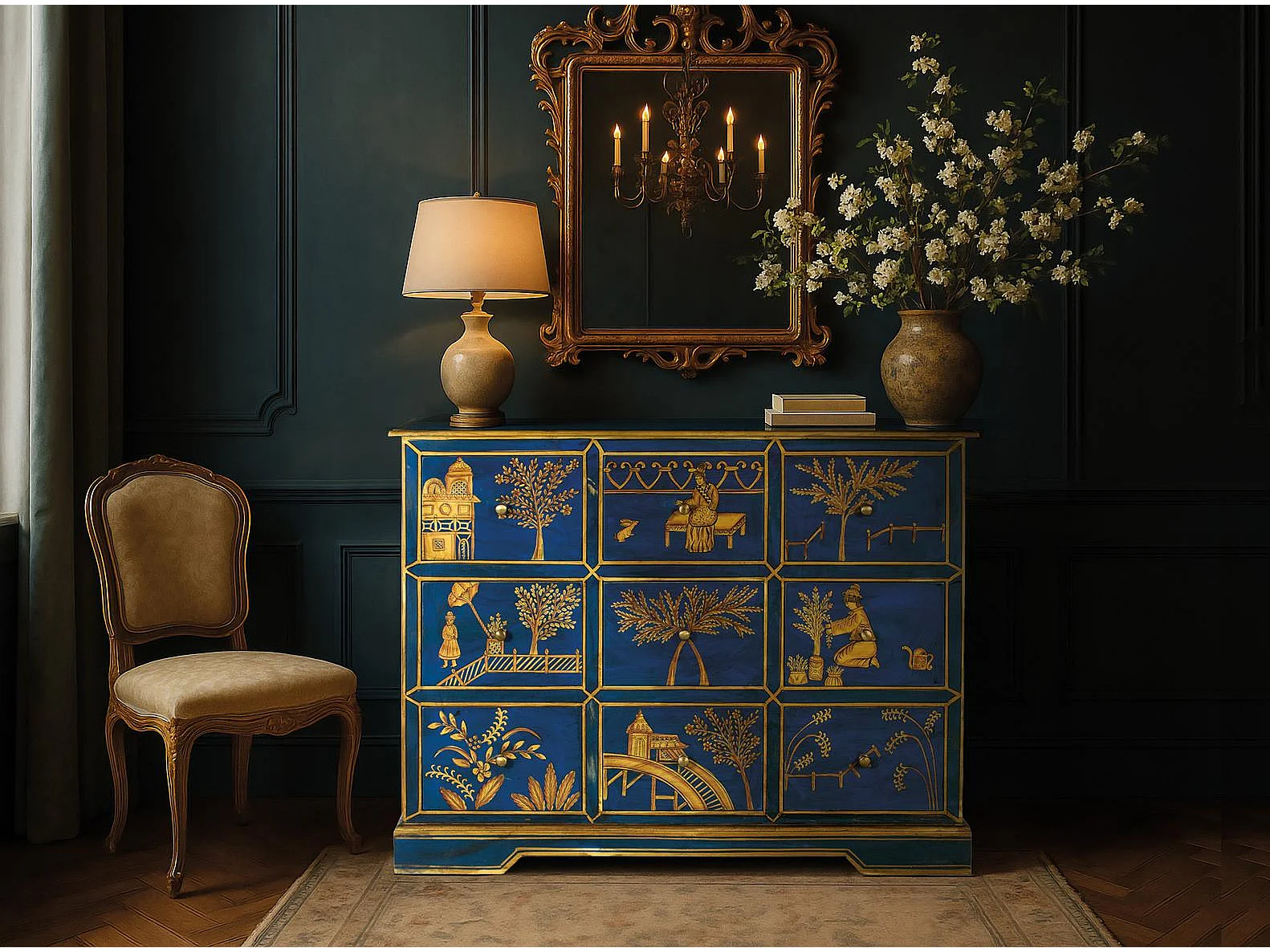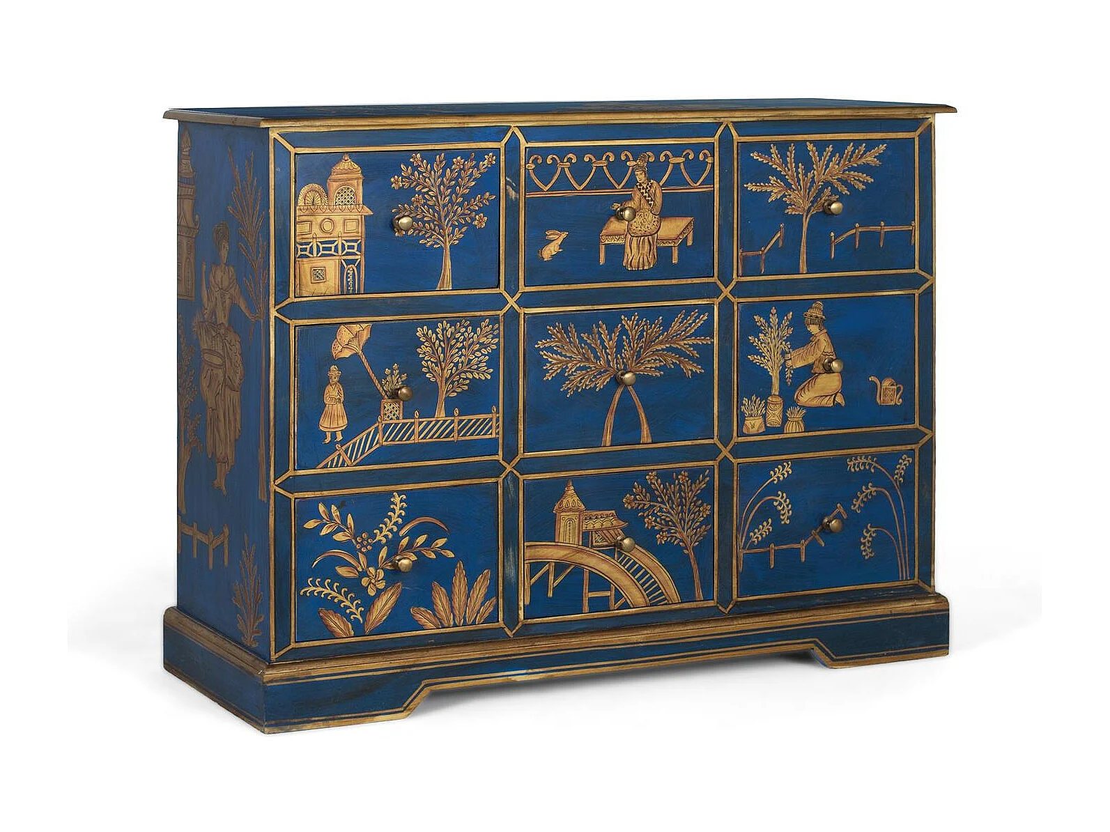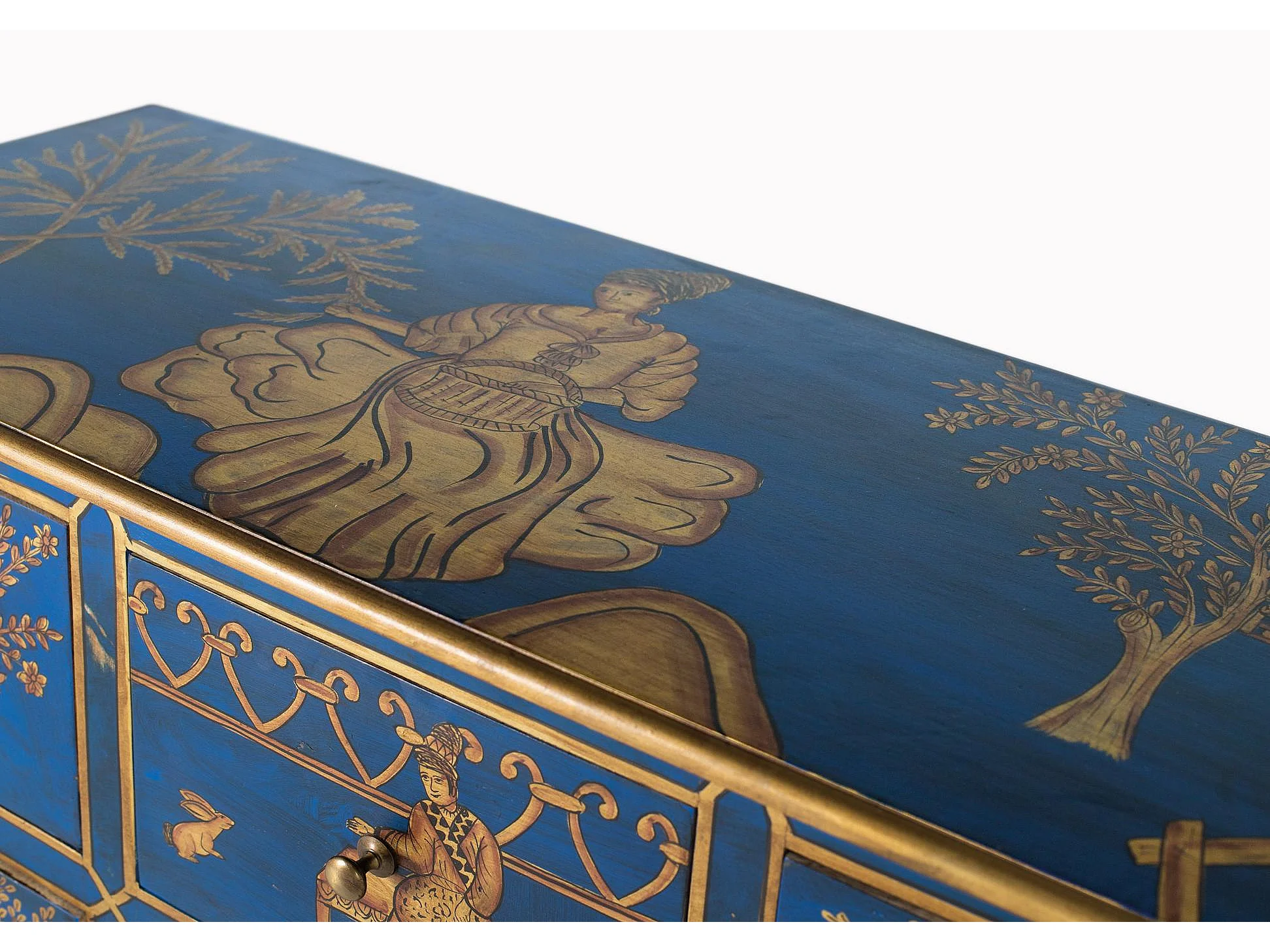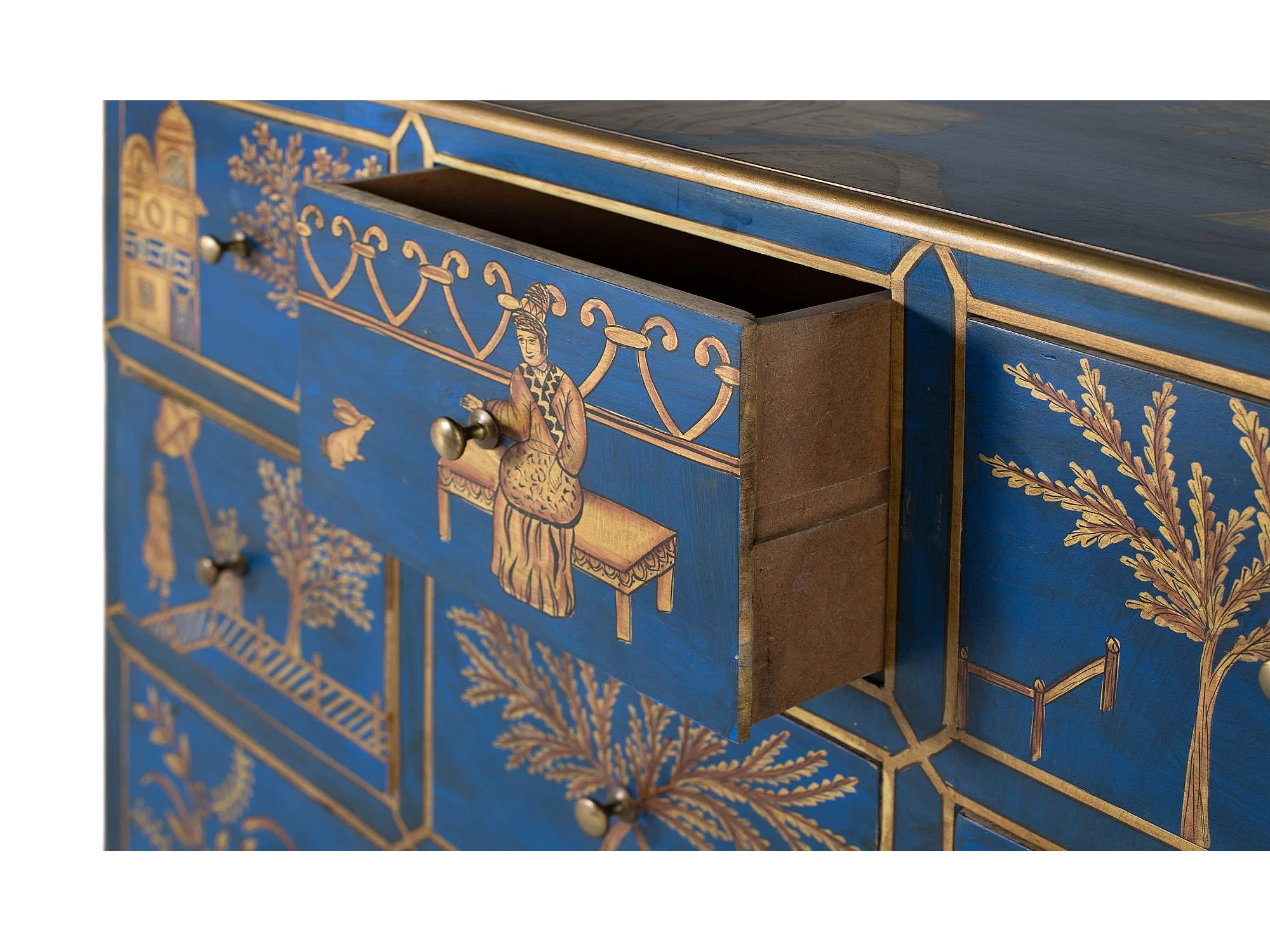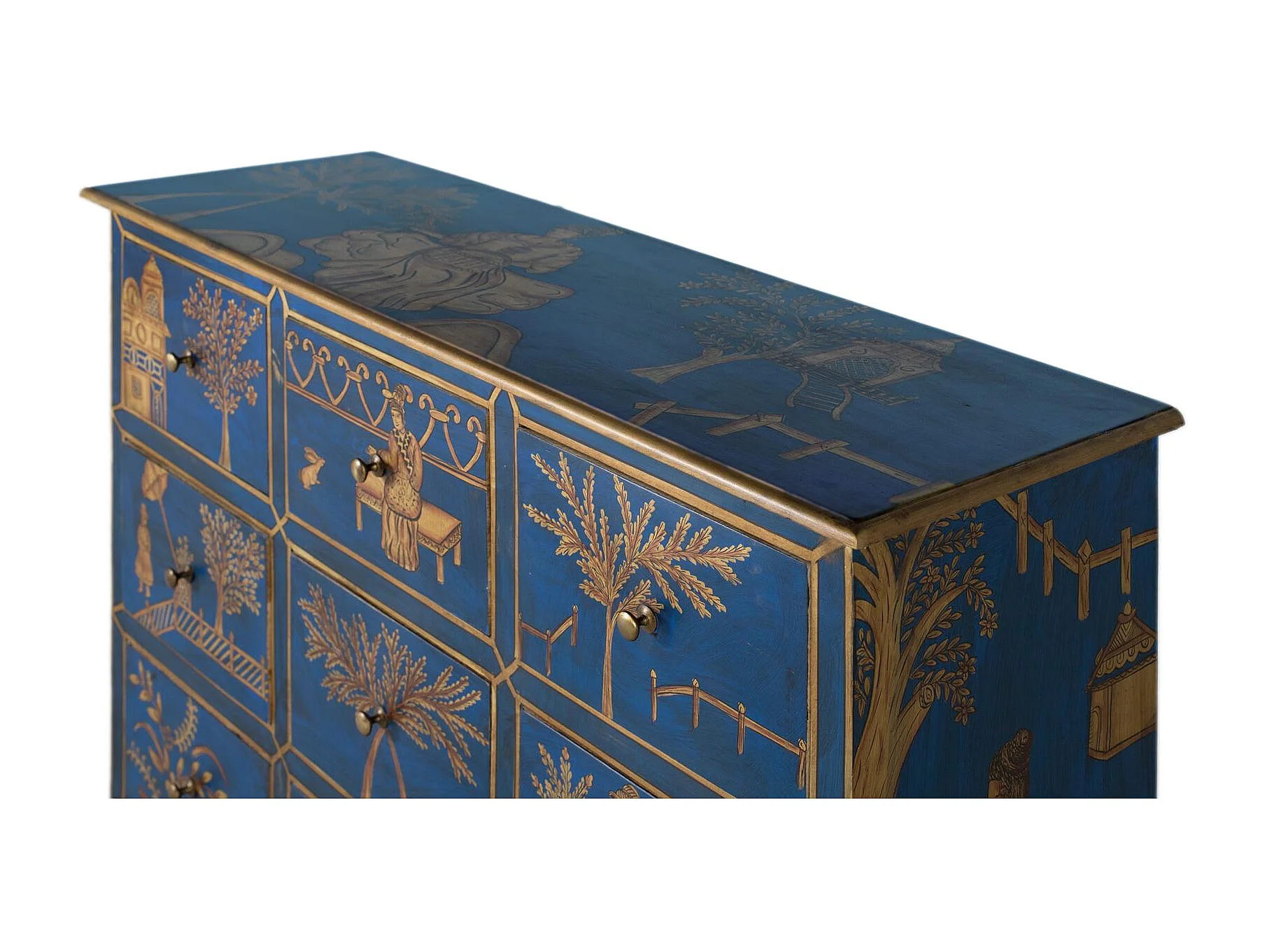 Buffet avec 9 tiroirs peints à la main et accents dorés