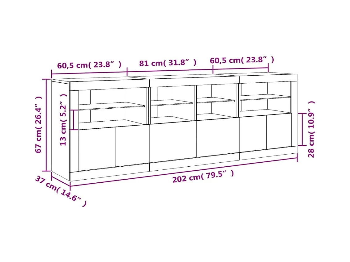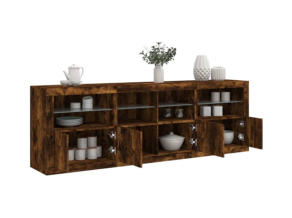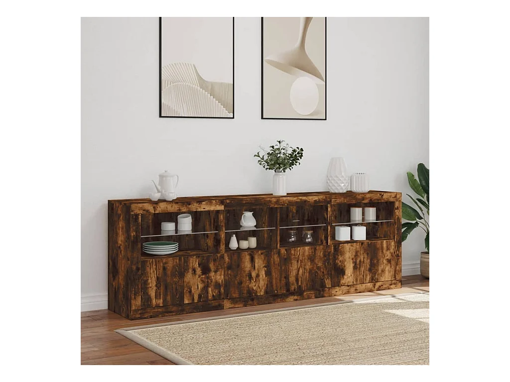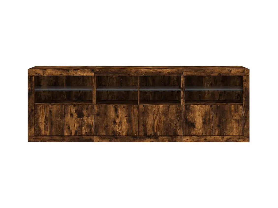 Buffet avec lumières LED chêne fumé 202x37x67 cm