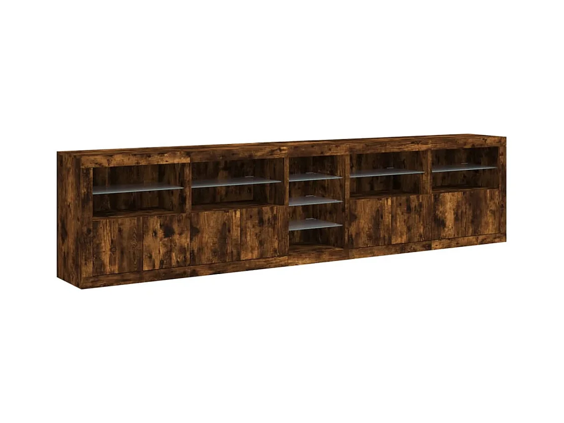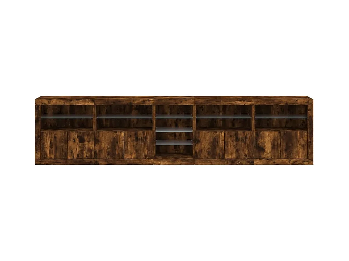 Buffet avec lumières LED chêne fumé 283x37x67 cm