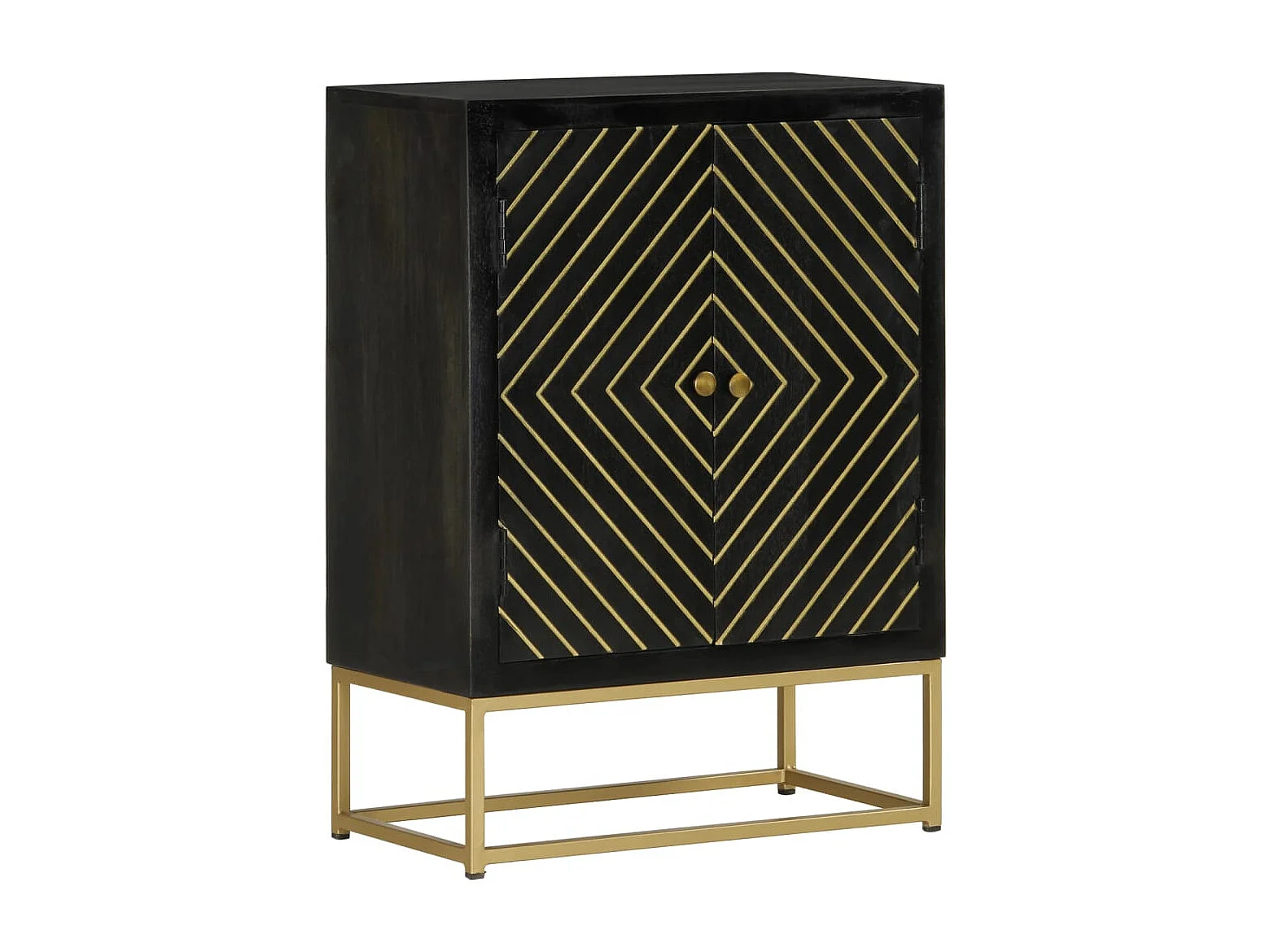 Buffet | Bahut | Meuble de rangement avec 2 portes noir et doré 55x30x75 cm manguier