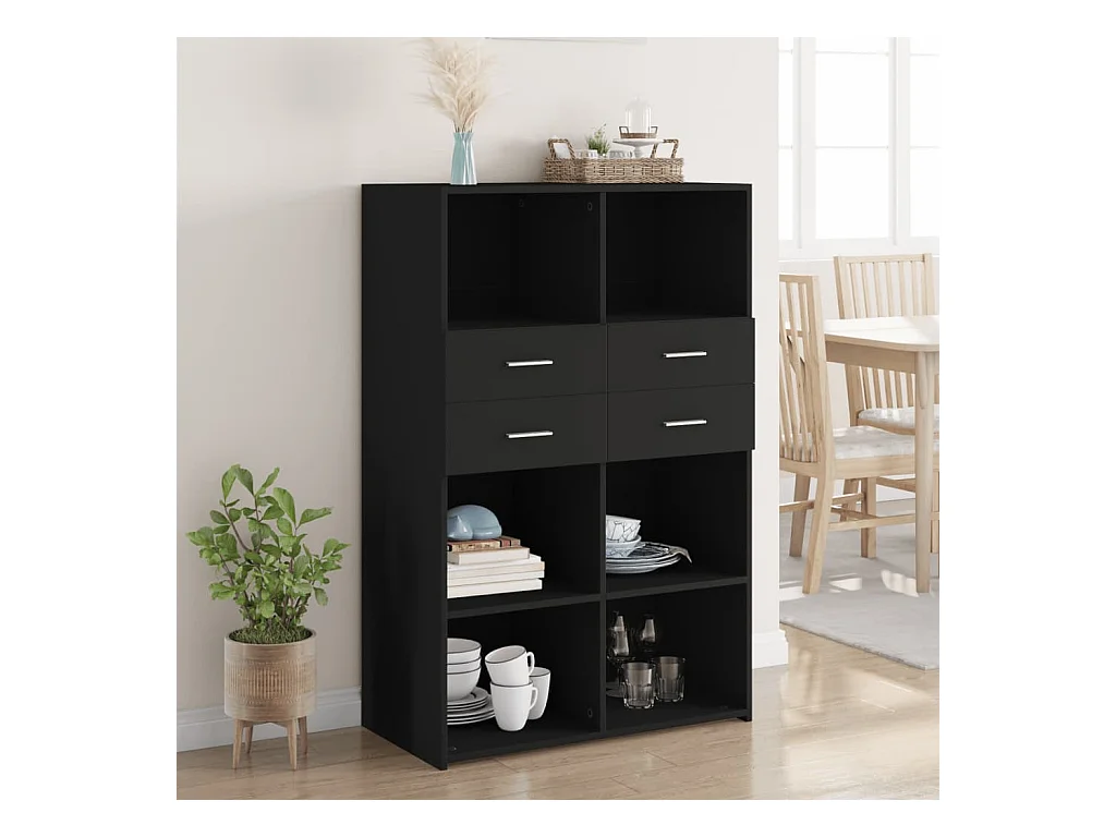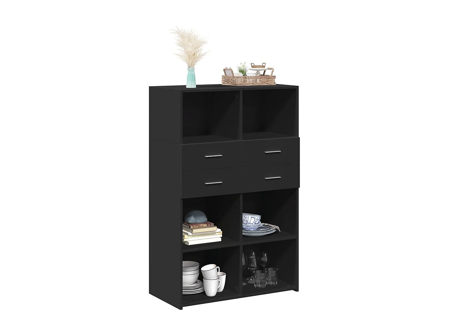 Buffet | Bahut | Meuble de rangement haut noir 80x42,5x124 cm bois d'ingénierie