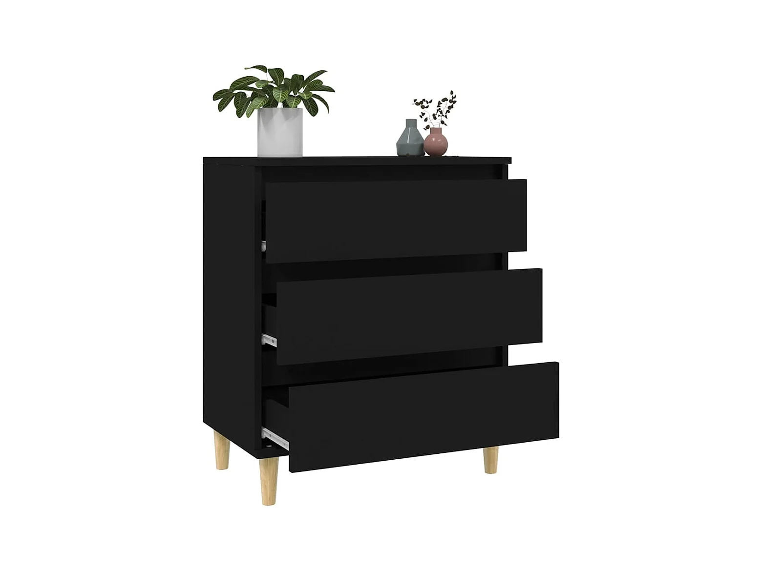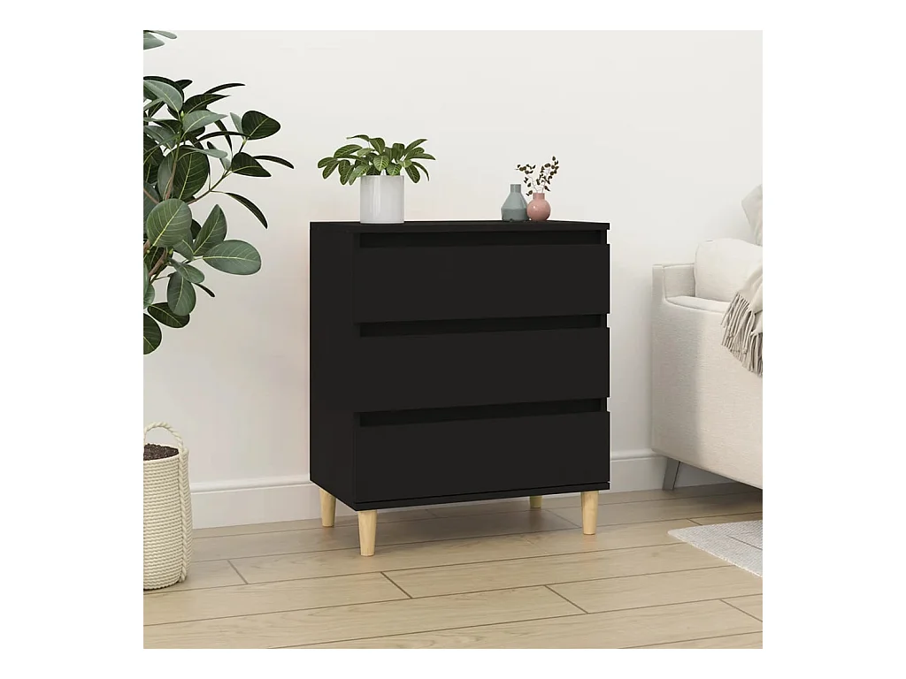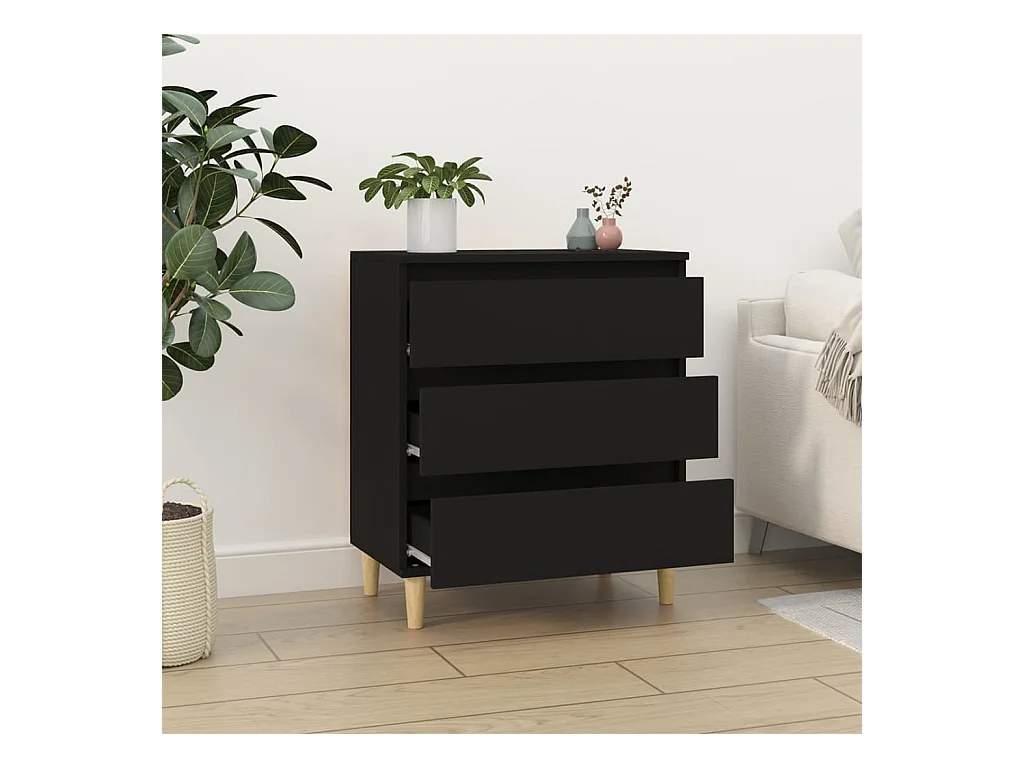 Buffet avec pieds en bois massif noir bois d'ingénierie