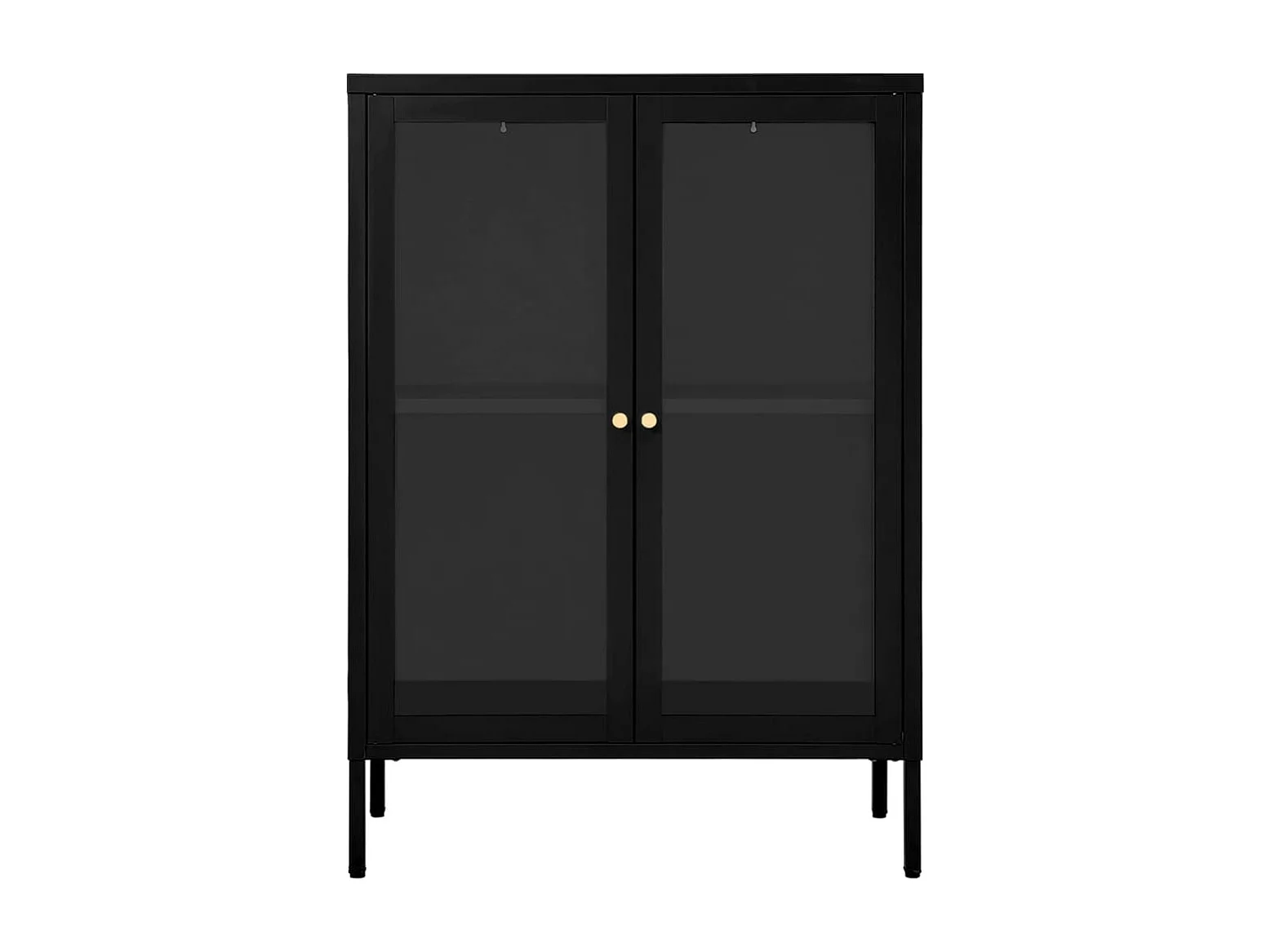 Buffet | Bahut | Meuble de rangement Noir 75x35x105 cm Acier et verre